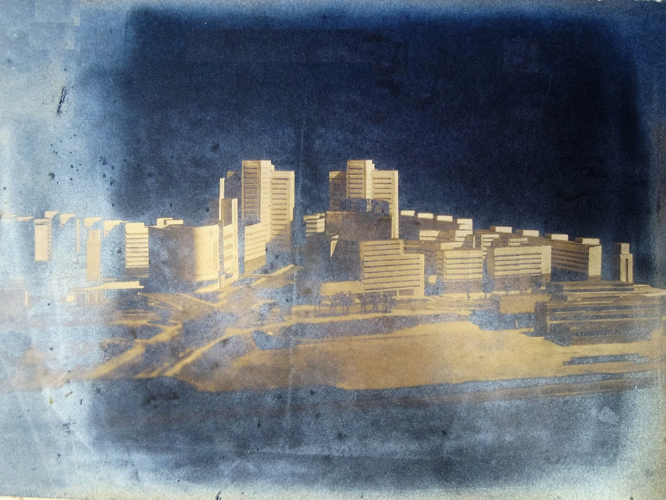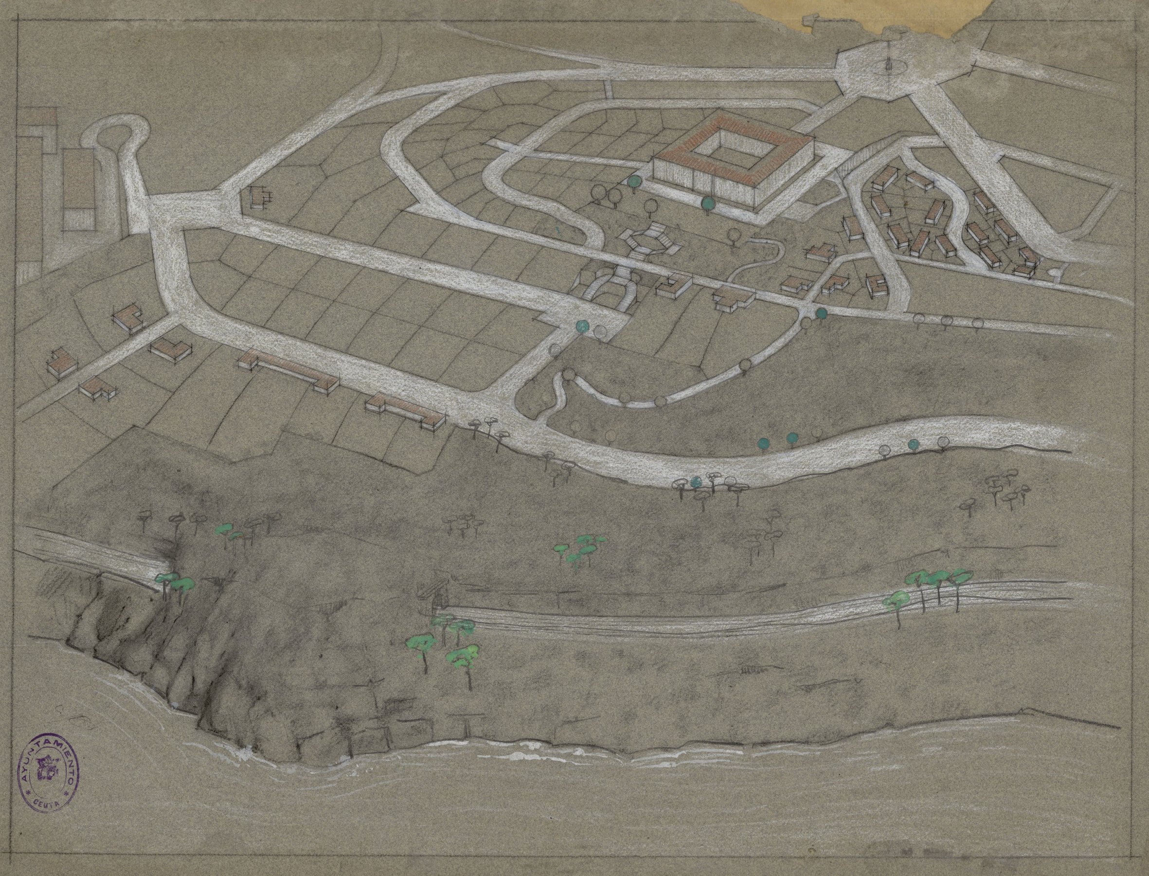 Perspectiva de la zona de ensanche sobre el terreno ganado al mar del anteproyecto de reforma interior y ensanche de Ceuta de Pedro Muguruza, octubre de 1930. Archivo General de Ceuta.