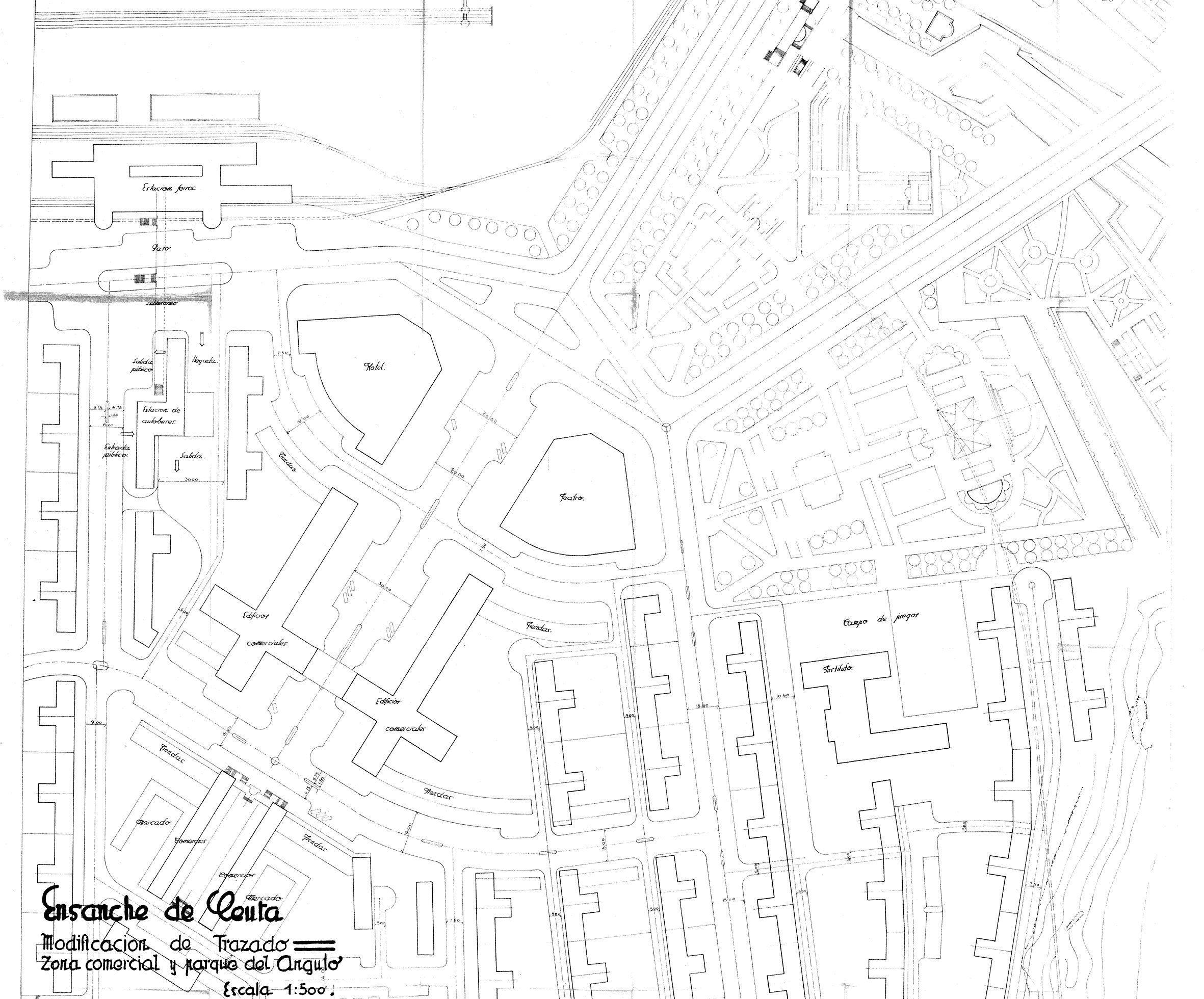 Reforma del casco urbano en su encuentro con el ensanche según el anteproyecto del equipo de Pedro Muguruza. Archivo General de Ceuta.