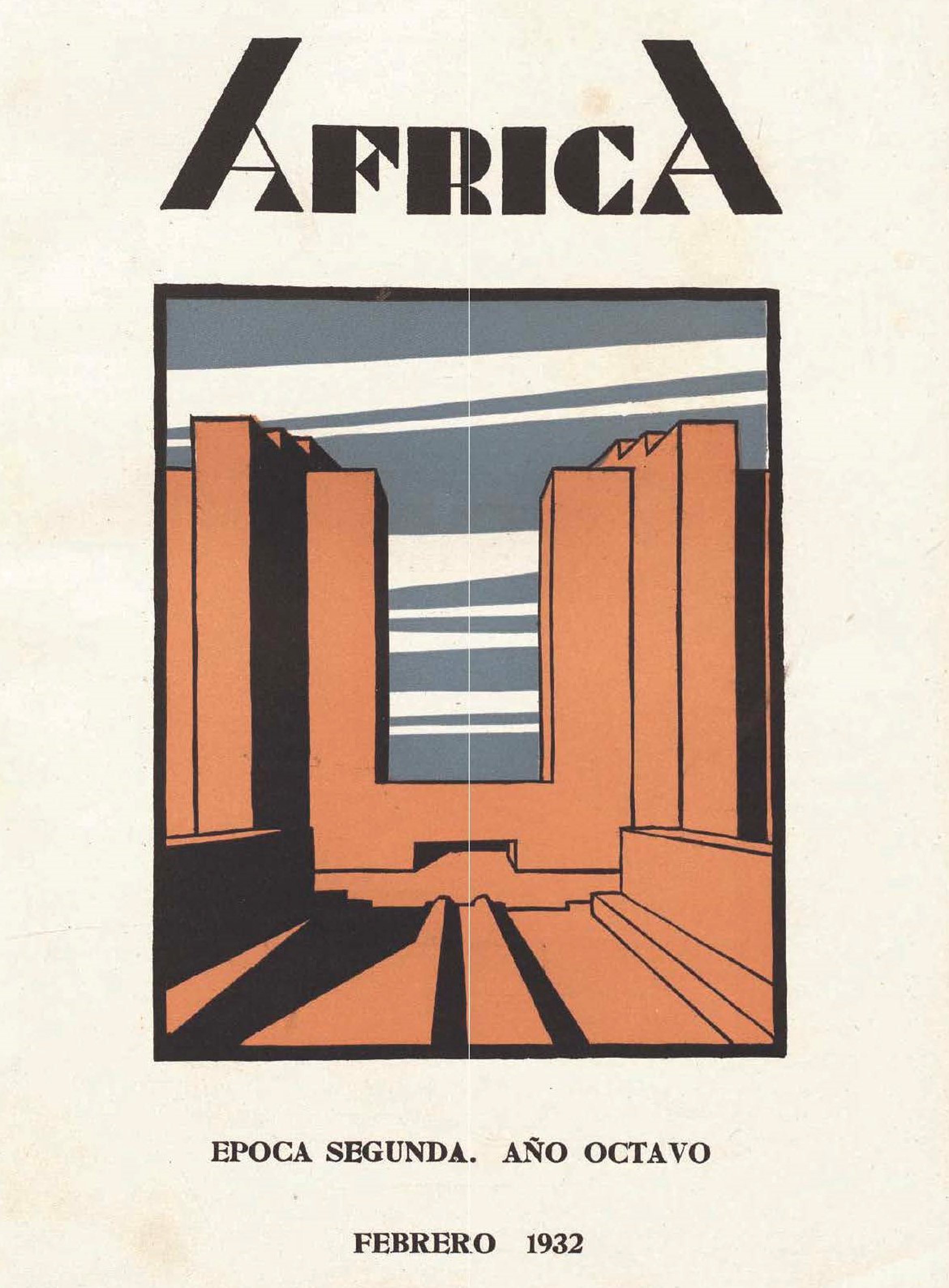 Portada del número de la revista África donde se publicó el resultado del concurso para el proyecto de ensanche de Ceuta de 1930, cuyo dibujo representa el eje principal de la propuesta ganadora, correspondiente al proyecto de Gaspar Blein.