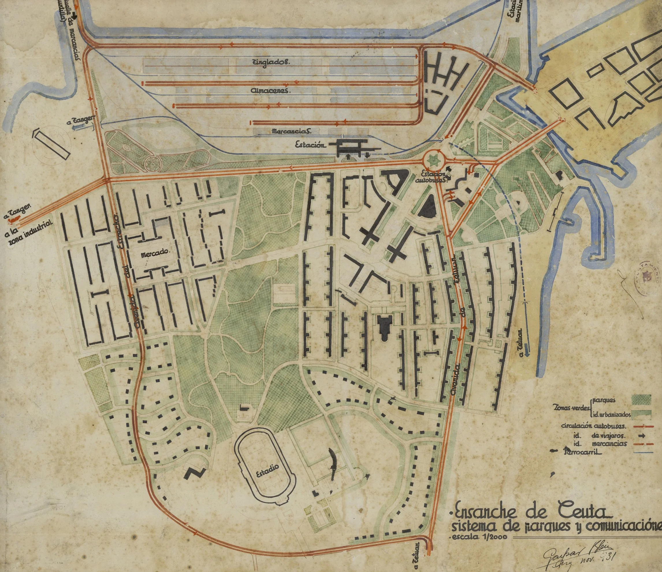 Sistema de parques y comunicaciones del proyecto de ensanche de Ceuta de Gaspar Blein, 1931. Archivo General de Ceuta.
