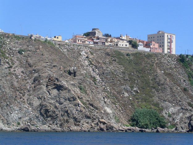 La topografía es abrupta en esta zona, con una importante pendiente que solventa la gran altura que existe hasta la propia línea de costa. Todas las fortificaciones se sitúan en la cima del acantilado, aprovechando la propia defensa natural del terreno.