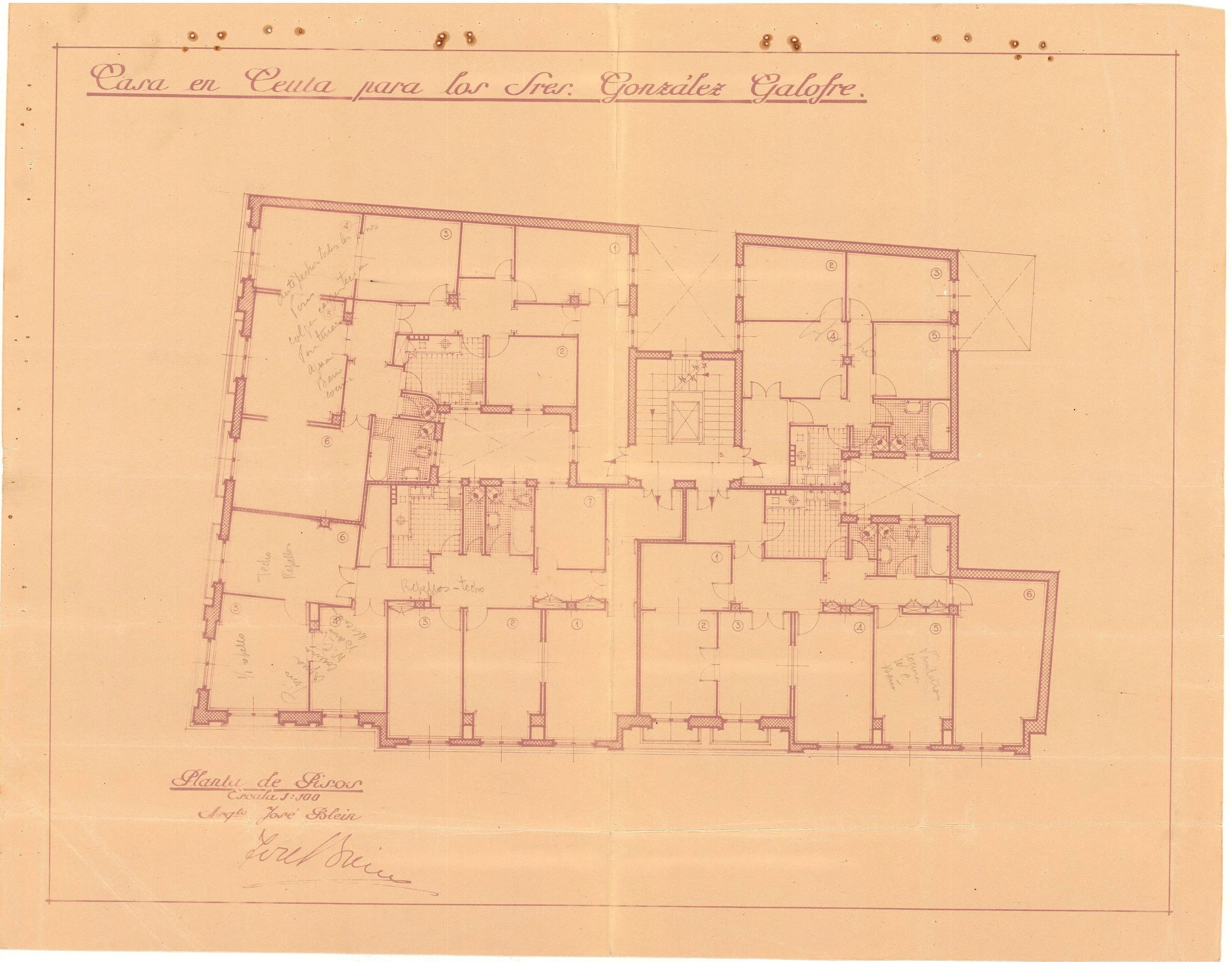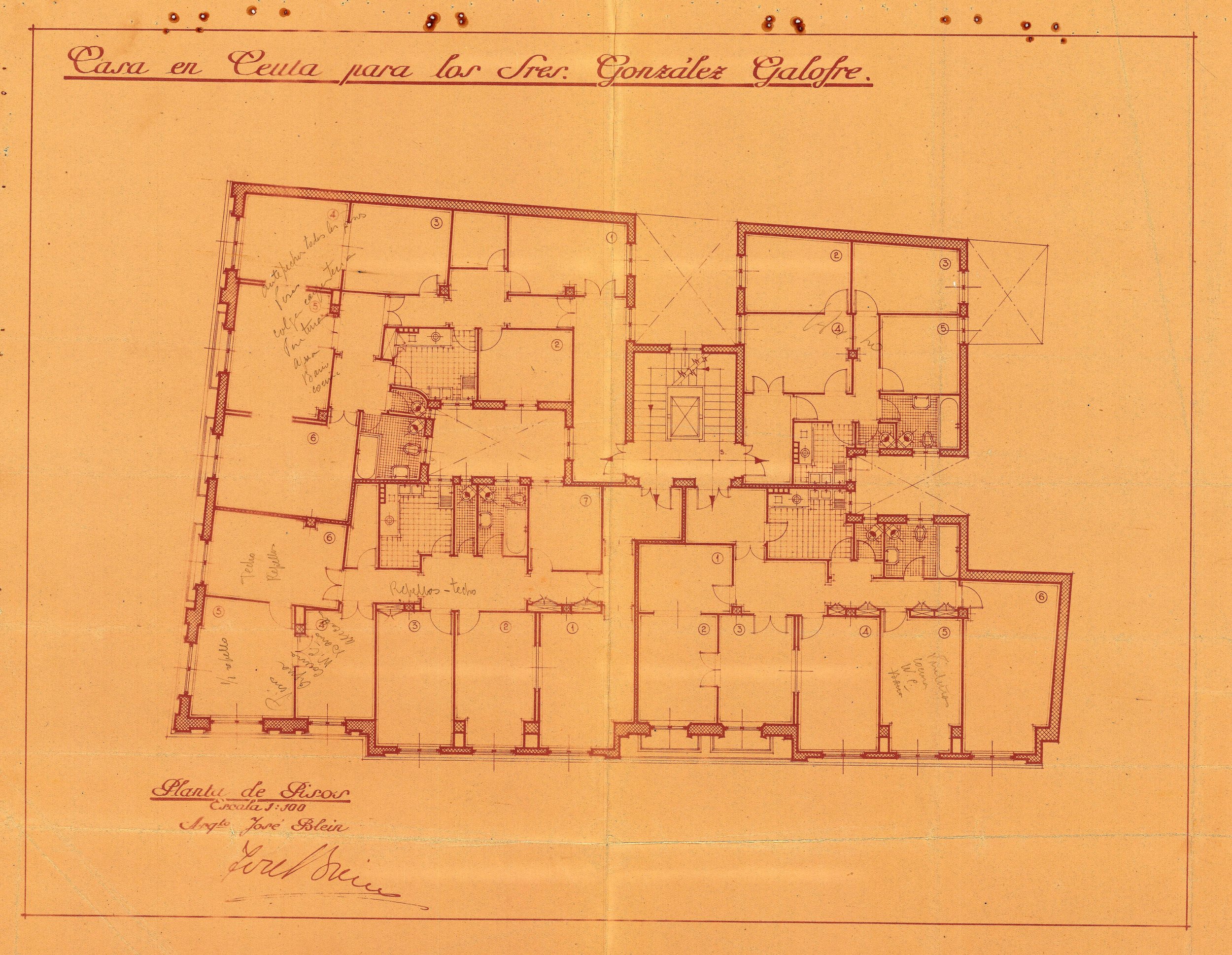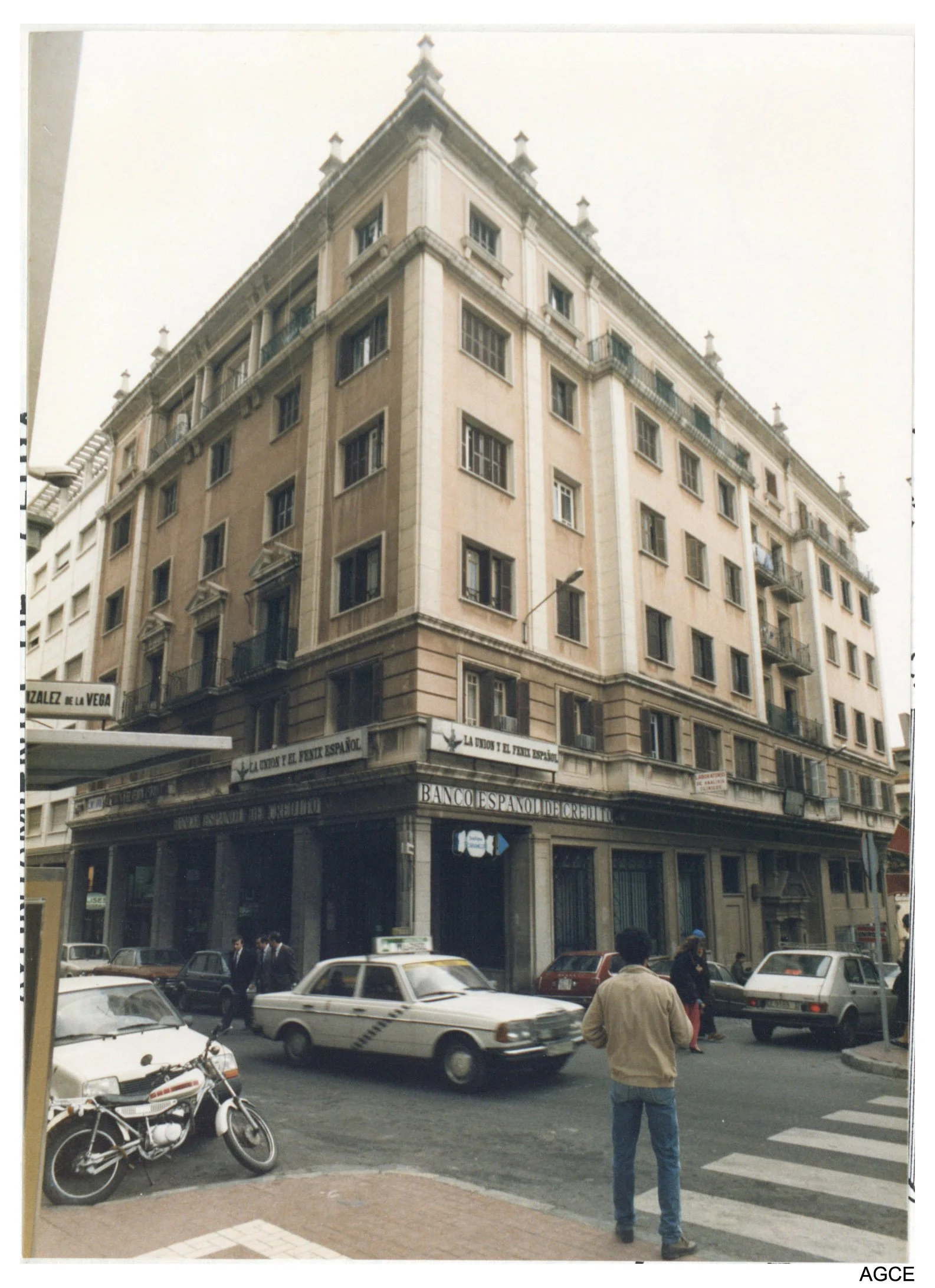 Se construye este inmueble que proyectó D. José Blein Zarazaga con la colaboración del aparejador D. Alfonso Gómez, haciendo esquina a las calles Camoens y Delgado Serrano-entonces "F"- para D. Miguel González Galofre.