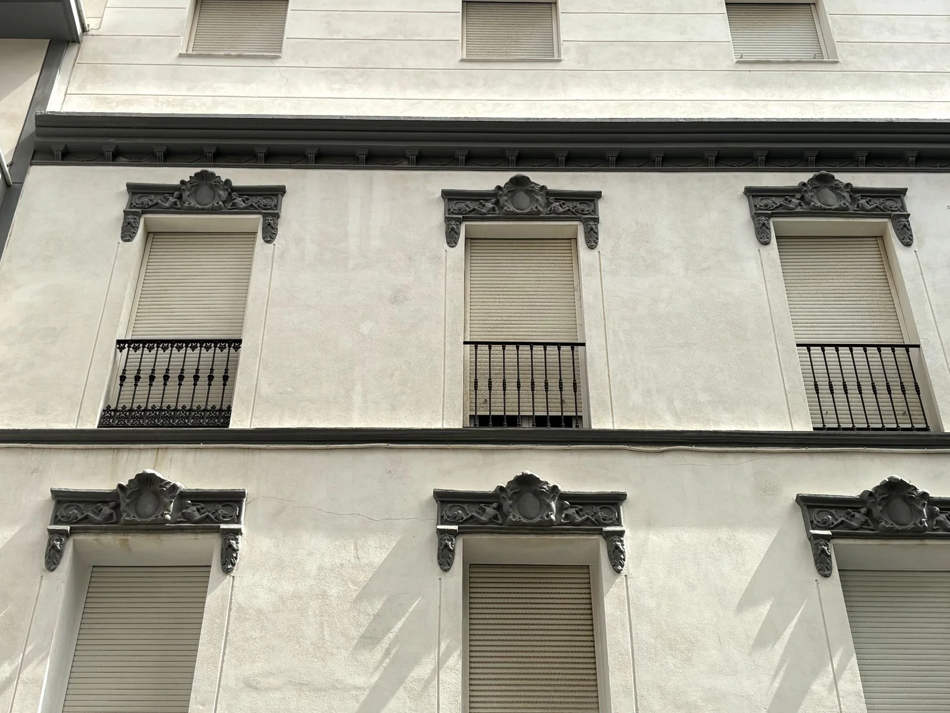 Estructura: Edificio en esquina entre medianeras de cuatro plantas formando manzana