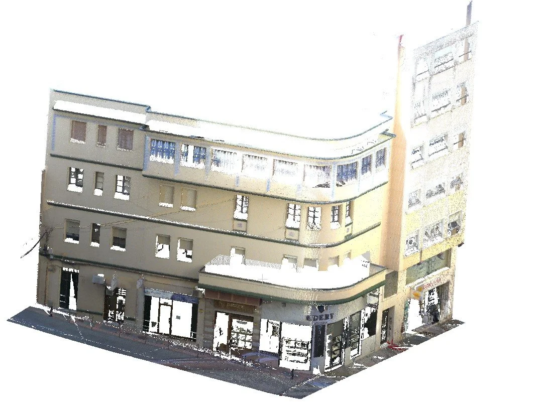 Estructura: Edificio en esquina entre medianeras de cuatro plantas formando manzana