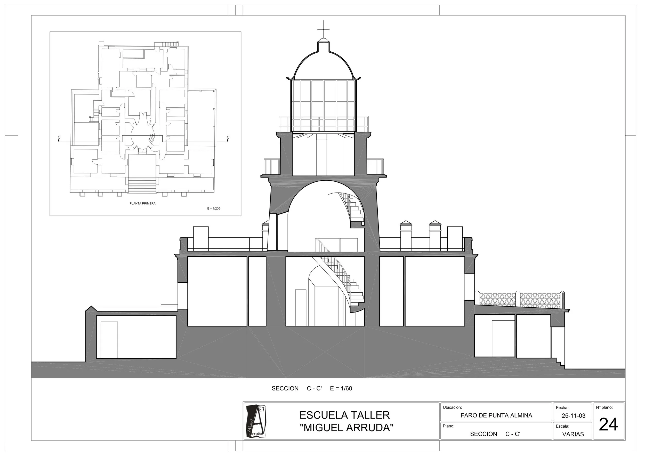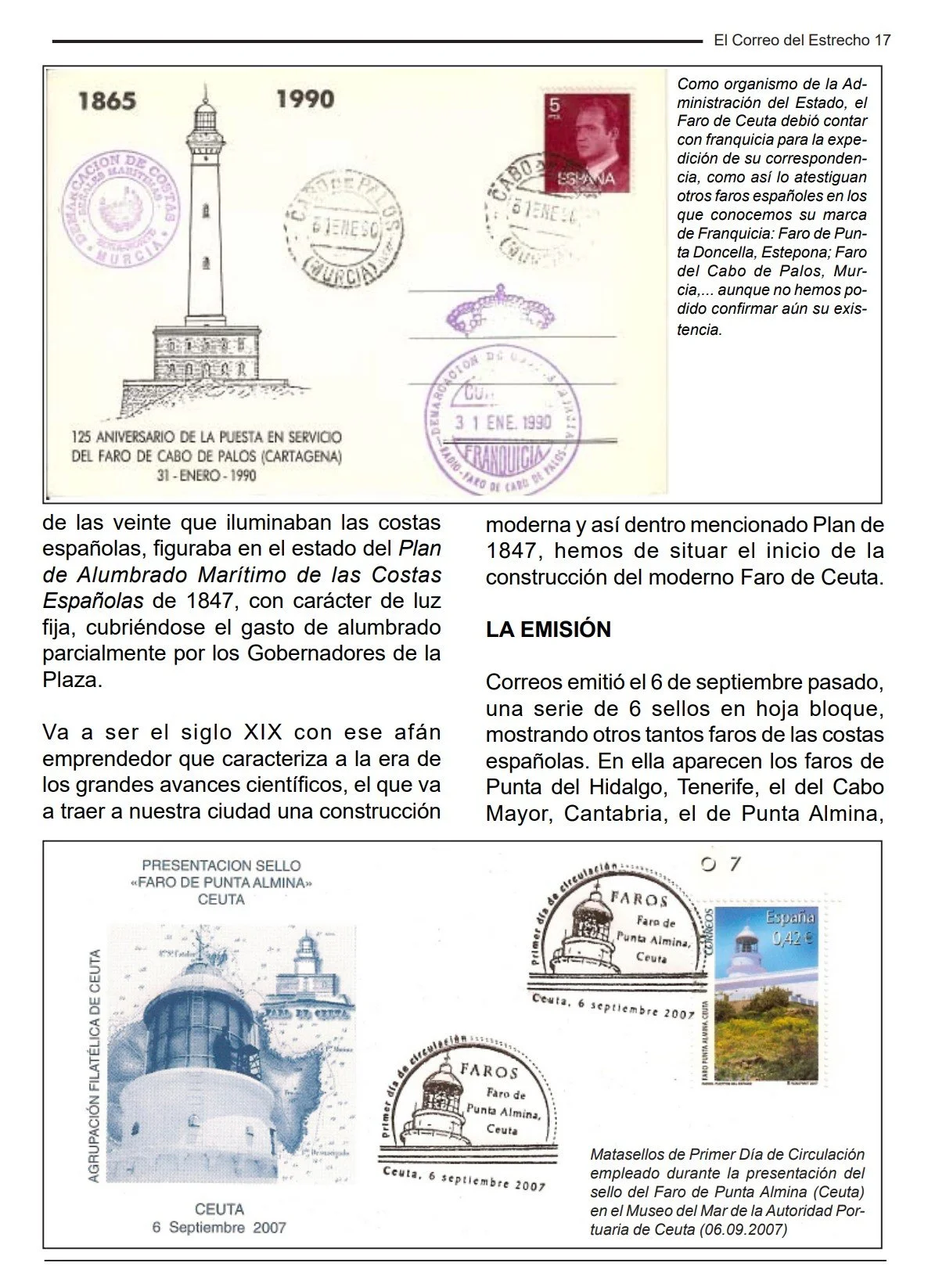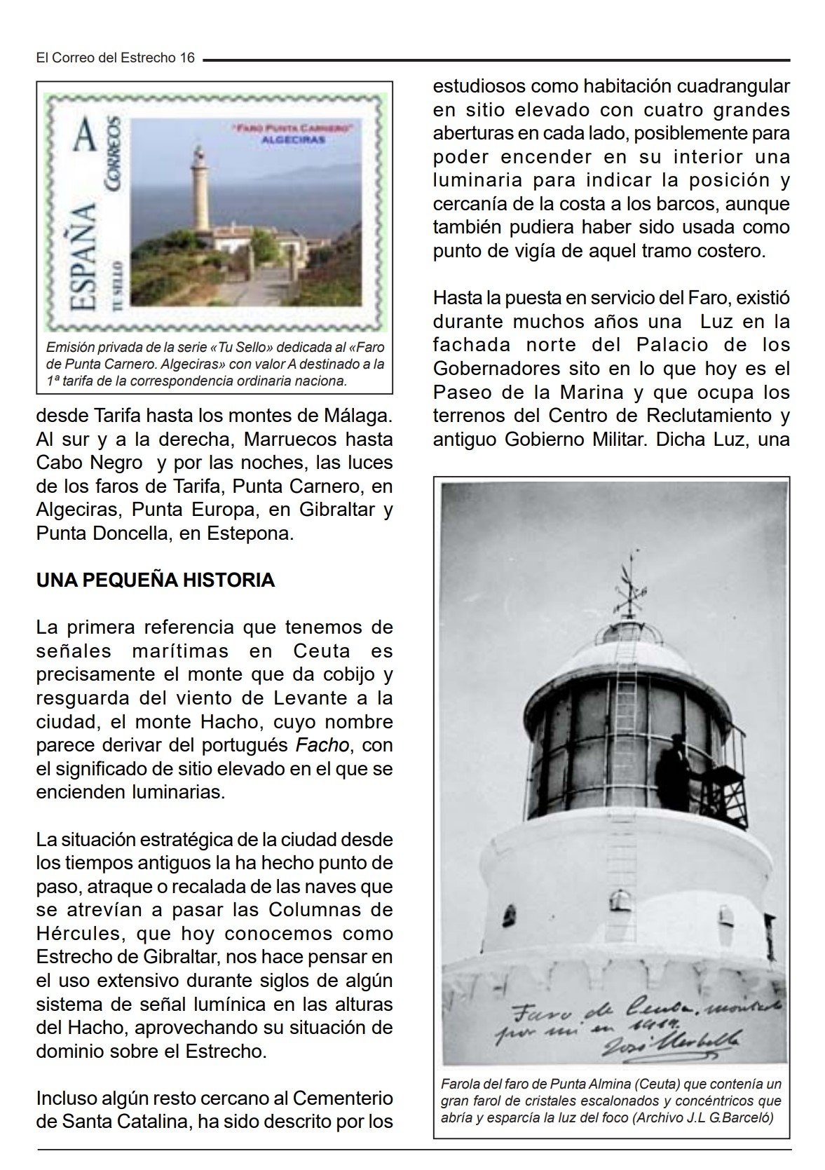 En el mes de Marzo de 1851, comenzaron las obras del Faro de Punta Almina bajo la dirección del Ingeniero de Caminos, Canales y Puertos Don Juan Martínez de la Villa, aunque no será hasta la noche del primero de Diciembre de 1885 cuando comenzara a alumbrar para seguridad de las embarcaciones que cruzan el Estrecho de Gibraltar.
