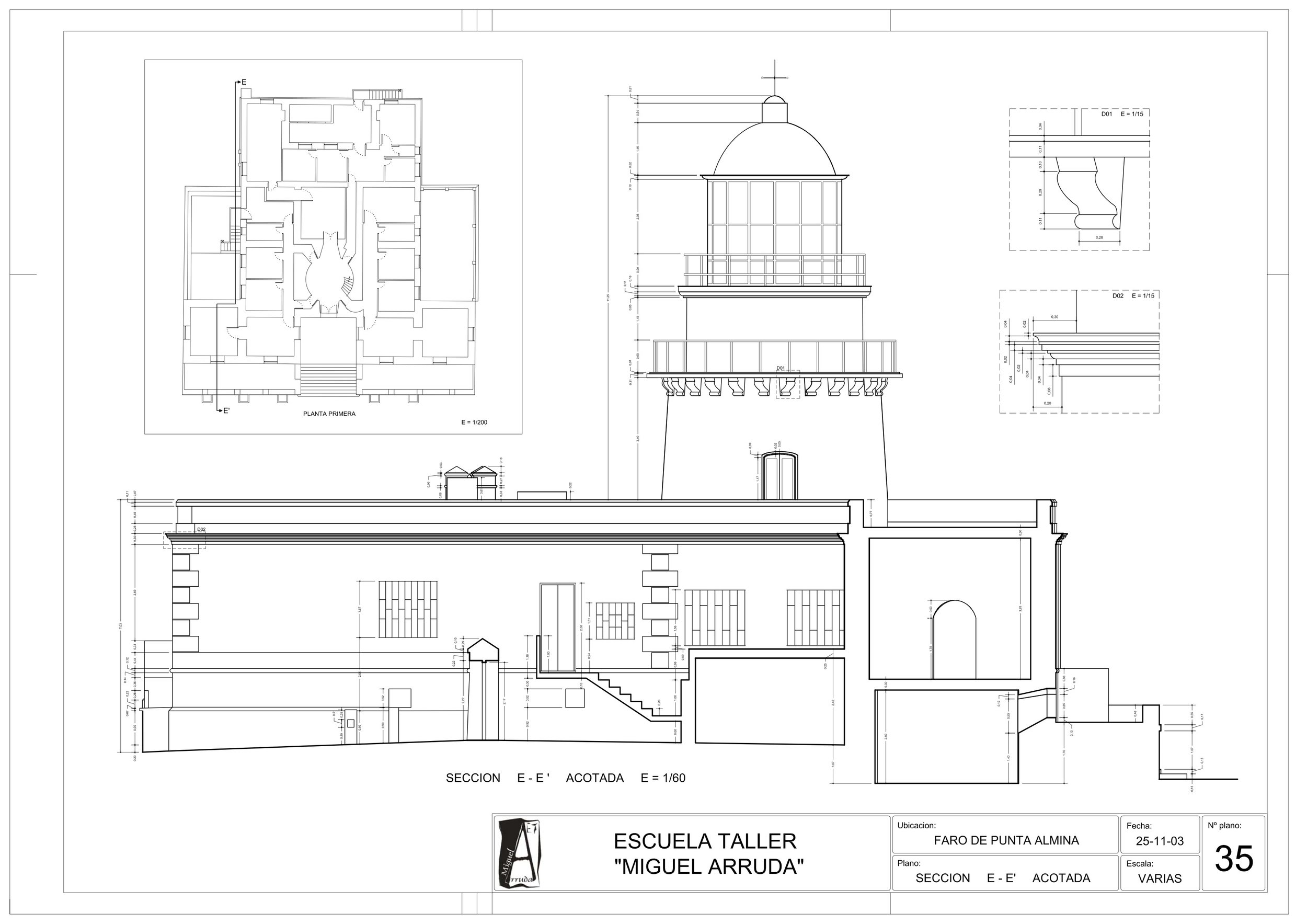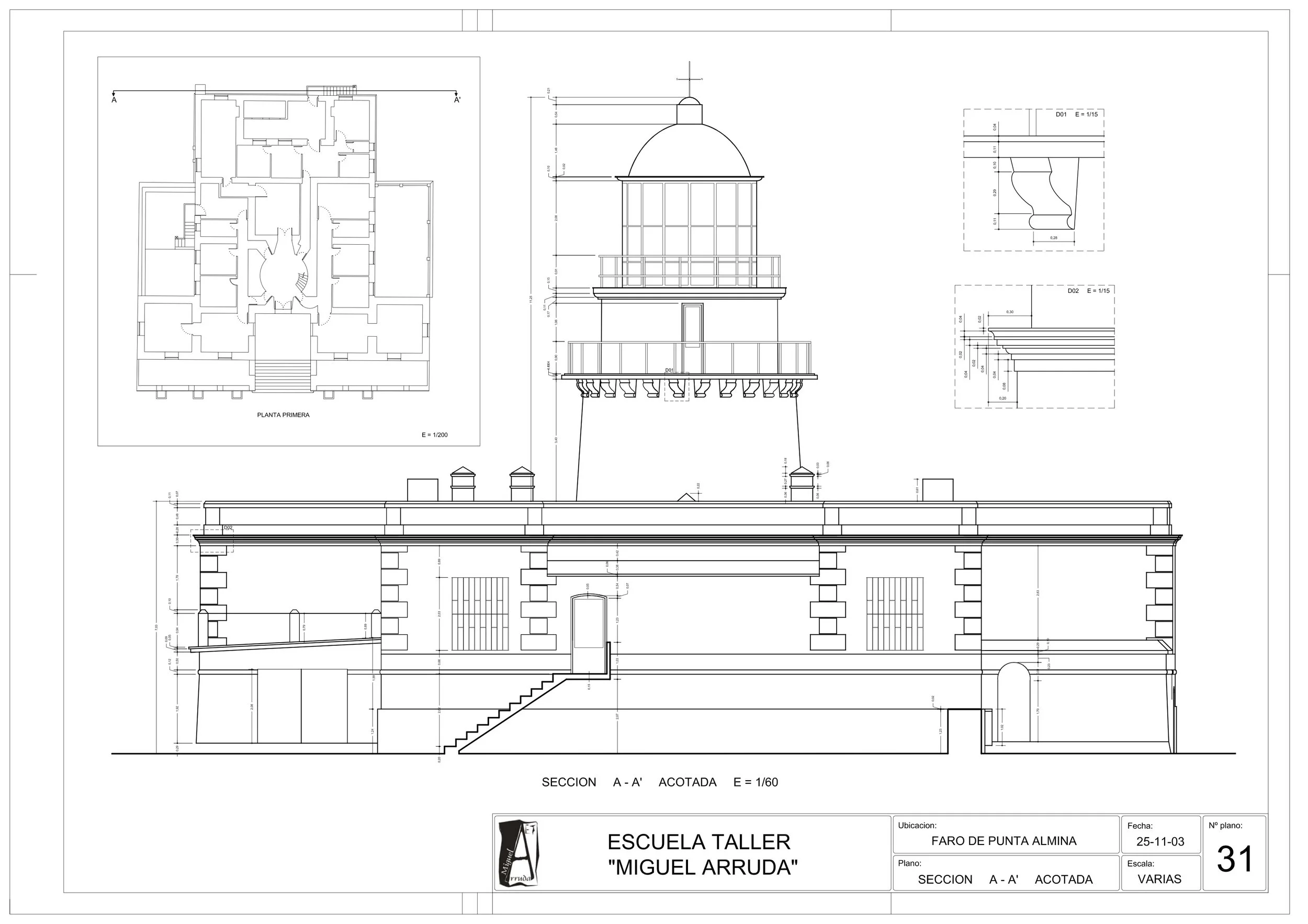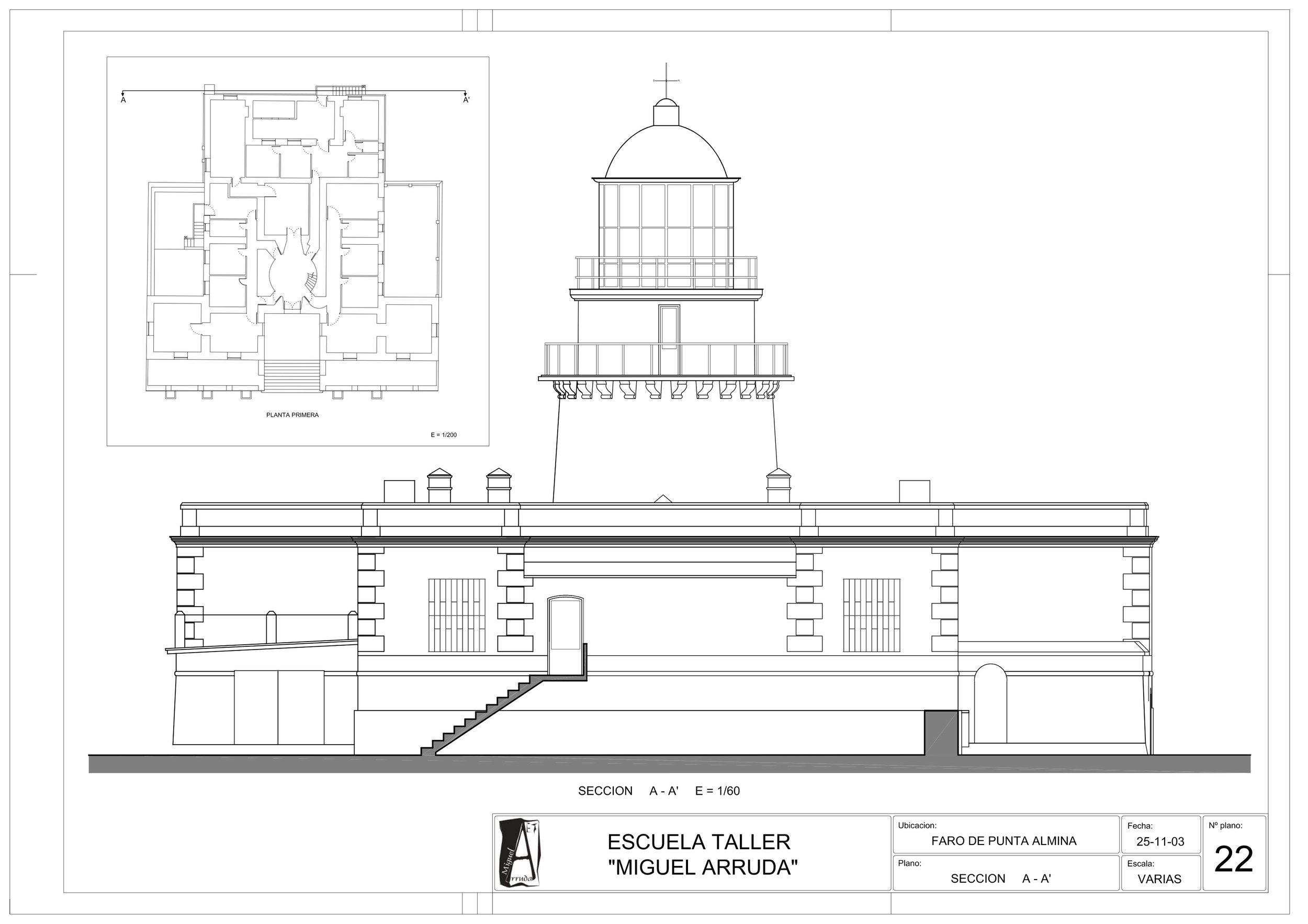 En el mes de Marzo de 1851, comenzaron las obras del Faro de Punta Almina bajo la dirección del Ingeniero de Caminos, Canales y Puertos Don Juan Martínez de la Villa, aunque no será hasta la noche del primero de Diciembre de 1885 cuando comenzara a alumbrar para seguridad de las embarcaciones que cruzan el Estrecho de Gibraltar.