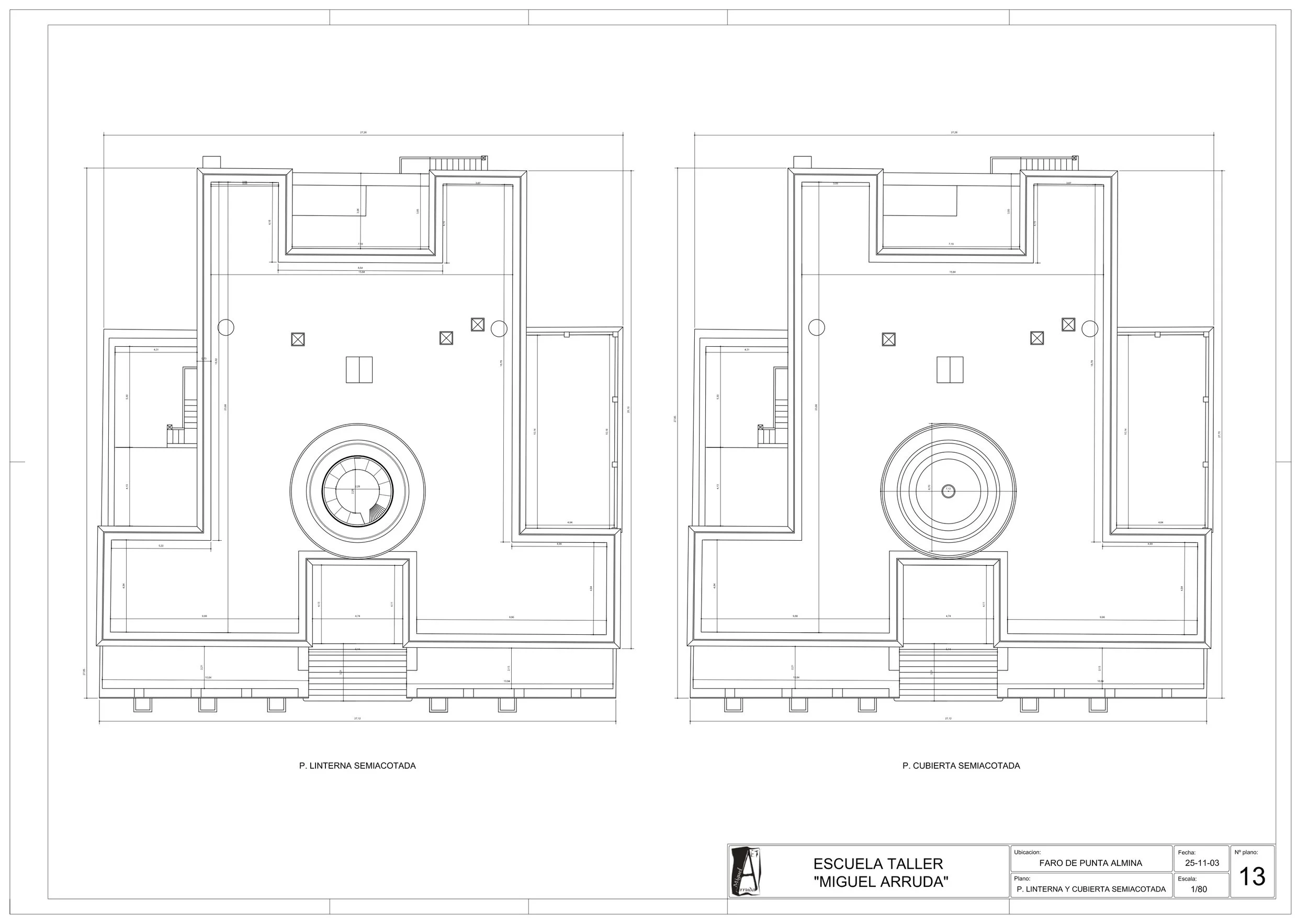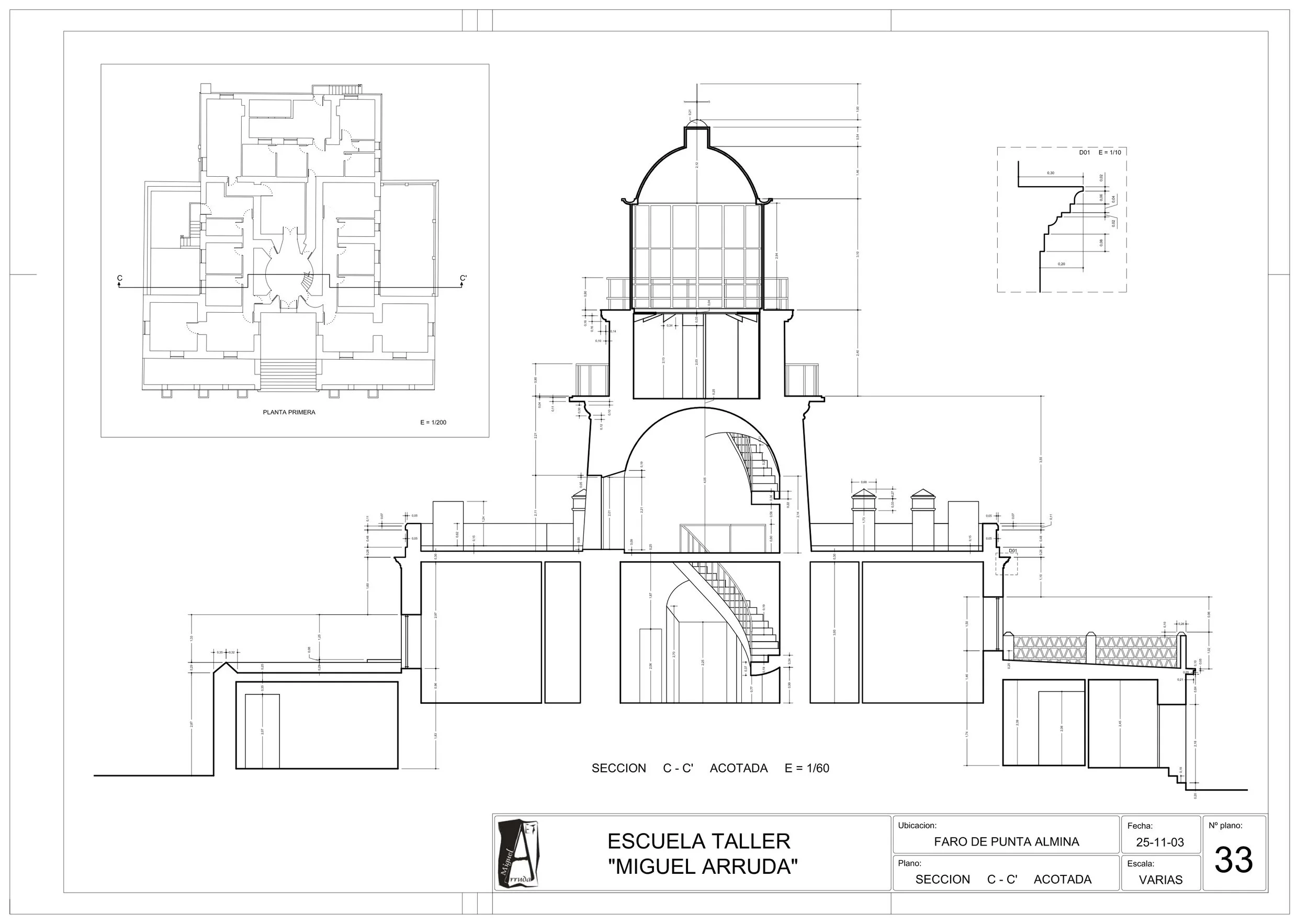 Subiendo por una escalinata en espiral, se penetra en donde una maquina de rotación, denominada de relojería, mueve un colosal farol de cristales escalonados y concéntricos que abre y esparce la luz del mechero o foco, que se halla en otro departamento mas elevado y dentro del reverbero.