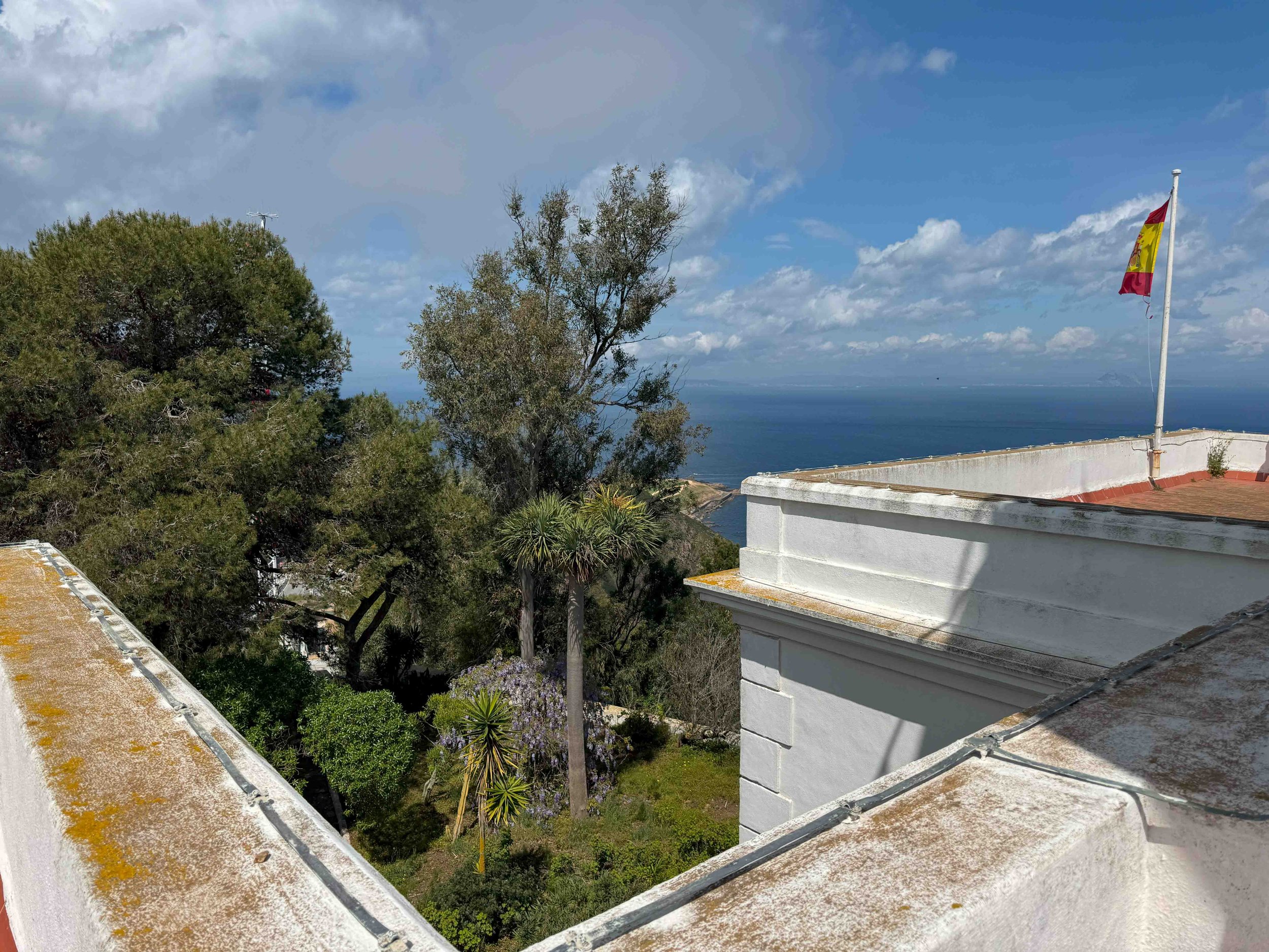 Rodeado de pinares (en la actualidad de antenas de radio, radares y eucaliptos, tan solo quedan dos pinos) desde su torre que se eleva 145,17 metros sobre el nivel del mar, se divisa a simple vista en días claros de poniente, toda la costa peninsular desde Tarifa a los montes de Málaga, al sur la costa marroquí hasta Cabo Negro, con las montañas del Rif al fondo, por las noches, las luces de los faros de Tarifa, Punta Carnero, Punta Europa y Punta Doncella.