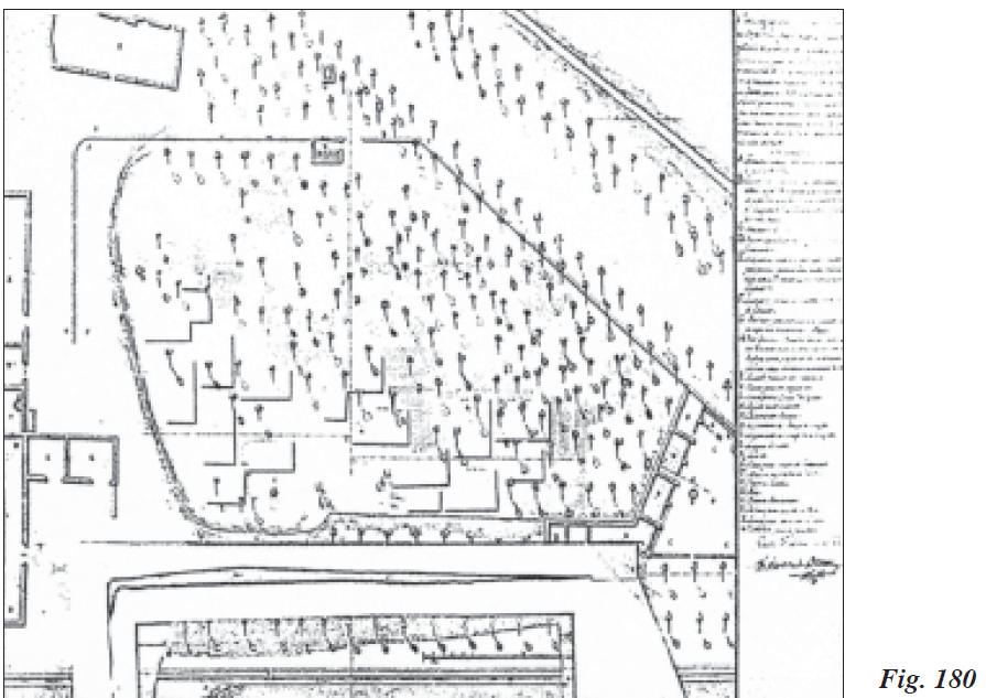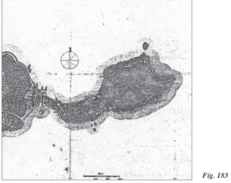 Esta delimitación fue el resultado de los acuerdos firmados entre el Conde de Floridablanca y Muhammad ben-Otomán, a finales de mayo de 1780, que se completó con el anexo de 1782 y luego sería ratificado en 1799, resultando muy limitada para las aspiraciones ceutíes de dominar más las defensas de dicho campo, ampliar la extensión de sus pastos e intentar así un parcial autobastecimiento (Fig. 185).