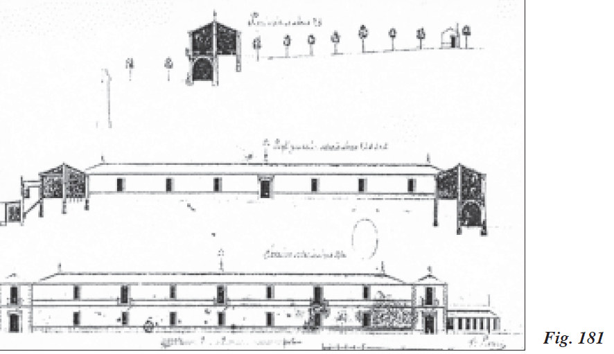 En correspondencia con todo lo anterior, Esteban Panón proyectó a mediados de diciembre de 1761 el plano, perfiles y elevación de un cuartel de infantería con capacidad para dos batallones, situándolo en la Almina de Ceuta en las proximidades del Mercado, entre la Puerta de la ciudad y la Casa del Gobernador. A la gran comodidad que tendría la tropa para acudir prontamente a lo que se le solicitase, se uniría que dispondría de una hermosa vista hacia el Estrecho. En el plano se delimitaban también nuevos espacios urbanos de especial relevancia, como el terreno ocupado por el plantío de árboles que se había hecho en 1751, las antiguas cocheras que se deberían quitar para formar aquella calle recta y servirse de la actual, la balconada de hierro de las cuadras altas y bajas para simetría de su fachada, así como una alusión directa a las medidas sanitarias al quedar trazada una rampa para comunicar al mar cobertizos para la pescadería. (Figs. 180 y 181).