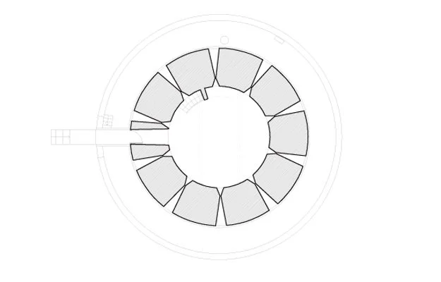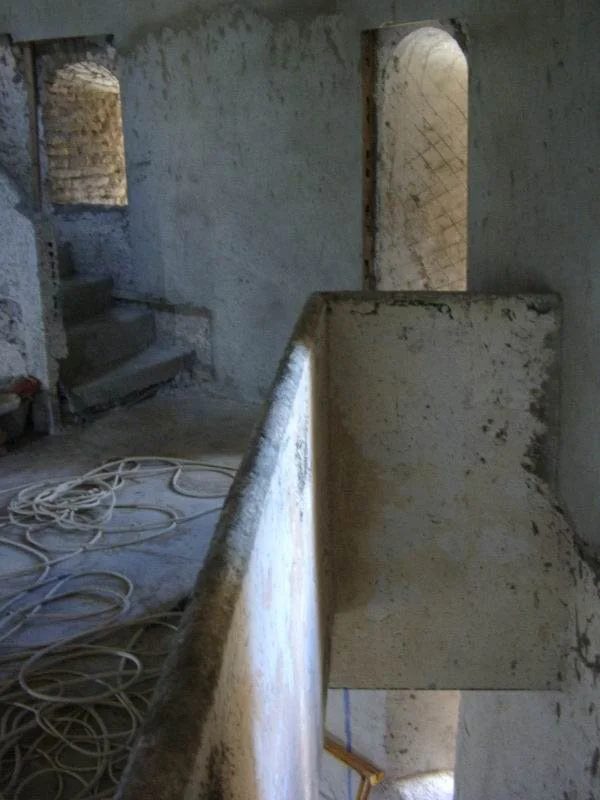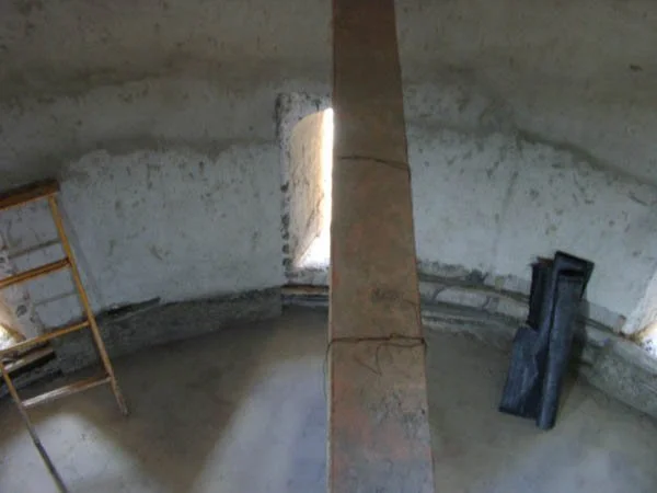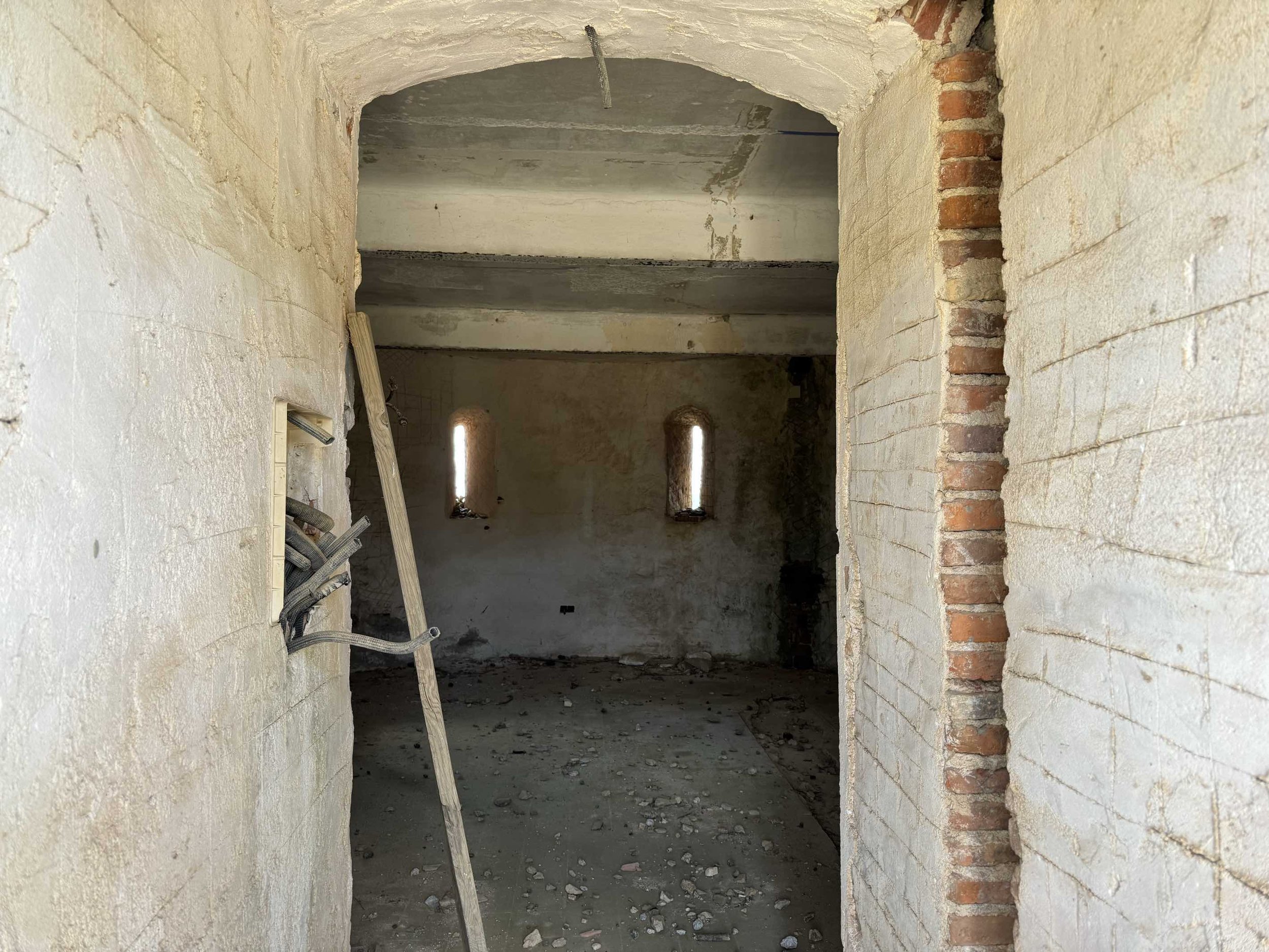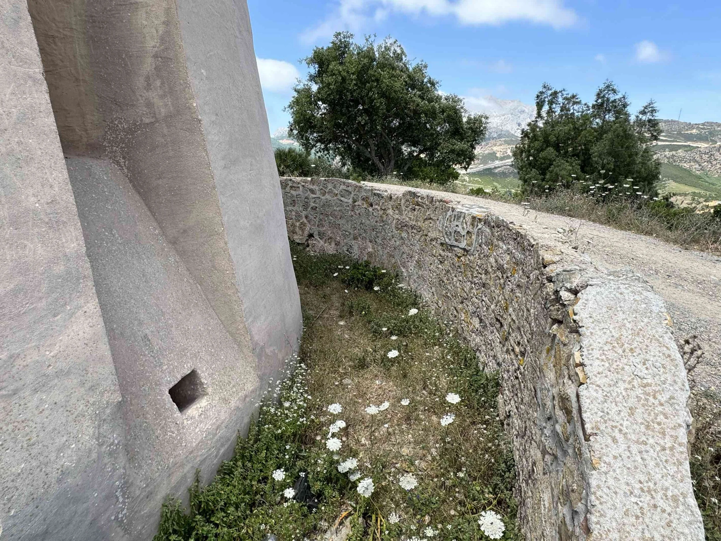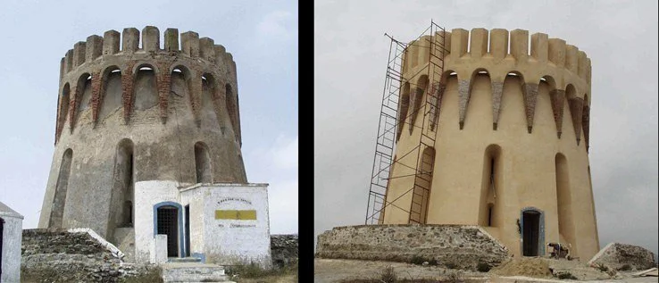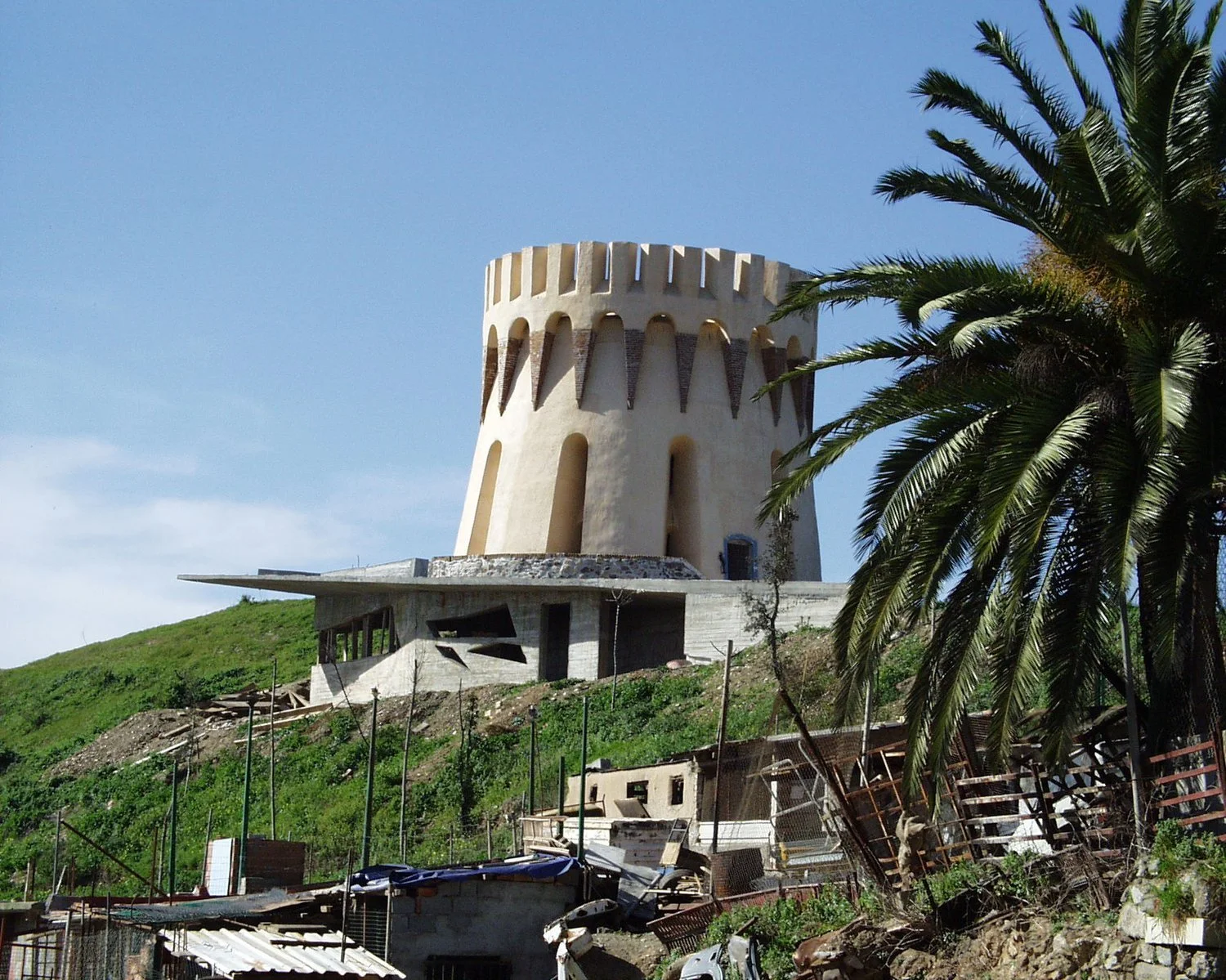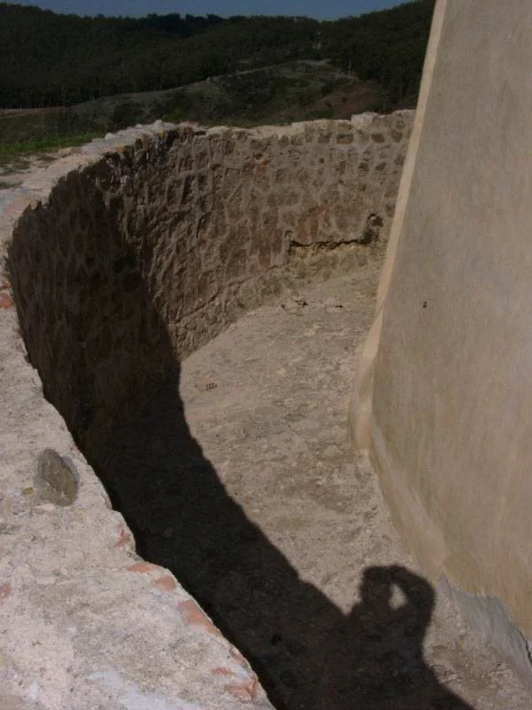 Sólido edificio de estilo neomedievalista de planta circular y estructura troncónica con altos muros coronados por almenas, en los que se abren troneras, arpilleras y matacanes, rodeado de un foso seco. En su interior existe un aljibe y las escaleras que acceden a las dos plantas superiores y al adarve. Construcción de la base con mampuesto de piedra y regularización alguna, hueco de escalera que da acceso a sótano, y de obra planta primera. Planta primera sin compartimentación, con gran escalera central de obra, que da acceso a cubierta. La cubierta con matacanes para el tiro y presencia de una garita.
