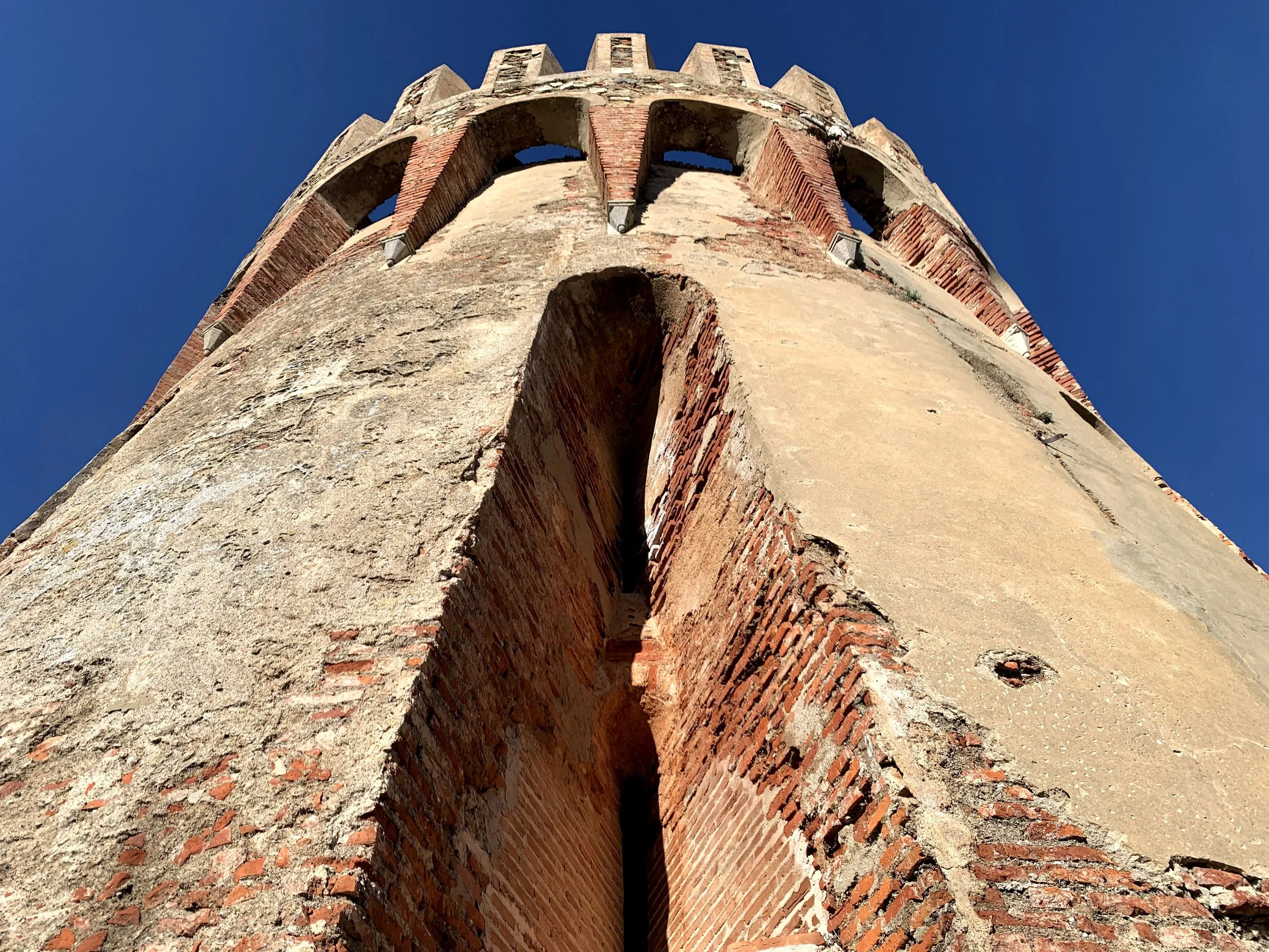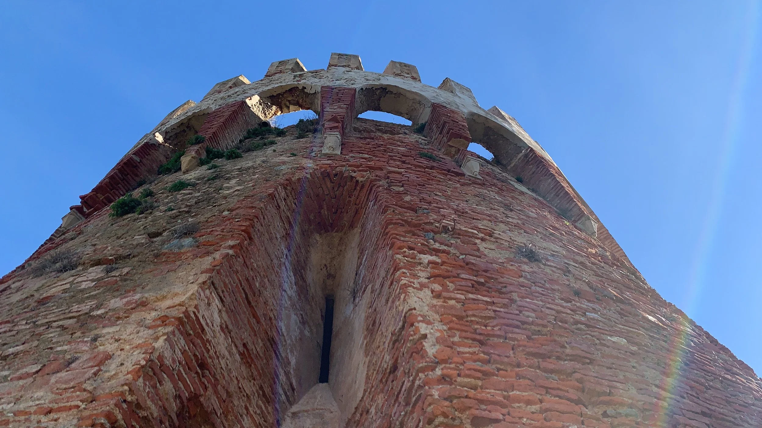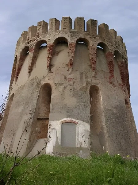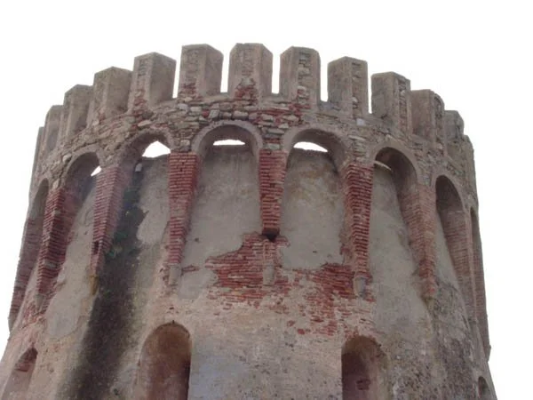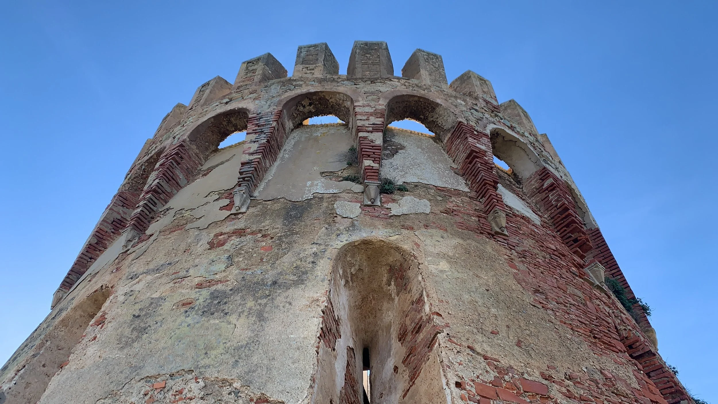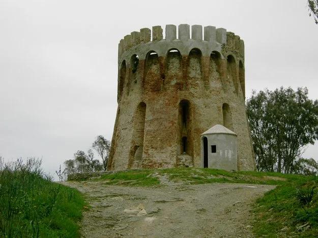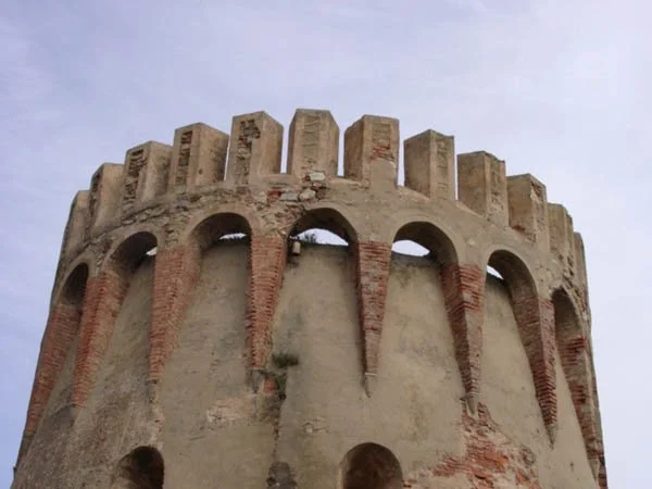 Torre defensiva troncocónica de planta circular desarrollada en planta sótano, baja, primera y cubierta. Muros, coronados por almenas en los que se abren troneras, arpilleras y matacanes. Dispone de foso seco perimetral, proporcionando su acceso al recinto mediante puente elaborado de losa de hormigón. construcción de la base con mampuesto de piedra y regularización de hiladas en ladrillo. Planta sótano con pozo. Planta baja exenta, sin distribución alguna, hueco de escalera que da acceso a sótano, y de obra a planta primera. Planta promera sin compartimentación, con gran escalera central de obra, que de acceso a cubierta. La cubierta con matacanes para el tiro.