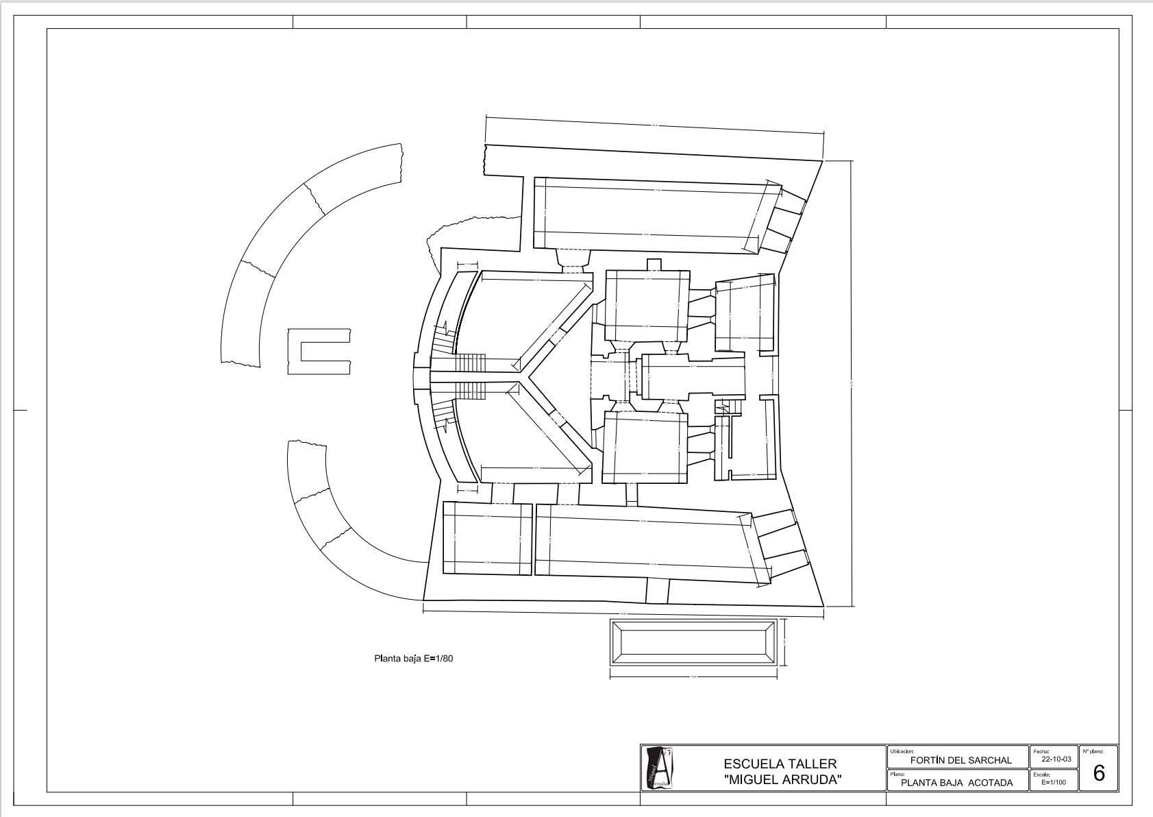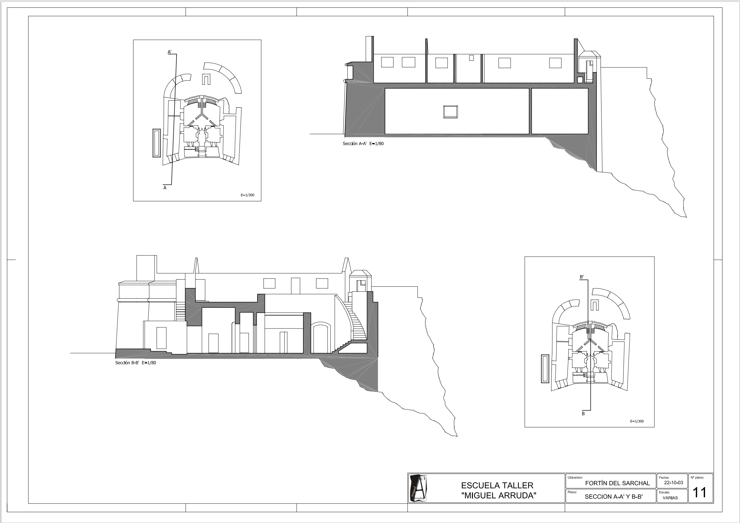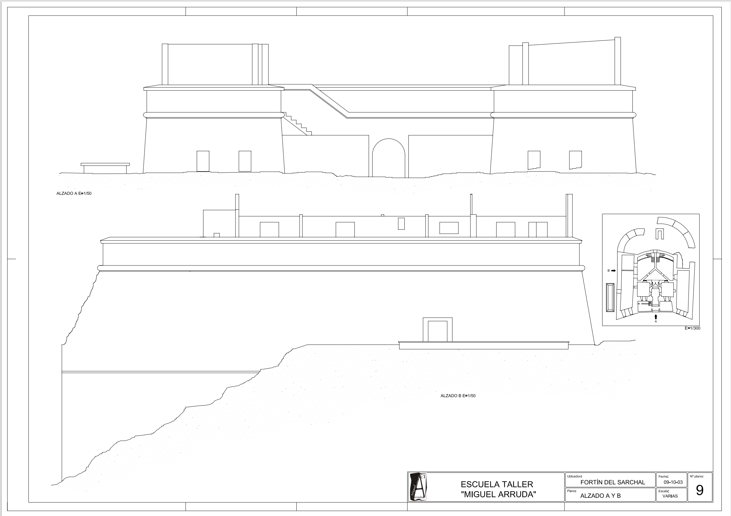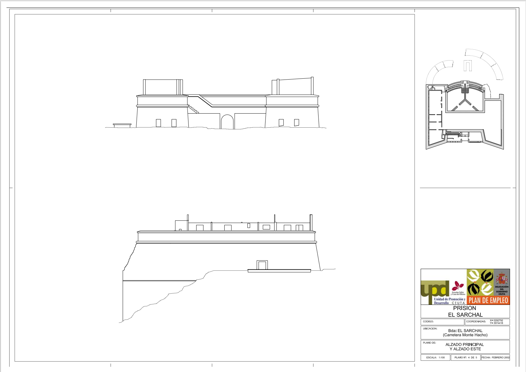 El edificio sufrió un paulatino asiento diferencial de la plataforma artillera, que terminaría quebrando la estructura de la fortaleza y arruinándola. Tenemos noticias de encontrarse plenamente operativo en la década de 1770. Así, según informa Ruiz Oliva, el Sarchal “contenía 5 cañones” en 177255, mientras que montaba “4 cañones de hierro, 3 modernos y uno corto de Marina de 18” en 177556. Comenzó a demolerse en 1805, aunque sólo se hizo parcialmente57. Así consta en el plano referido del Archivo Central de Ceuta de ese año58, en cuya leyenda se indica “fuerte de este nombre que se está demoliendo”. Según Garrido Parrilla, a principios del siglo XX fue habilitado para cárcel, lo que podría estar relacionado con las numerosas refacciones que presenta el fuerte, principalmente la apertura de vanos exteriores orientados al interior para facilitar el acceso, así como las construcciones parásitas del terrado.