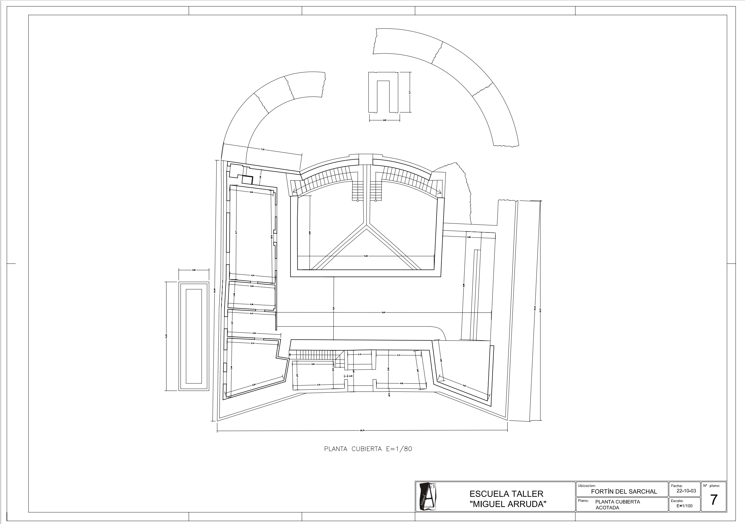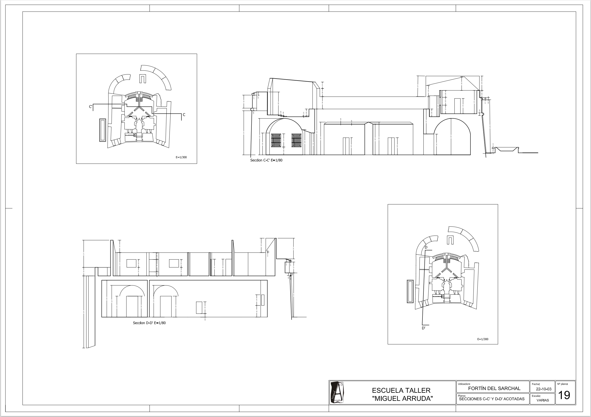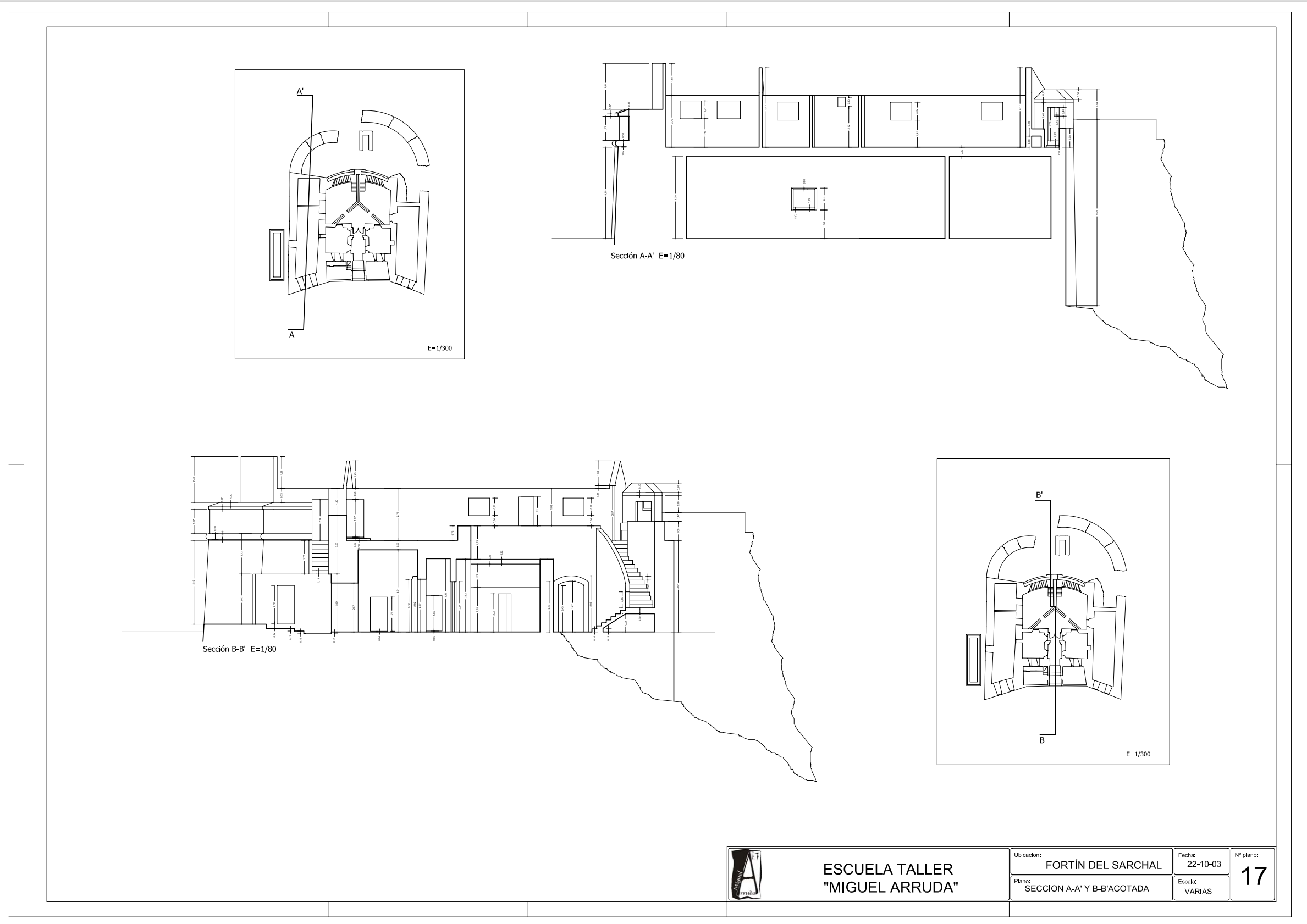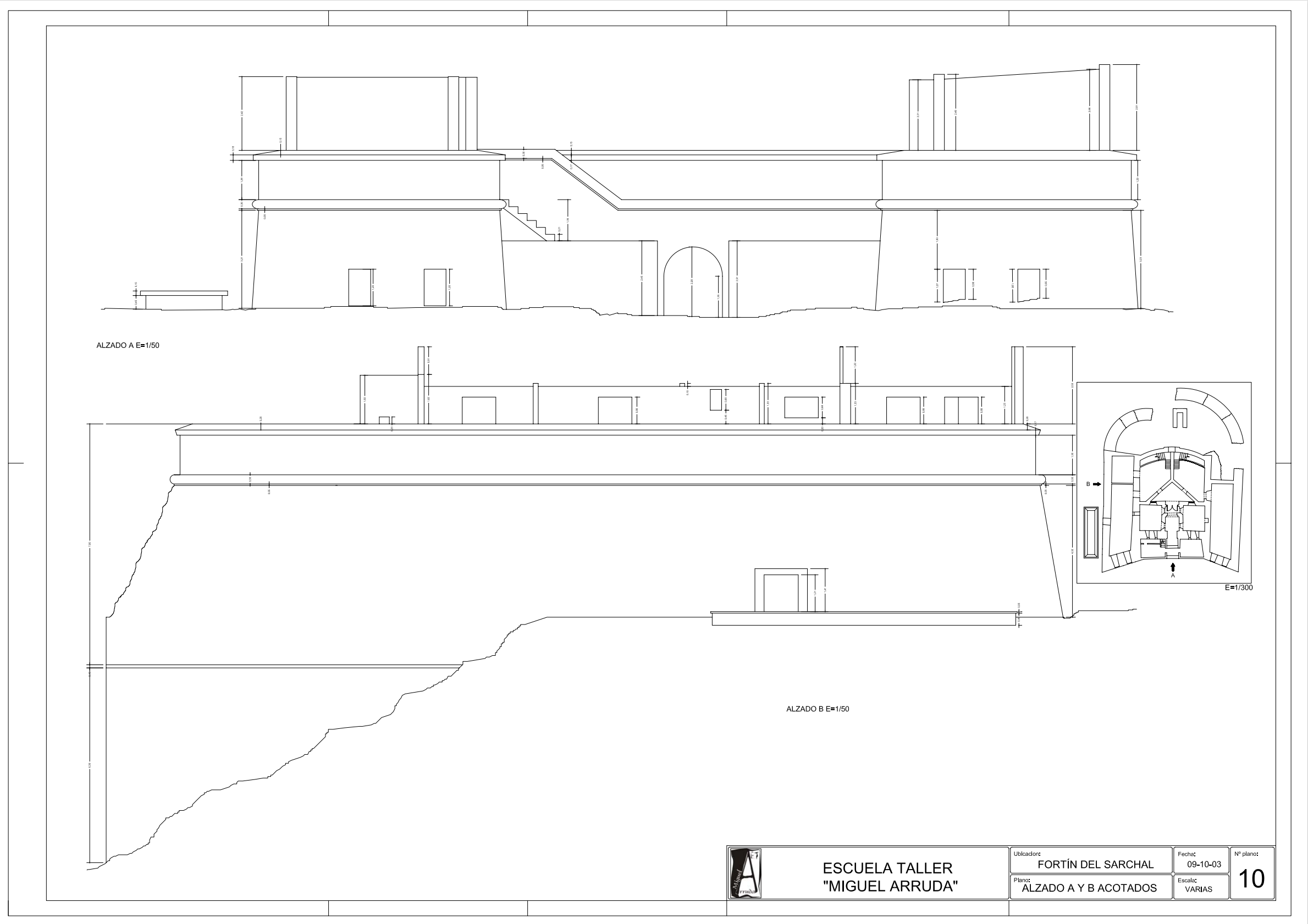 El edificio sufrió un paulatino asiento diferencial de la plataforma artillera, que terminaría quebrando la estructura de la fortaleza y arruinándola. Tenemos noticias de encontrarse plenamente operativo en la década de 1770. Así, según informa Ruiz Oliva, el Sarchal “contenía 5 cañones” en 177255, mientras que montaba “4 cañones de hierro, 3 modernos y uno corto de Marina de 18” en 177556. Comenzó a demolerse en 1805, aunque sólo se hizo parcialmente57. Así consta en el plano referido del Archivo Central de Ceuta de ese año58, en cuya leyenda se indica “fuerte de este nombre que se está demoliendo”. Según Garrido Parrilla, a principios del siglo XX fue habilitado para cárcel, lo que podría estar relacionado con las numerosas refacciones que presenta el fuerte, principalmente la apertura de vanos exteriores orientados al interior para facilitar el acceso, así como las construcciones parásitas del terrado.