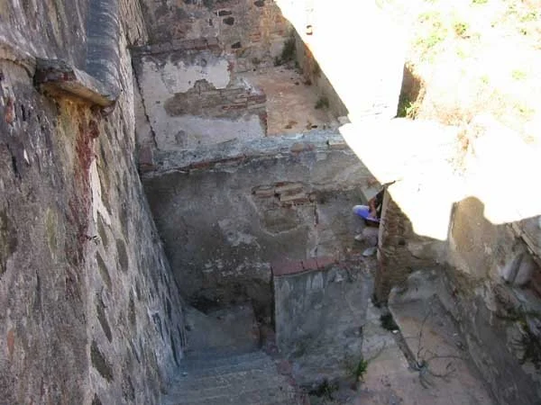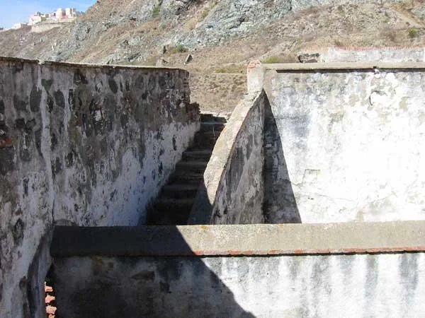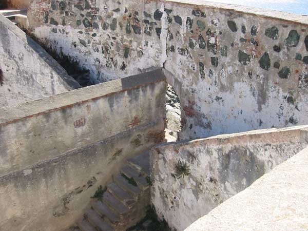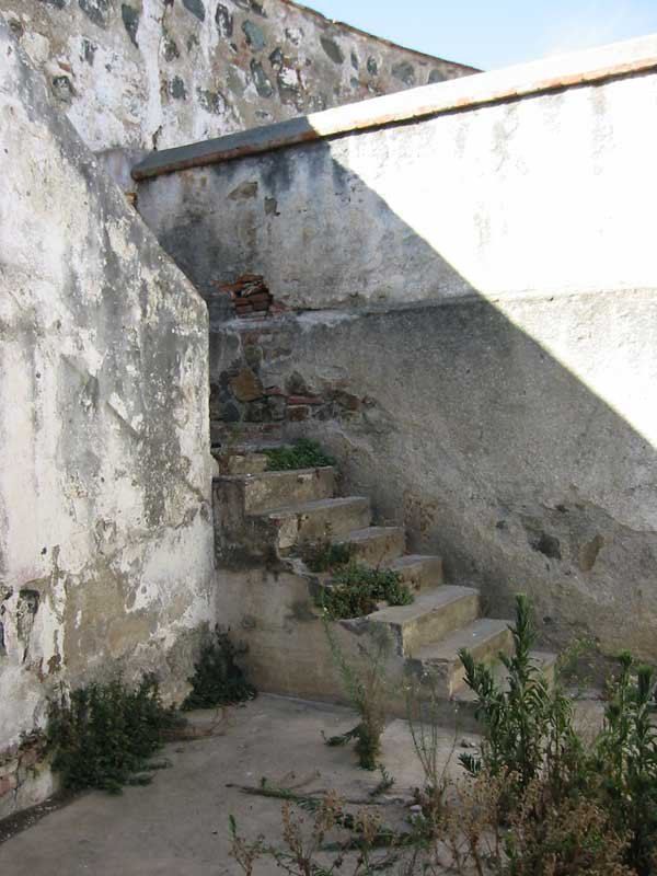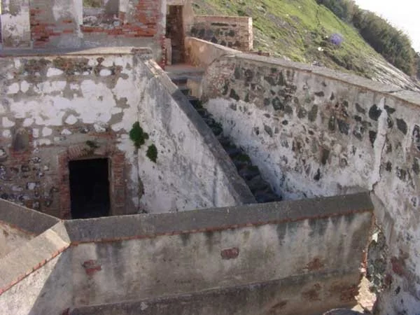 El acceso desde el patio interior se efectuaba por dos escaleras adosadas a su cara meridional. El tabicado con paredes convergentes en el centro del patio interior resulta completamente original. Los vanos para acceso a nivel del suelo que se abren en las caras norte y este del fuerte son modernos, aunque esta del frente oriental, delante de la cual se encuentra un aljibe, pudiera responder a una de las reformas de finales del XVIII o principios del XIX.
