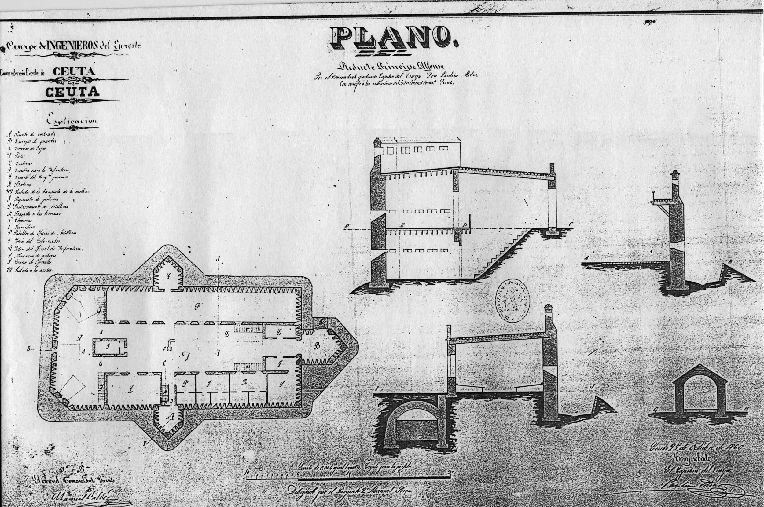 Figura 6: plano del fuerte Príncipe Alfonso por don Paulino Aldaz, 1860