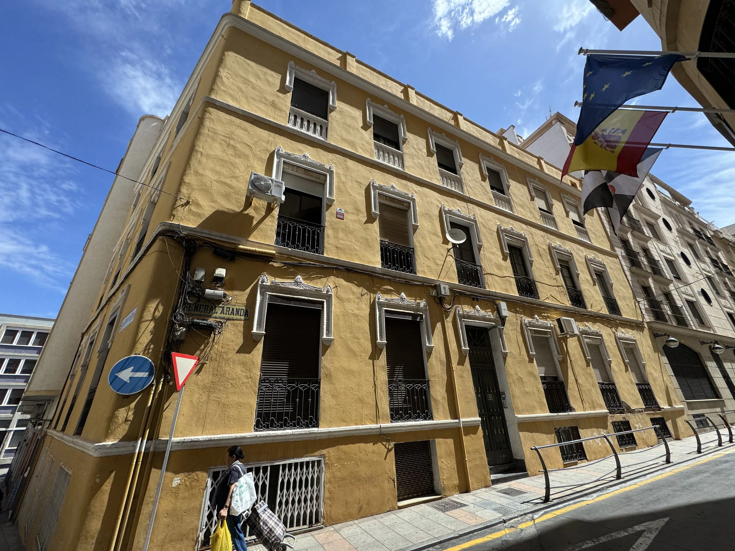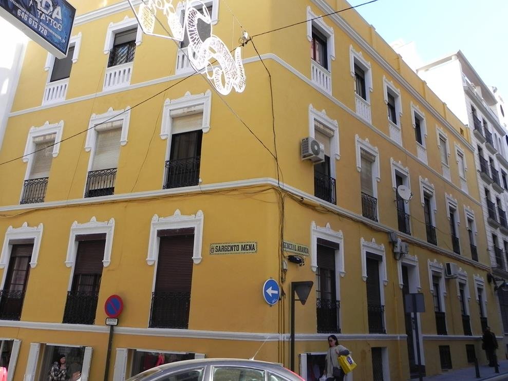 Estructura: Edificio en esquina entre medianeras de tres plantas formando manzana.