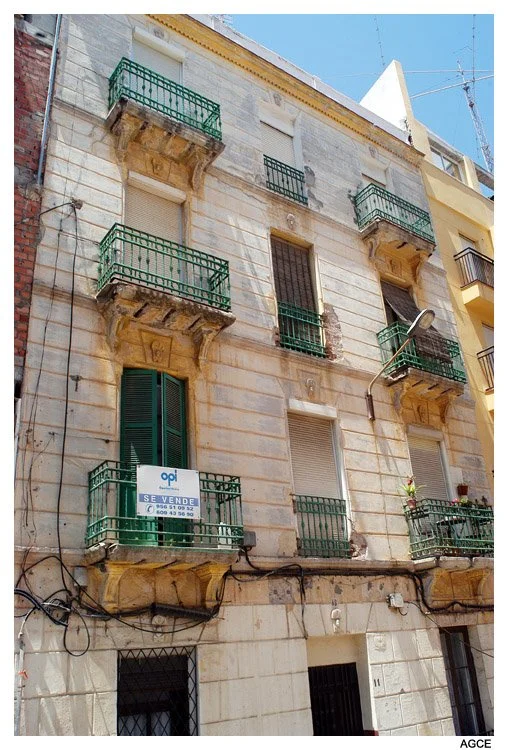 Edificio entre medianeras de cuatro plantas formando manzana.