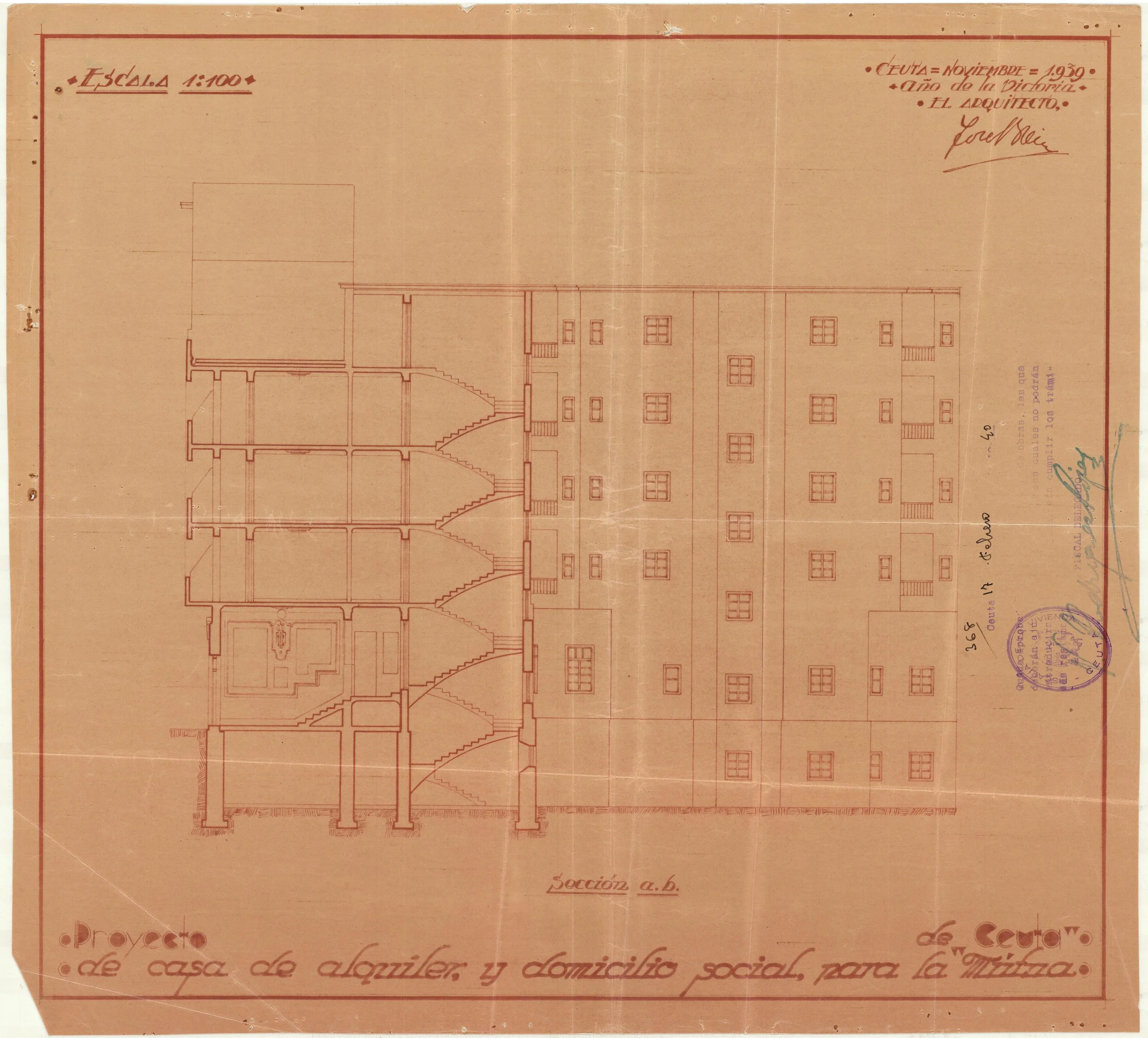 Estructura: Edificio en esquina entre medianeras de seis plantas formando manzana