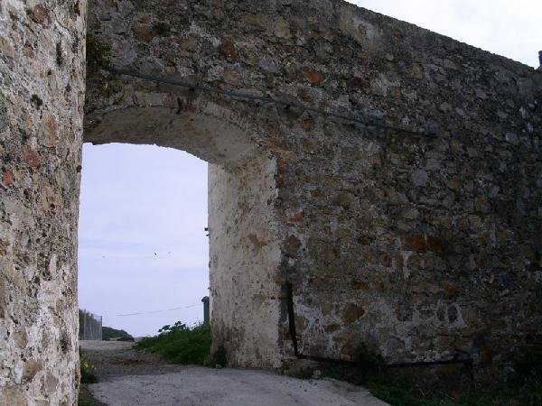 En este antiguo recinto del siglo XVIII, se conserva una estancia de planta rectangular cuyo acceso en su parte Norte está comunicado con una torre de planta circular que originalmente defendía el acceso hacia la puerta. Desconocemos las dimensiones y características de dicha puerta por estar oculta bajo toneladas de arena.