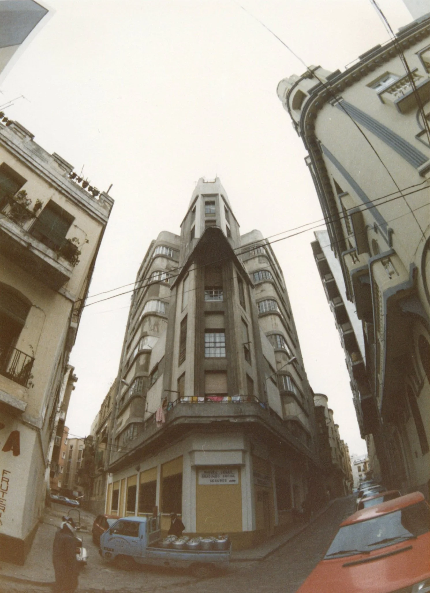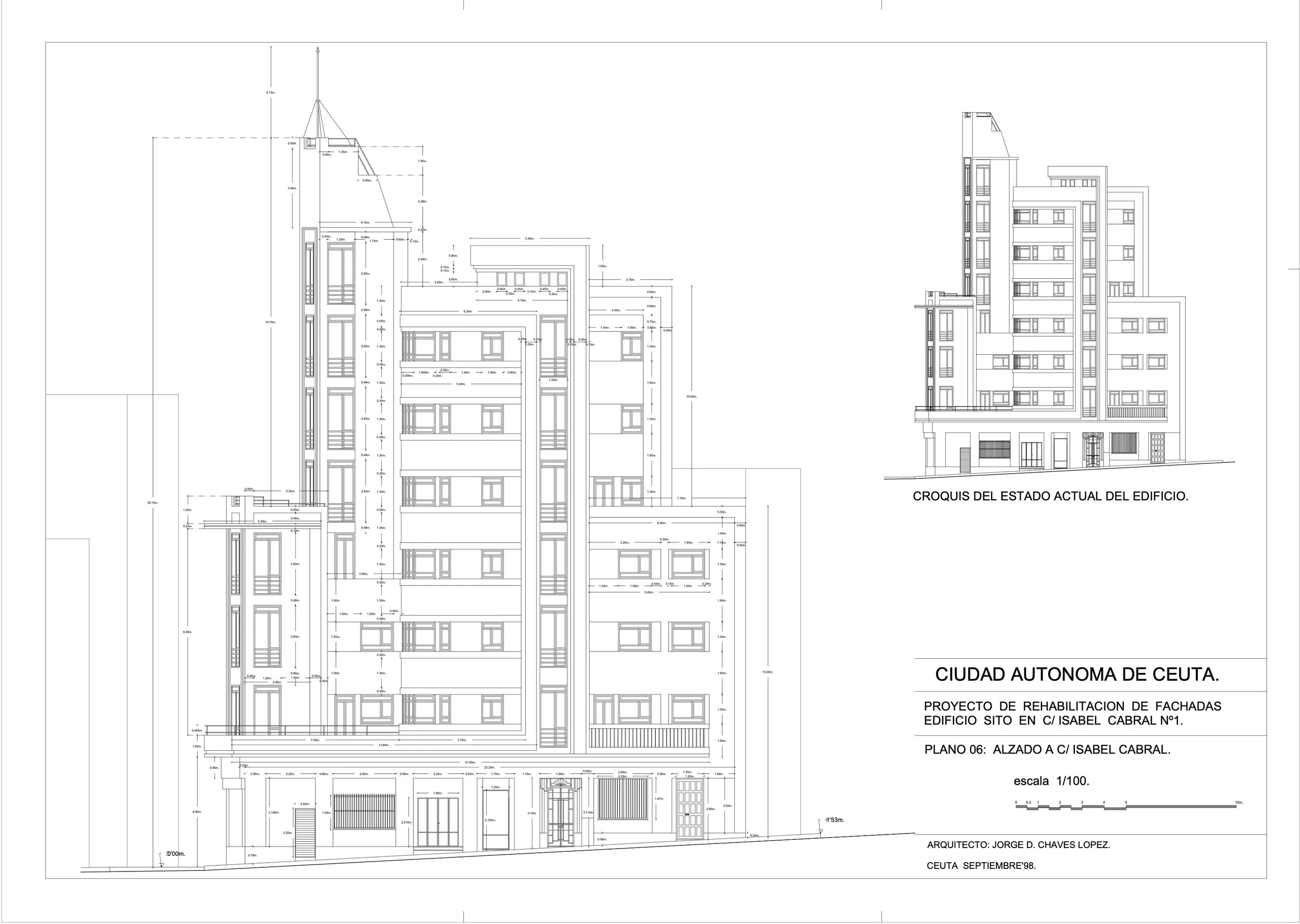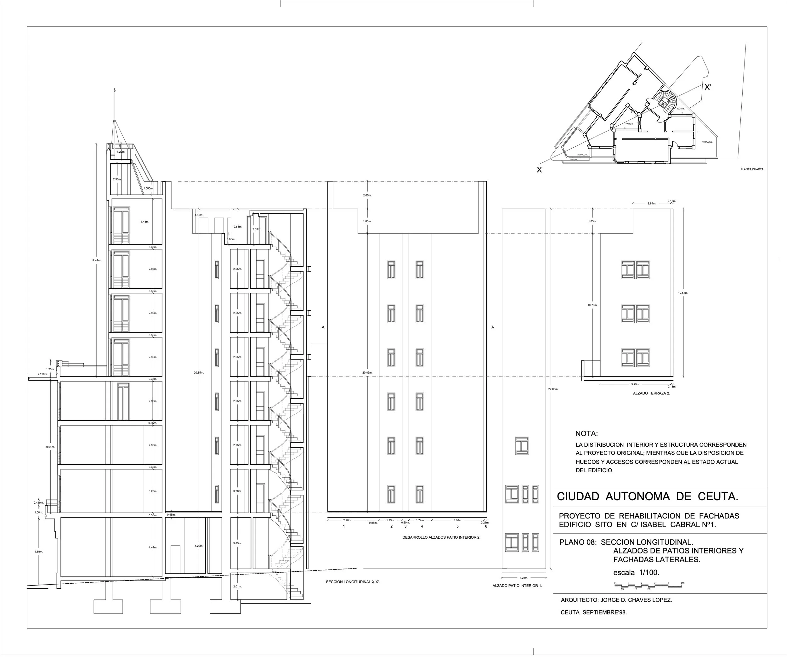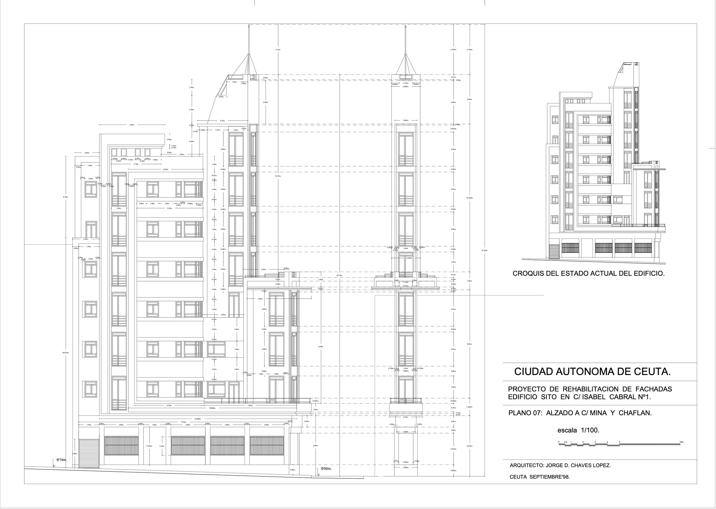 Estructura: Edificación en esquina entre medianeras de siete plantas formando manzana.