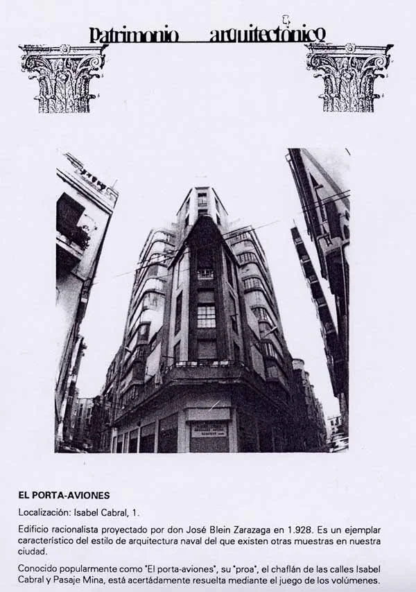 En el primer número aparece un artículo firmado por Gaspar Blein Zarazaga, autor junto a sur hermano José del edificio de viviendas conocido como el PORTAAVIONES. Con el título Arquitectura de Hormigón, hace un repaso a la arquitectura europea reciente de los años 20 construida con hormigón armado, entre los que se encuentra el edificio construido en la calle Isabel Cabral 1 de Ceuta, mostrando cómo la ciudad estaba en esos años a la vanguardia arquitectónica.