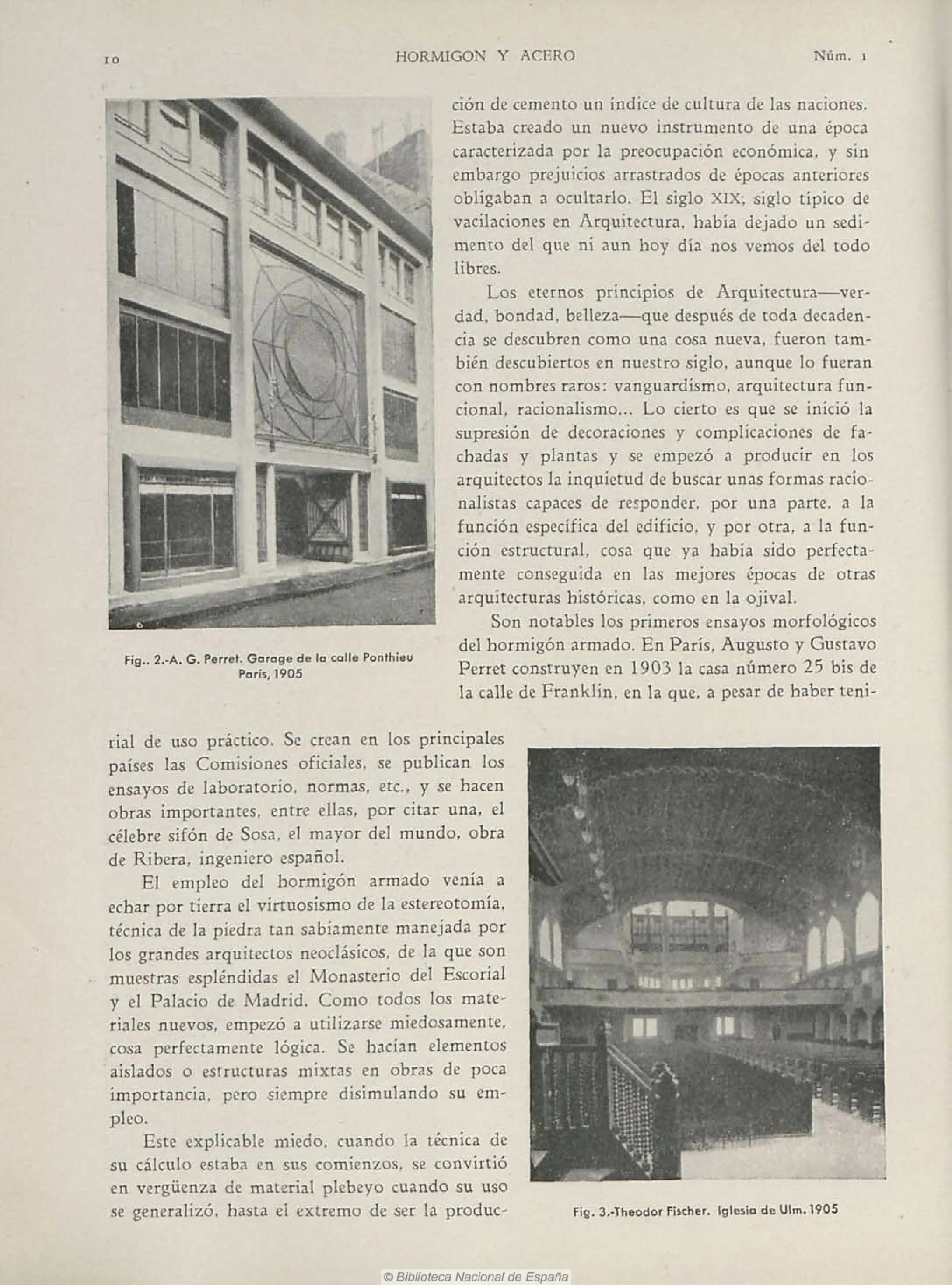 En mayo de 1934 se publica el primer número de la revista técnica de construcción, Hormigón y Acero, dirigida por los ingenieros Eduardo Torroja y Enrique García Reyes, con el objetivo de dar a conocer el uso del hormigón armado tanto en ingeniería como en arquitectura. Para ello cuenta con un selecto grupo de ingenieros y arquitectos, la mayoría profesores de las mejores universidades europeas; Universidad de Lieja, Technische Hochschule de Berlín, Technische Hochschule de Stuttgart, Politécnico de Zurich, Technische Hochschule de Viena, Politécnico de Milán… A lo largo del siglo XX, algunos de estos ingenieros se convirtieron en referencia para el cálculo de estructuras y aún son estudiados en escuelas de ingeniería y arquitectura; Campus, Dischinger, Freyssinet, Graf, Lossier, Ross, Saliger, Satarella, Terzaghi, Torroja…