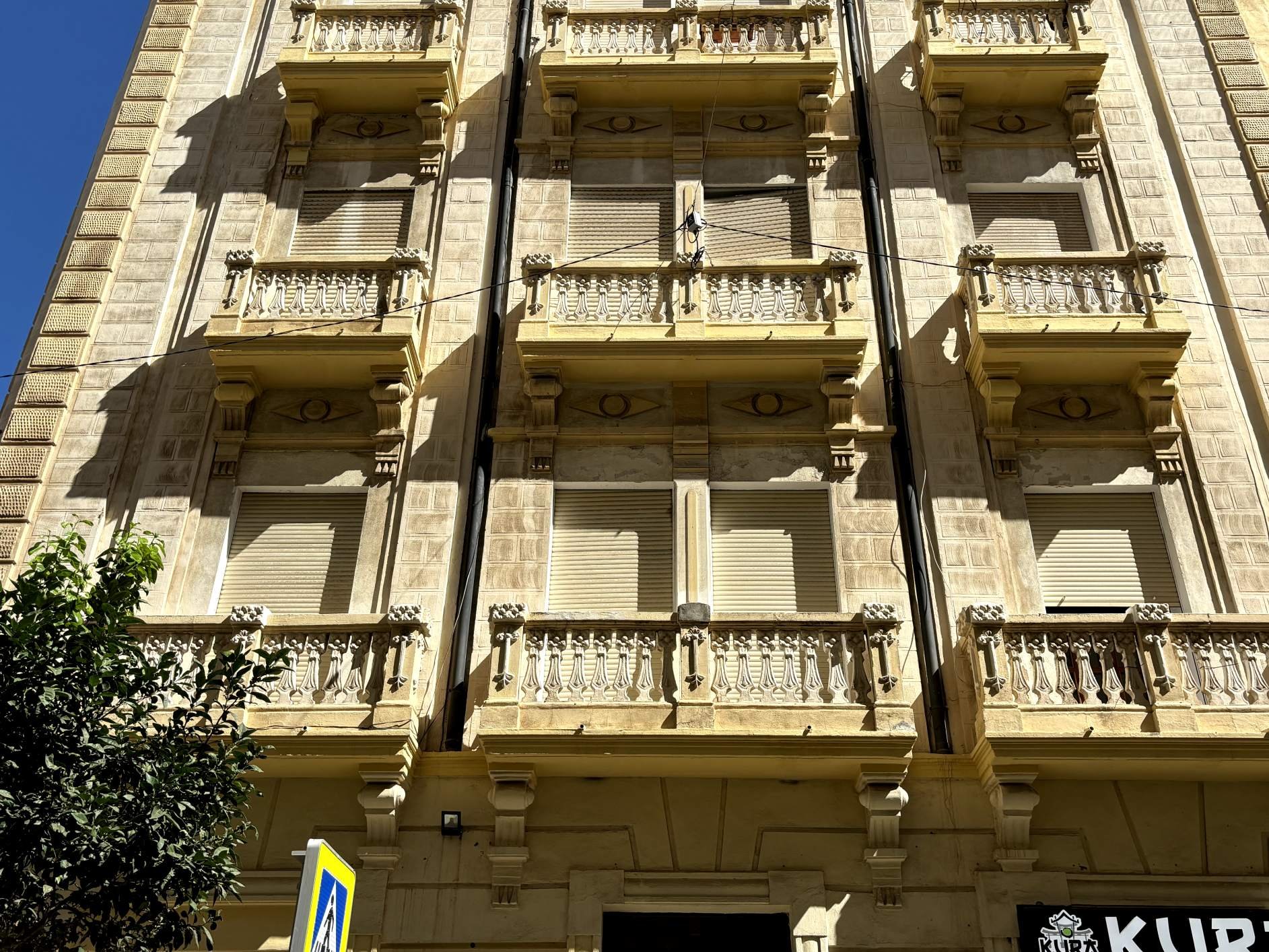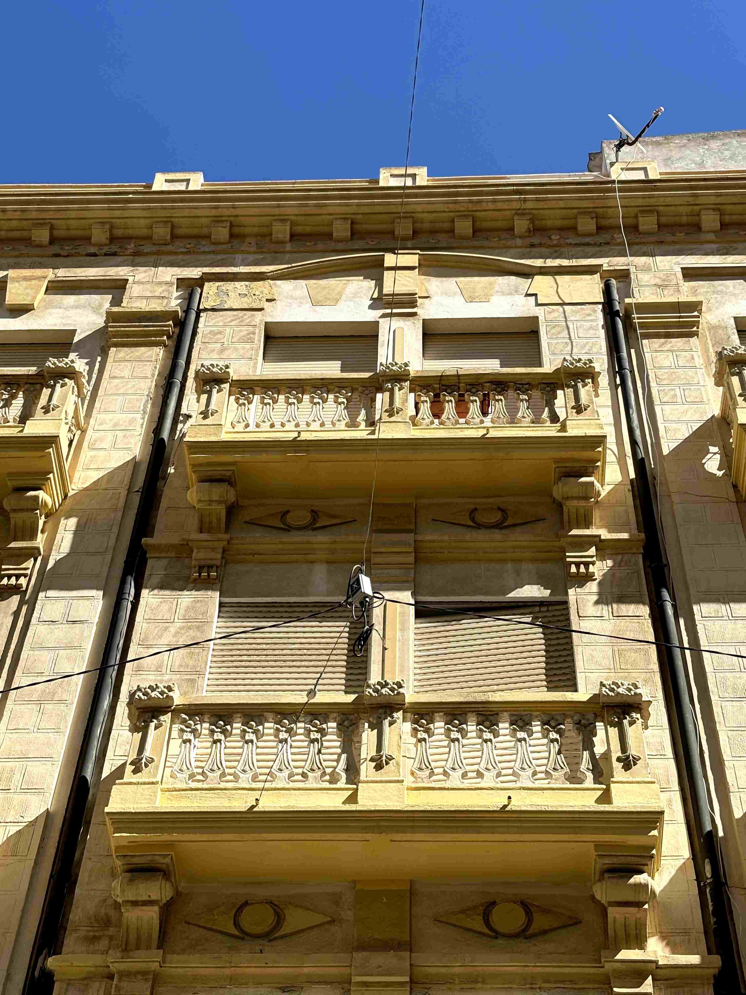 Estructura: Edificio en esquina entre medianeras de cuatro plantas formando manzana
