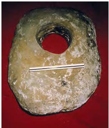 Figura 4.- Ancla pétrea recuperada de las aguas de Ceuta, conserva da en el Museo de Ceuta.