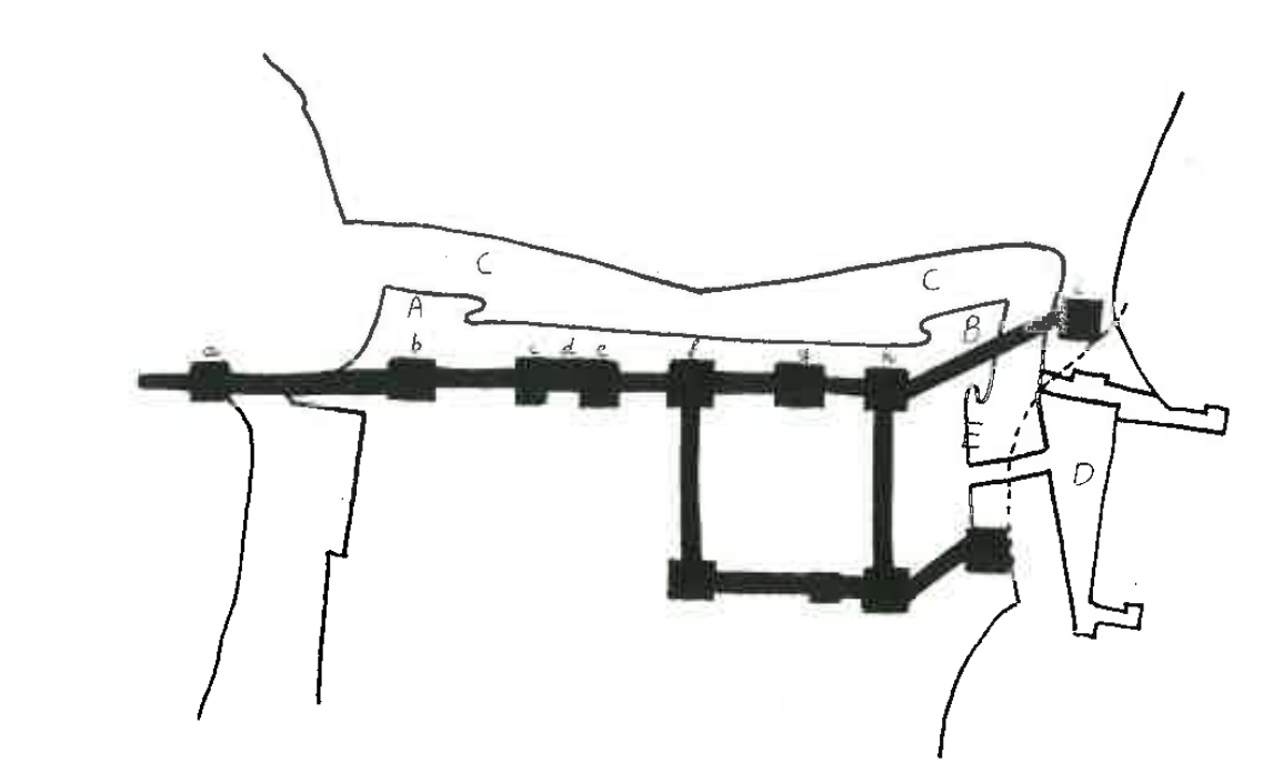 También existe la muralla paralela a la principal, que forma un camino de ronda, aunque en este plano este camino sea proporcionalmente mucho más estrecho que el señalado en el plano anterior.