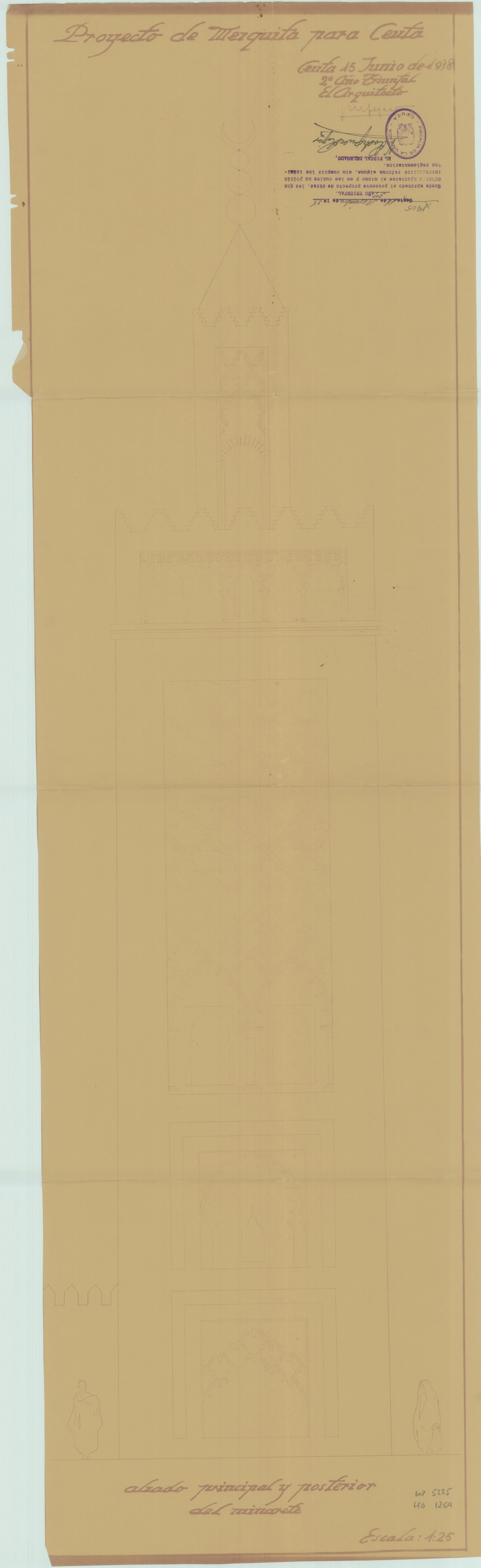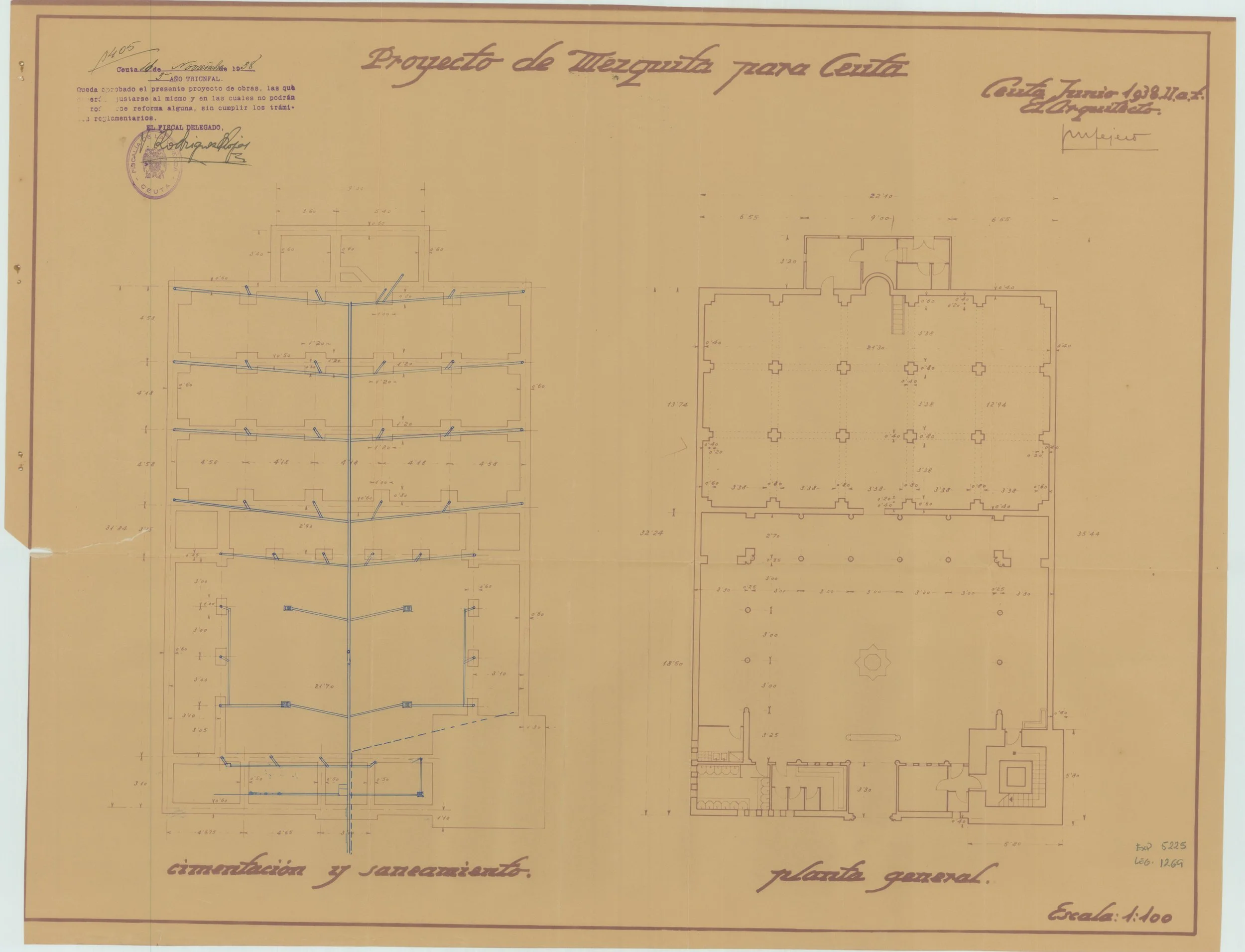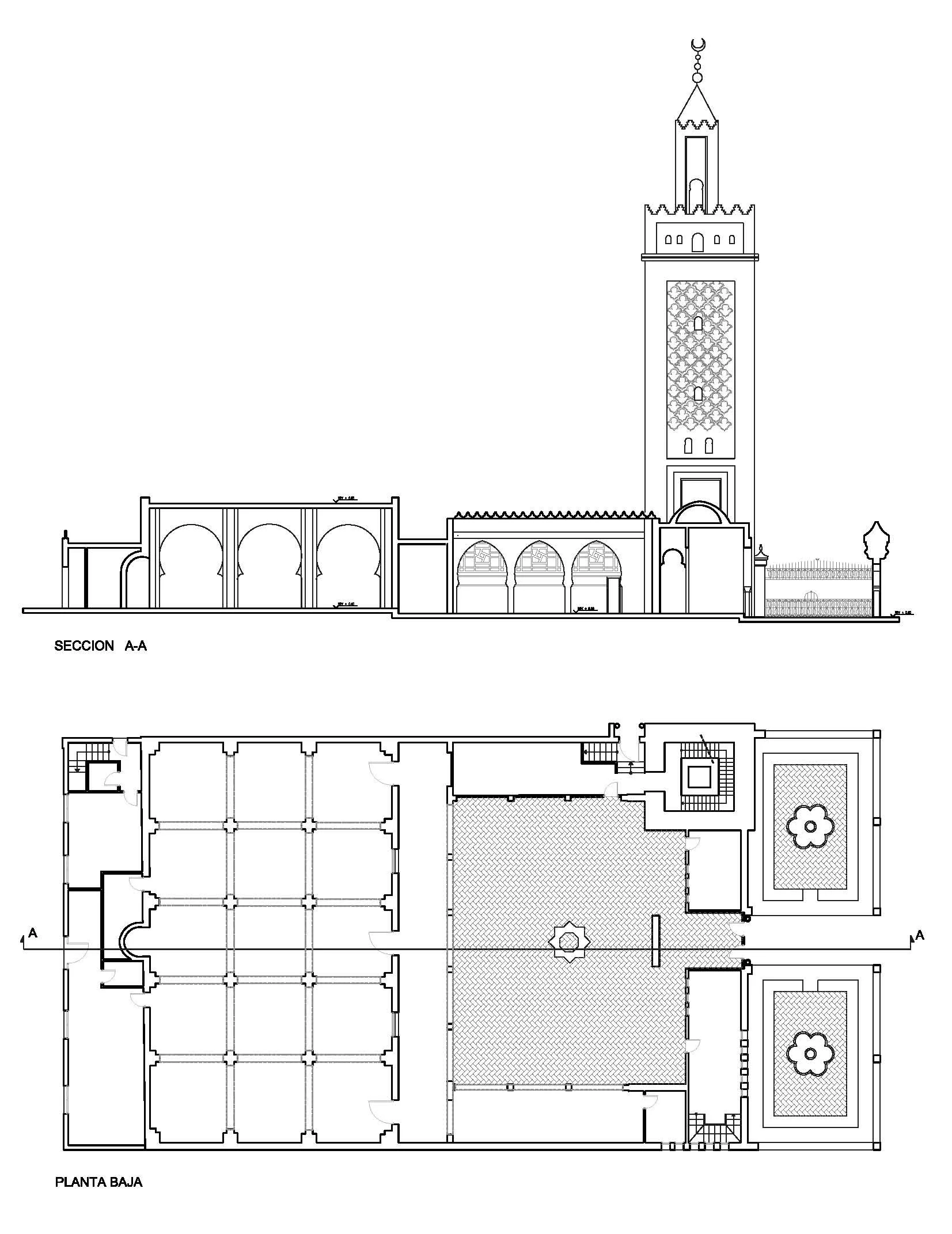 Nivel de protección PGOU 1992: 2.3 El proyecto redactado por el arquitecto José Maria Tejero y Benito con fecha 15-5-1938, pretendía dar respuesta a las necesidades de la Comunidad Musulmana Ceutí, asumidas en el encargo del Alto Comisario, que se cifraban en un Santuario capaz para novecientas personas.