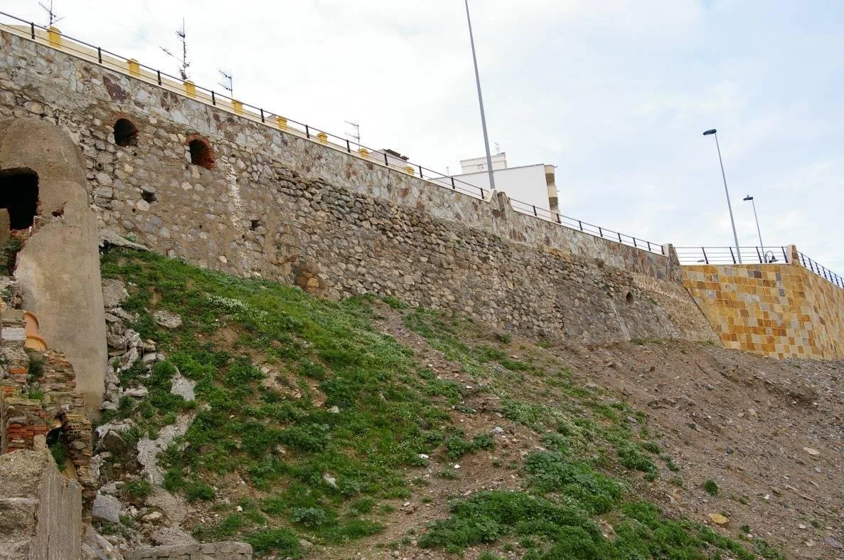 Fase 3. Coincidiendo con la ejecución de obras de infraestructuras y reurbanización en esta zona de la Almina en 2005, se emprendieron obras de urbanización, colocando una barandilla sobre todo el perímetro superior recrecido del pretil, y restituyendo el talud del pie de las estructuras demoliendo diversas construcciones adosadas.
