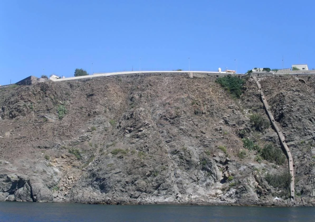 La topografía es abrupta en esta zona, con una importante pendiente que solventa la gran altura que existe hasta la propia línea de costa. Todas las fortificaciones se sitúan en la cima del acantilado, aprovechando la propia defensa natural del terreno.