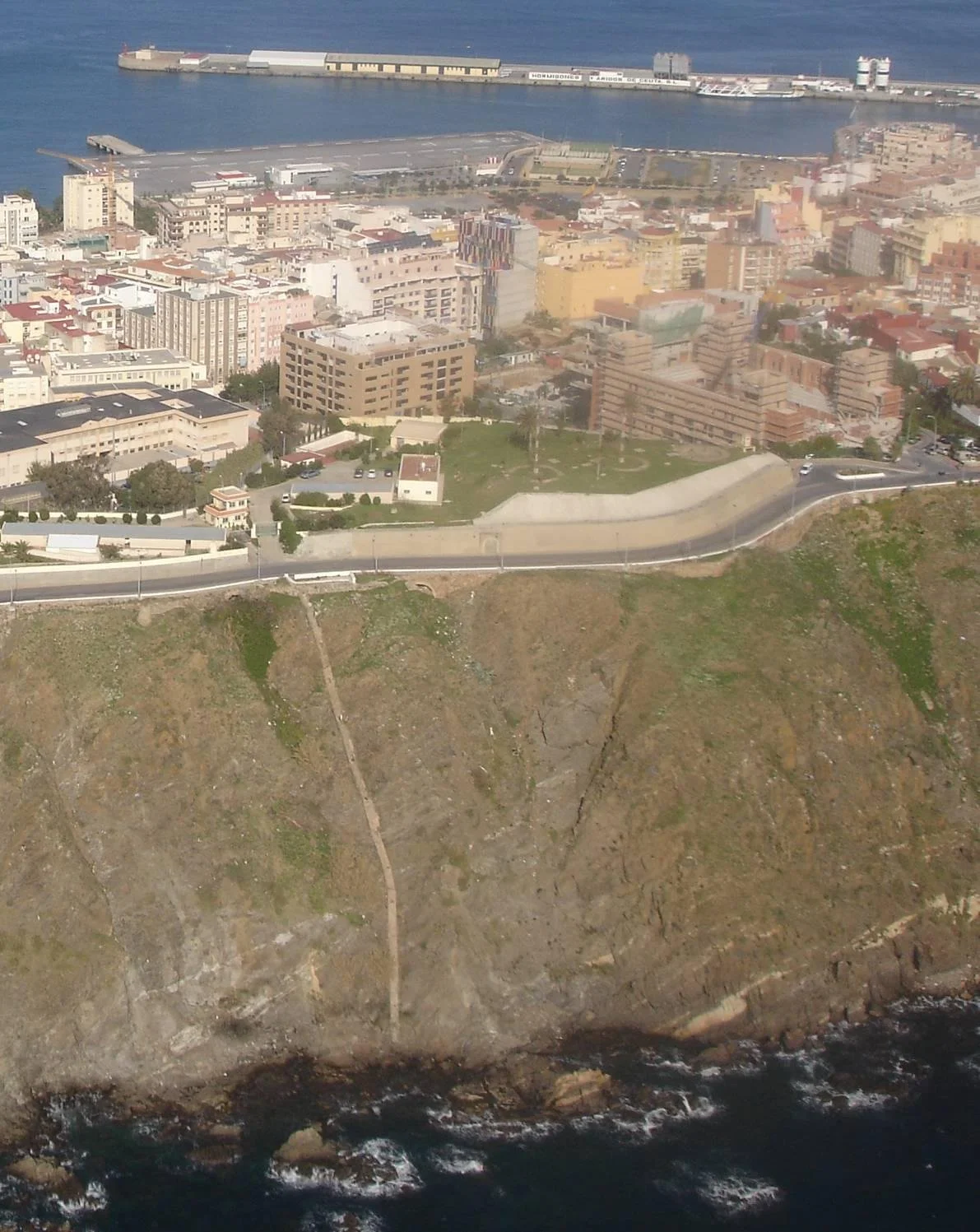 La construcción objeto de estudio se localiza en pleno borde litoral del frente sur de la Almina, en concreto a la altura de las lomas de San Simón, donde en la actualidad se localizan unas instalaciones de inteligencia militar. Se trata de una zona incluida en el Dominio Público Marítimo Terrestre (Ley 22/88 de Costas), que a su vez se ve afectada por un área general de Interés para la Defensa Nacional (Ley 8/75).
