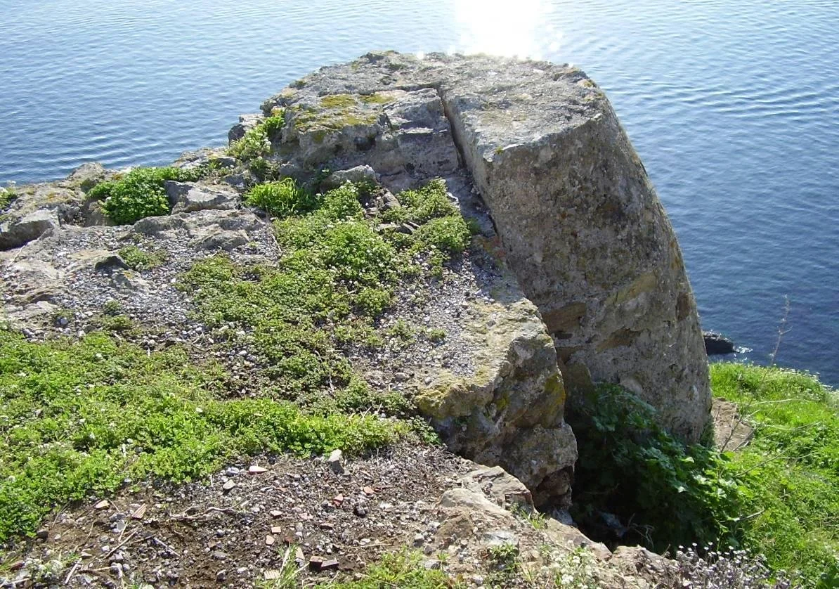 Cabe referir que hay un punto de salida de una tubería de saneamiento, desde la Almina hacia el mar, aprovechando y rompiendo unos de los lienzos situados al este del garitón.