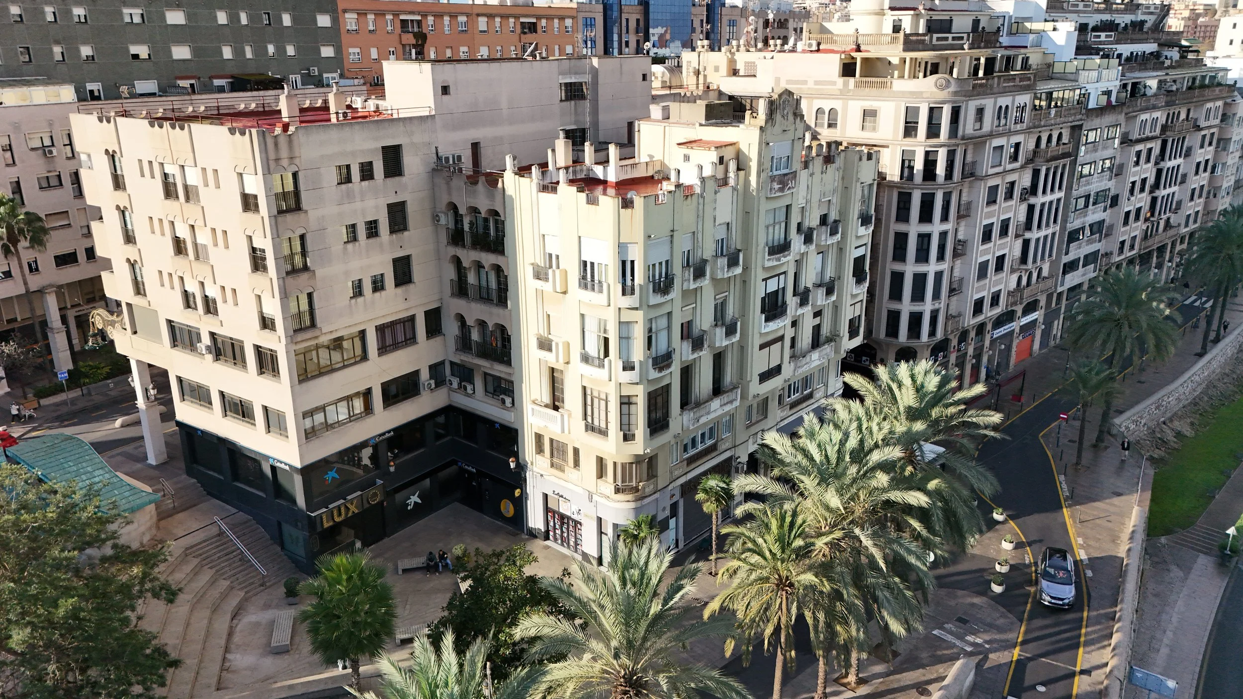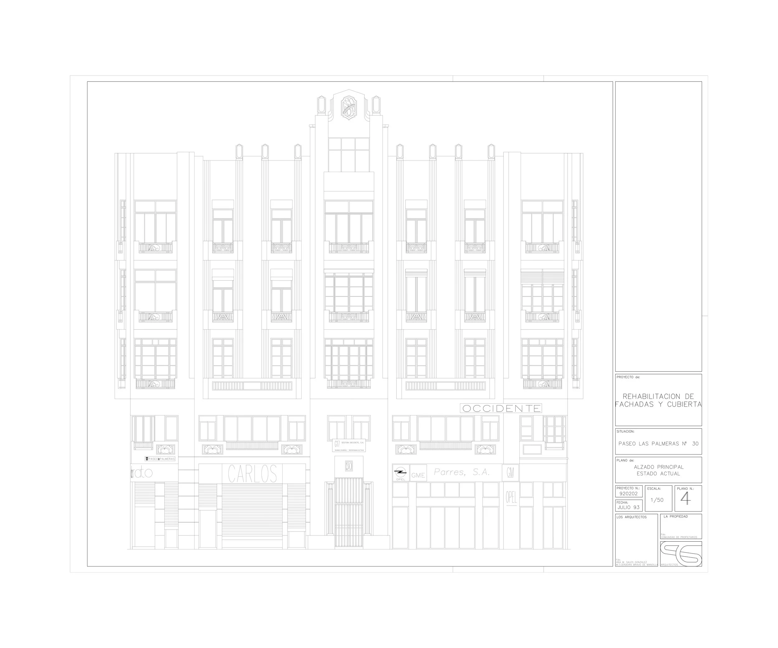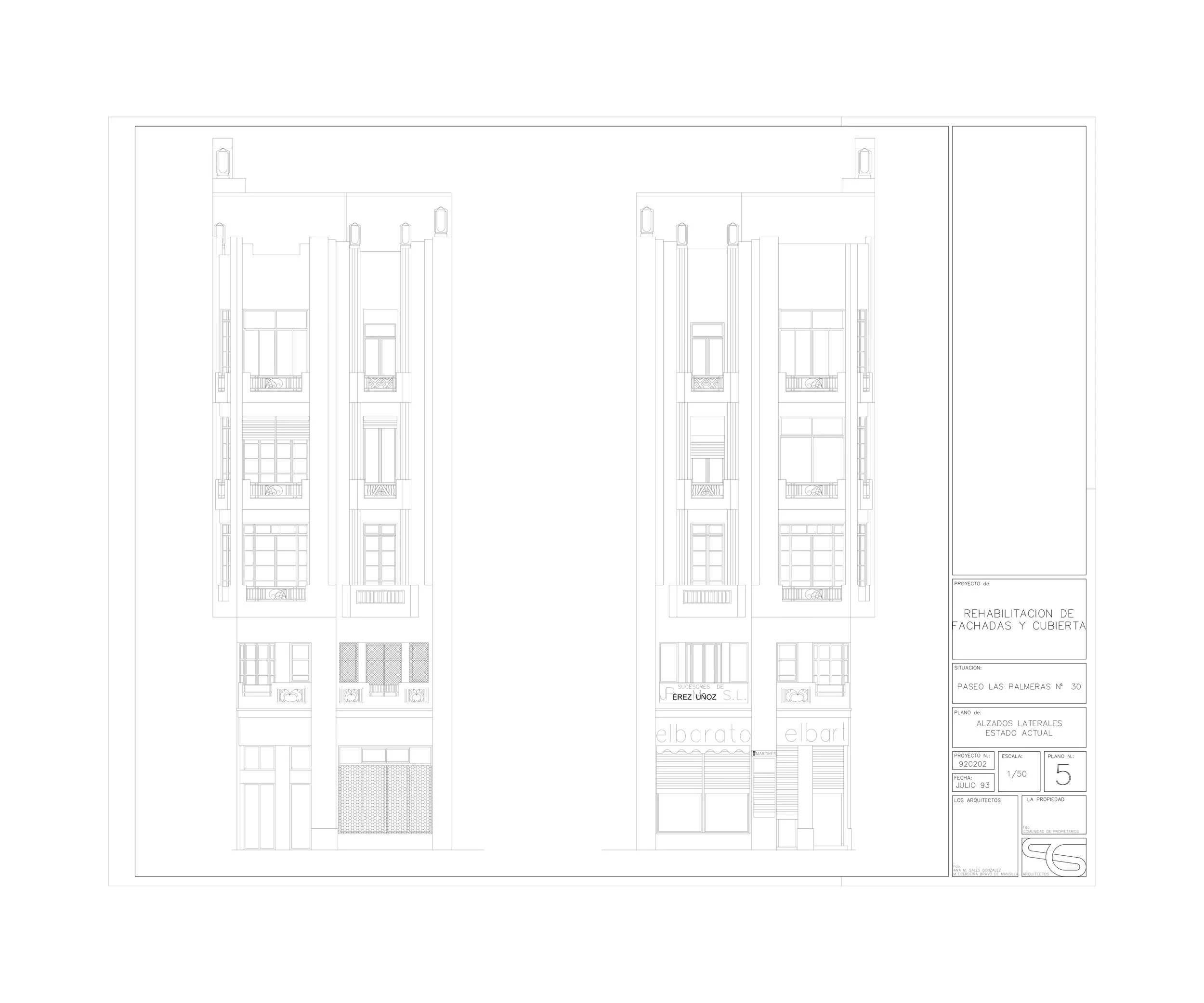 Estructura: Edificio en esquina entre medianeras de cinco plantas formando manzana.