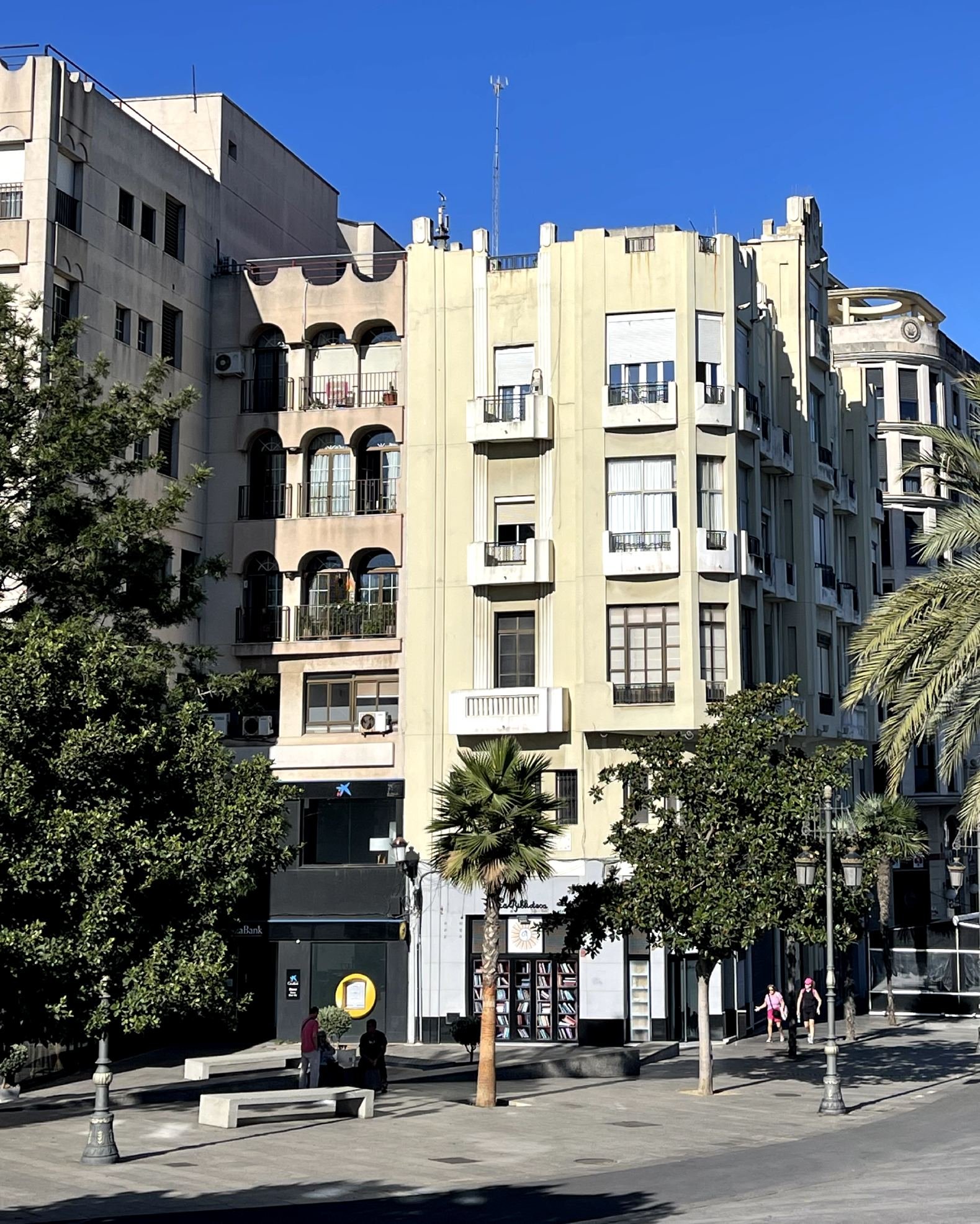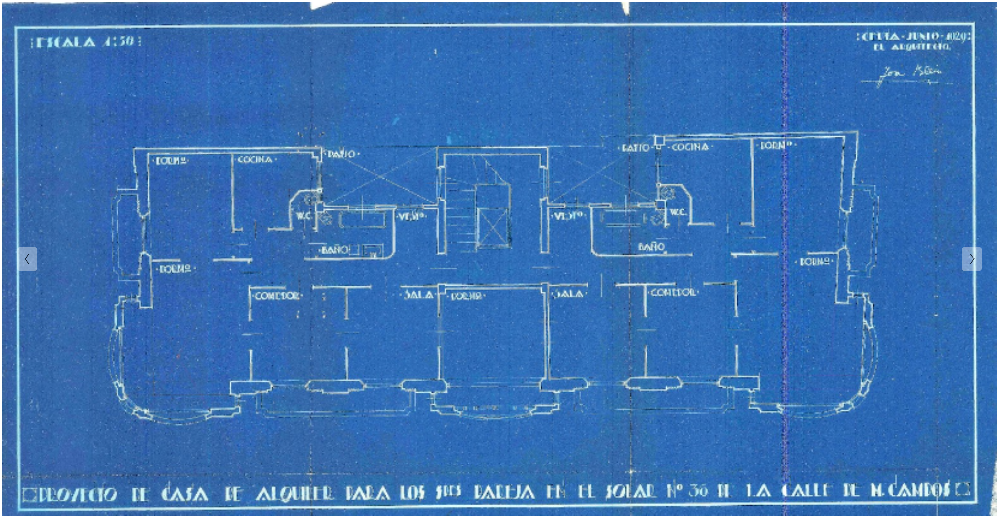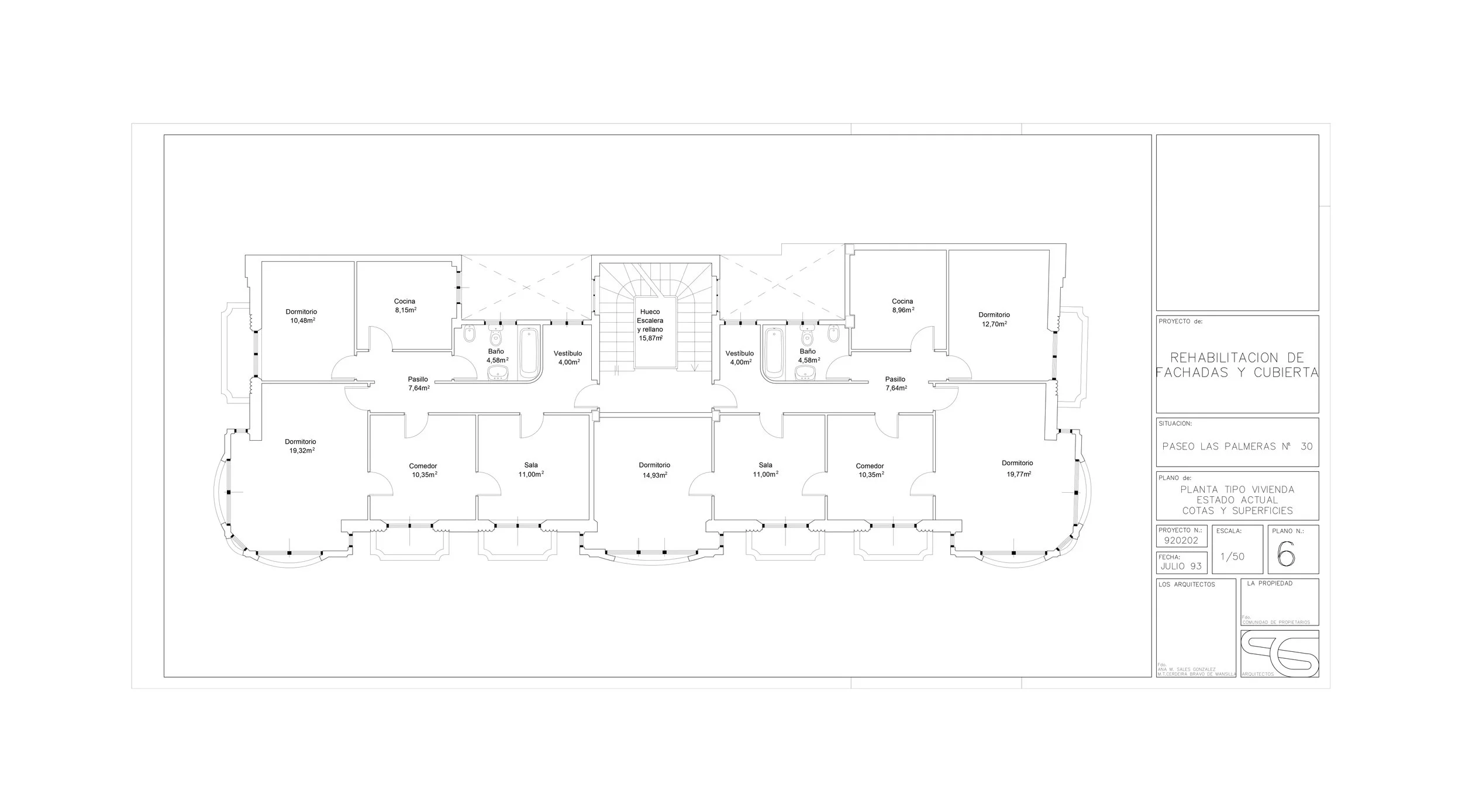 Estructura: Edificio en esquina entre medianeras de cinco plantas formando manzana.