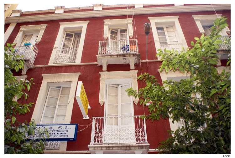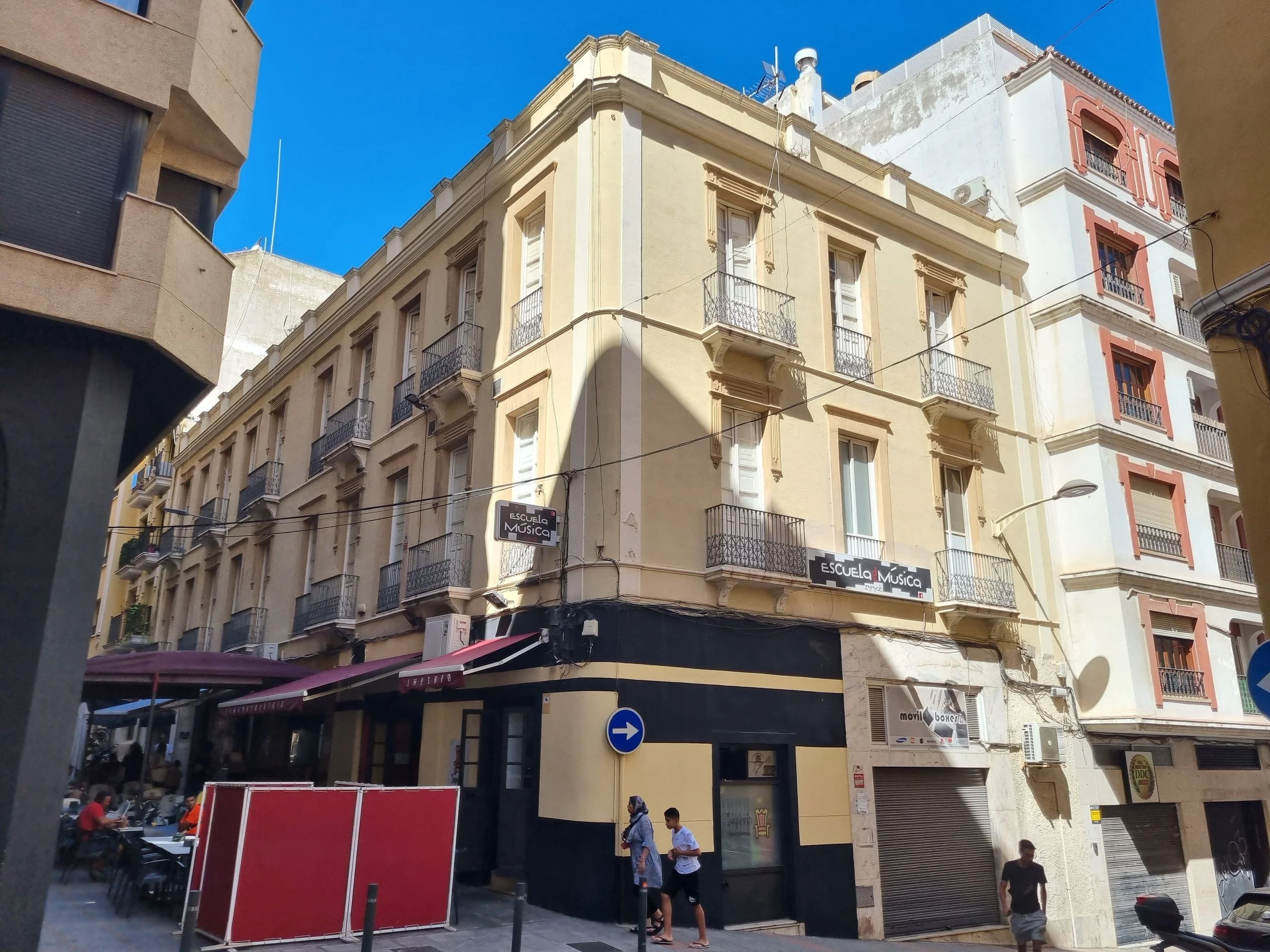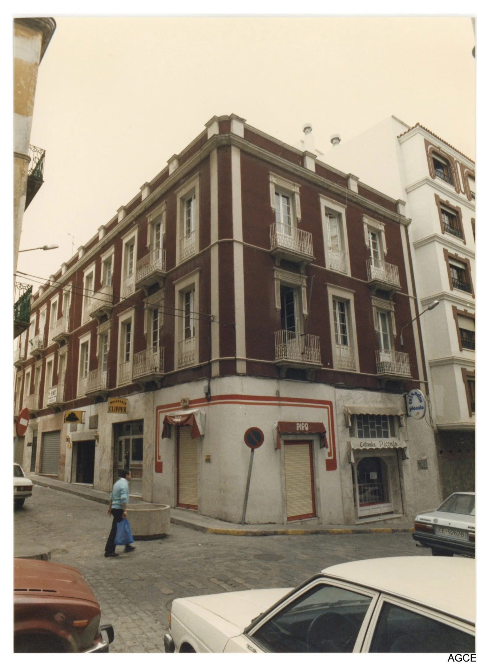 Edificio en esquina entre medianeras de tres plantas formando manzana.