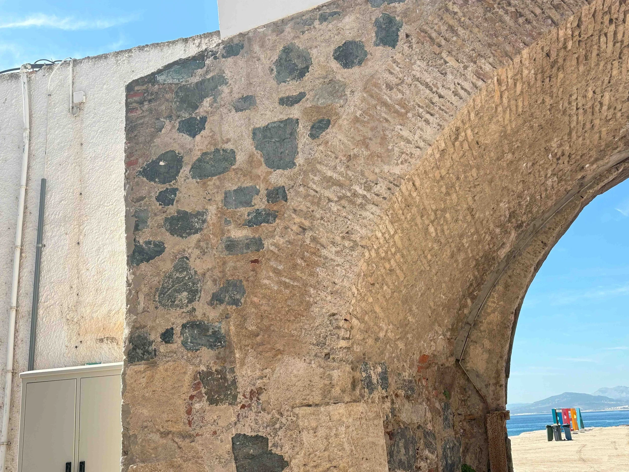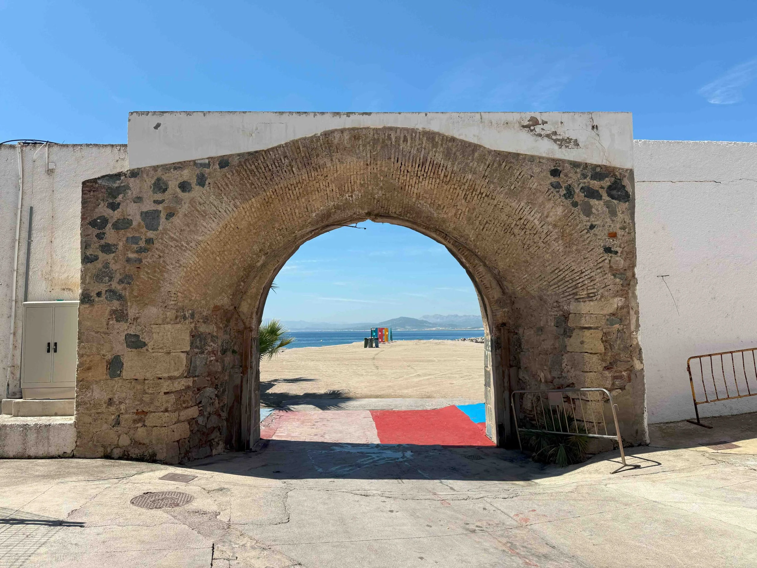 La puerta de salida a la playa se abre en el lienzo de la muralla con un arco de medio punto ligeramente rebajado, formando una bóveda con ladrillo de medio cañón al interior. Se encuentra en la actualidad cerrada por una verja. Y su uso es de cerramiento del patio de servicios del mercado.