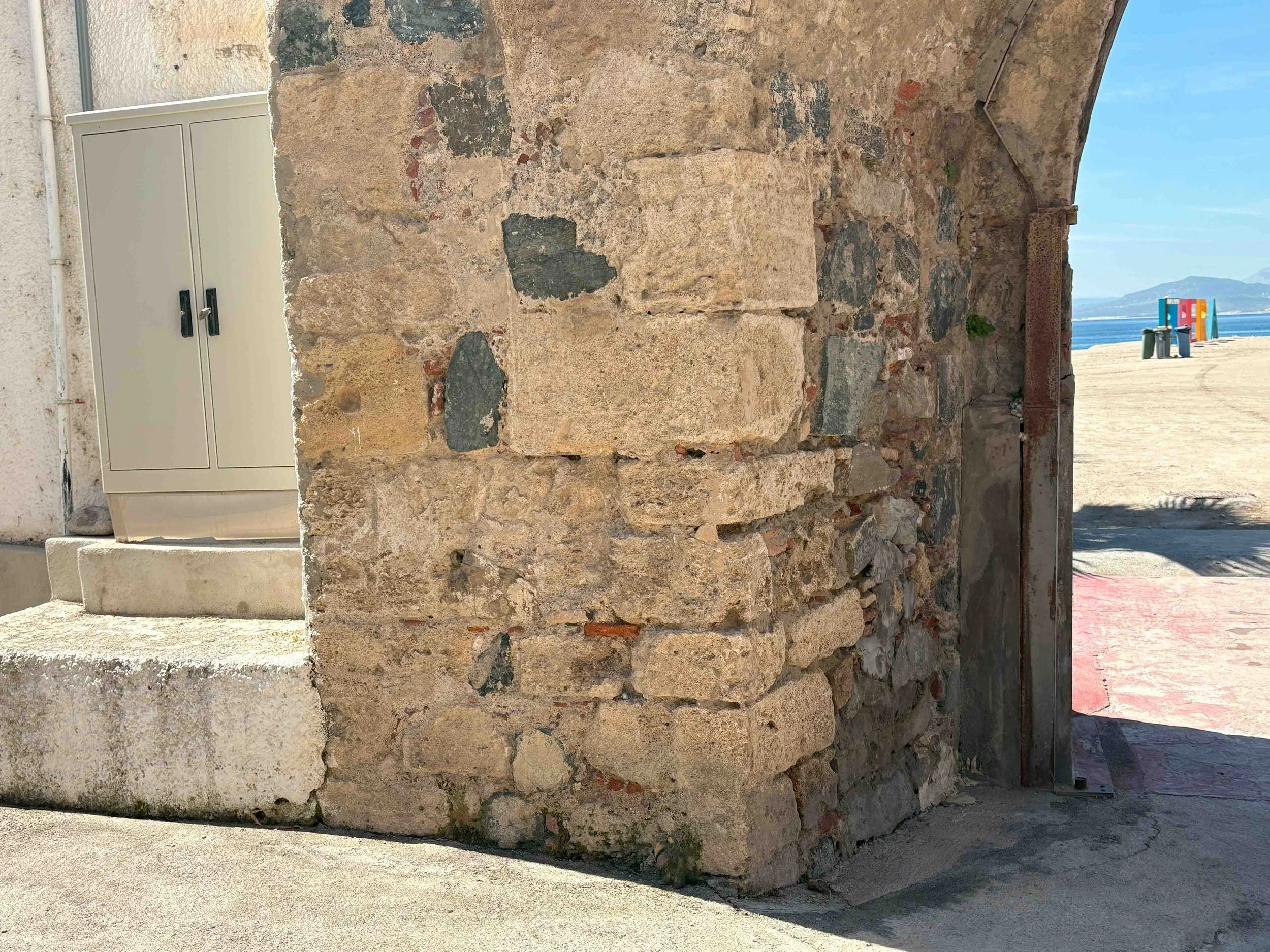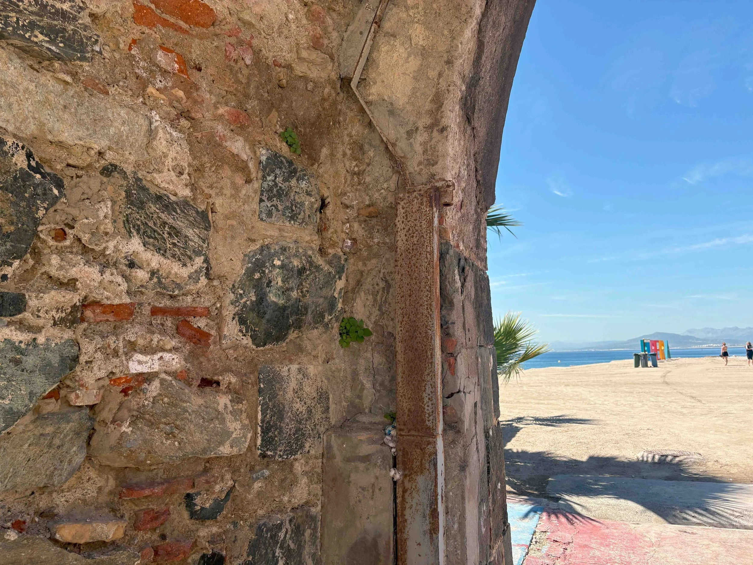 Existe en la actualidad una caseta de instalaciones colocada en la playa, delante del muro, que obstaculiza la percepción del elemento desde la playa.