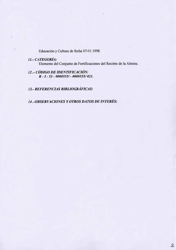Información extraída del Plan Especial de Protección de Conjunto Histórico de las Fortificaciones del Recinto de la Almina (autores: Gurriarán Daza, García Villalobos, Pascual Origosa, Muñoz Marín)