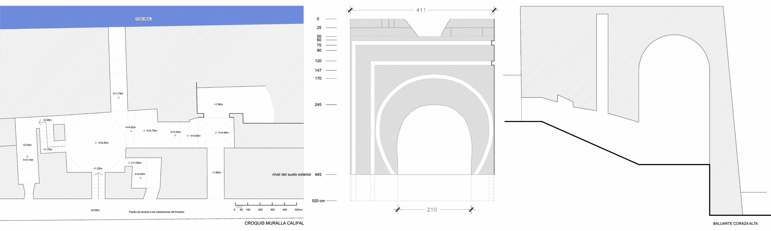 planos de la Puerta Califal y del baluarte de la Coraza Alta