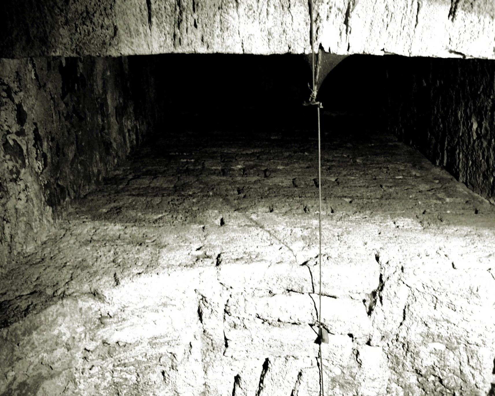 Parecía lógico que existiera la posibilidad de cerrar de manera estanca e impedir el acceso al interior de la muralla en el caso de que hubieran tomado el baluarte desde el foso, a través del gran hueco aún existente, Aureliano Gómez Vizcaíno, como buen artillero, comentó que podría ser una salida de humo pensada para las piezas de artillería, pero no parecía que estuviera abierta en su parte superior. A mí me resultaba extraño que necesitaran tanta anchura para un rastrillo y que fuera tan alto para un pasaje de apenas 3 metros de altura. Ante la falta de iluminación saqué mi pequeña cámara digital Fuji para utilizar el flash como linterna. Al disparar varias fotos me ratifiqué en cuanto a la altura porque parecía como si llegara hasta la cubierta, pero mis dudas se acrecentaron porque uno de los lados estaba perfectamente aparejado, mientras que el otro tenía un acabado en bruto. En un momento dado, Antonio Rodríguez, la persona de mantenimiento del Parador que nos acompañaba y que nos había abierto las diferentes puertas, nos dijo que esperáramos un rato porque nos iba a traer una linterna. Mientras intercambiamos impresiones, parados en mitad de la rampa, fuimos creando un tapón pues era complicado pasar a nuestro lado para poder salir al pasillo, también porque otras personas se unían a la conversación (Fernando Villada, José Manuel Hita) o prestaban atención a la misma (José Pedro Pedrajas, José María Hernández). Llegó Antonio con la linterna y me dispuse a iluminar esos paramentos. Tras un primer recorrido apagué la linterna y me giré hacia mi derecha, donde Fernando y José Manuel se mantenían la mirada sin decir nada, inmóviles, pero sus expresiones faciales me indicaban que algo sucedía.
