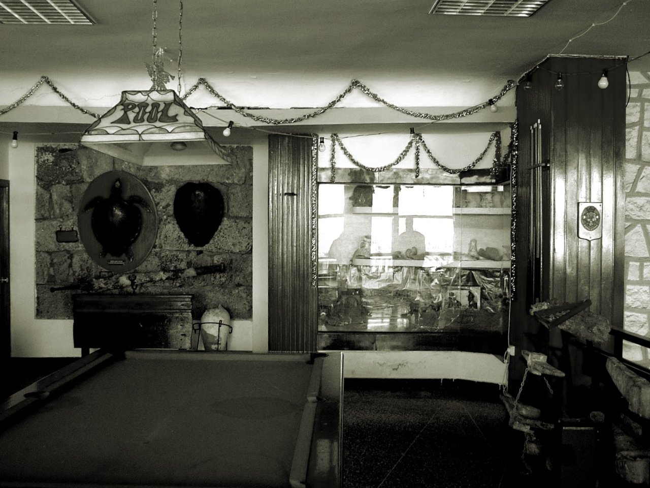 El director se adentró en la bóveda y giró a la izquierda, nos guió por un largo pasillo hasta que se paró junto a una puerta de madera que se encontraba en el lado opuesto a las habitaciones, en el lateral derecho del pasillo, donde no había ningún otro hueco. Aunque la puerta fuera idéntica a la de las habitaciones, esta se encontraba bajo un arco que había sido cegado y ese dato me hacía entender que no íbamos a entrar en una habitación, tampoco en el baluarte de la Coraza Alta, puesto que el pasillo continuaba y se suponía que el acceso estaría al final del mismo. Mientras el director trataba de abrir la puerta, mi impaciencia se aceleraba ante la incertidumbre de qué íbamos a encontrarnos. Una vez dentro, me quedé fascinado por un espacio coronado por una cúpula, del resto poco se podía adivinar a causa de la poca luz y de estar repleto de objetos abandonados; sillas, mesas, luminarias, camas... se trataba de mobiliario defectuoso del hotel y parecía como si hubieran dedicado esa estancia a trastero, lo cual era doblemente extraño, por las dimensiones y por el revestimiento de mortero de cemento rústico ondulado, como si hubiera tenido otro uso más digno con anterioridad; el director nos comentó que esa sala había sido utilizada para jugar al billar durante los primeros años de funcionamiento del hotel. Mientras avanzaba entre los muebles apilados pude ver la luz natural que entraba horizontalmente por el muro opuesto al de la entrada y que provenía de una diminuta ventana al final de una estrecha galería. De repente, esa luz se convirtió en un objetivo puesto que me iba servir de referencia para saber dónde estábamos en relación a las Murallas Reales. Antes de llegar al final de la galería excavada en la muralla (no tenía revestimiento alguno) ya pude adivinar que me dirigía hacia el foso gracias al ruido de las embarcaciones que por él navegaban en ese mismo momento. Me hice una idea de la posición de esa ventana utilizando como referencia la contraescarpa y el hornabeque del Frente de la Valenciana porque una malla metálica antipalomas me impedía sacar la cabeza por fuera y ubicarme con los dos baluartes. Me dije que tras la visita me iría al otro lado del foso para ver la situación de esa ventana y entender mejor dónde estaba esa estancia, que no se correspondía con ningún elemento visible desde el exterior como sí ocurría con los baluartes. Volví al interior para explorar el espacio abovedado y en especial las estancias asociadas que se situaban en los dos laterales. Aunque a la izquierda pude ver dos arcos que precedían sendas estancias, no me adentré al estar completamente oscuras y llena de objetos, que además podían resultar peligrosos, como la lana de roca utilizada en aislamientos, sin embargo, en el lado opuesto, un hueco daba paso a una escalera y automáticamente me imaginé que a lo mejor me llevaba a otro lugar aún más oculto o a una salida secreta sobre la cubierta. Nuevamente me encontré con la dificultad de andar entre objetos y a oscuras. De repente me tropecé con uno de ellos provocando un ruido ciertamente aparatoso. Sin ver exactamente con qué me había golpeado, supe inmediatamente de qué podía tratarse por el sonido metálico y por su tamaño.