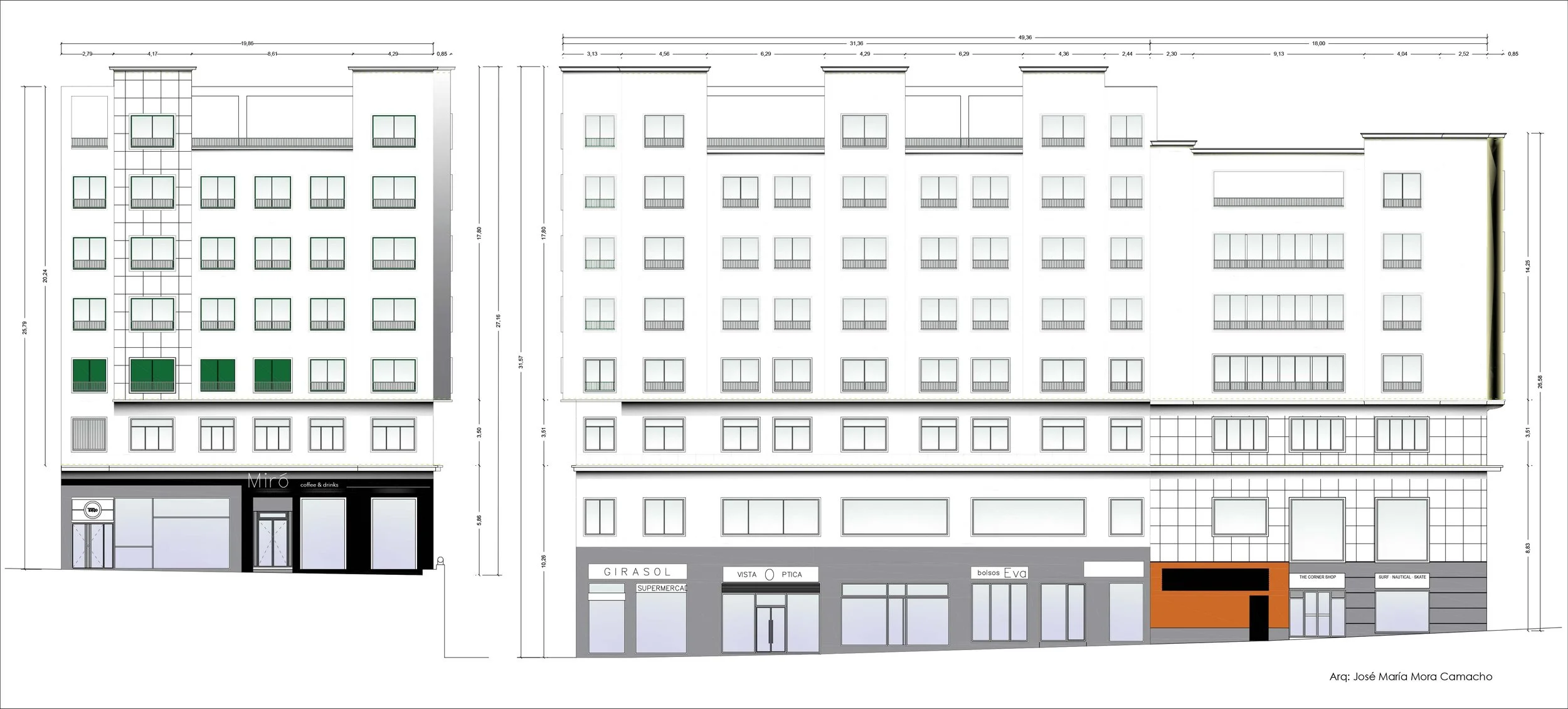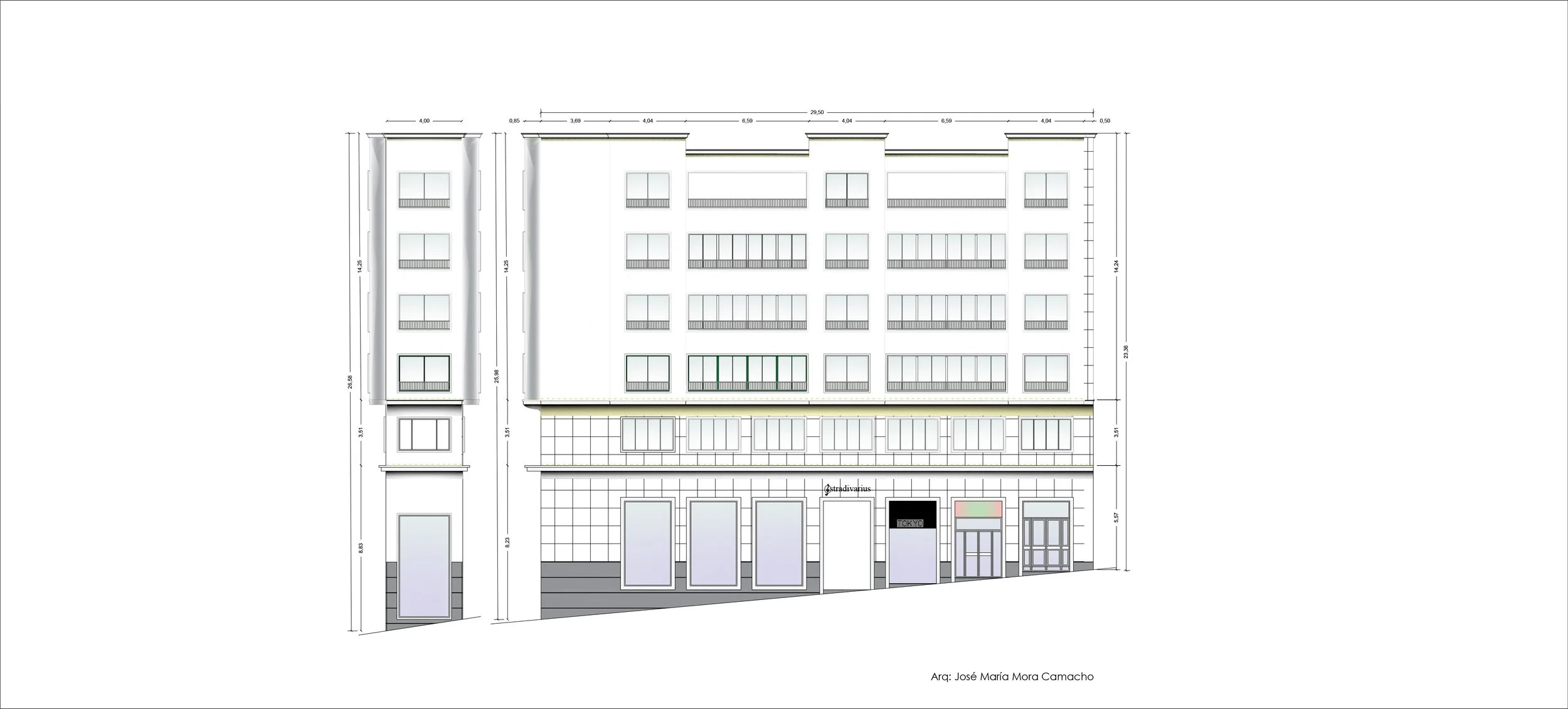 Estructura: Edificio en esquina entre medianeras de seis plantas formando manzana