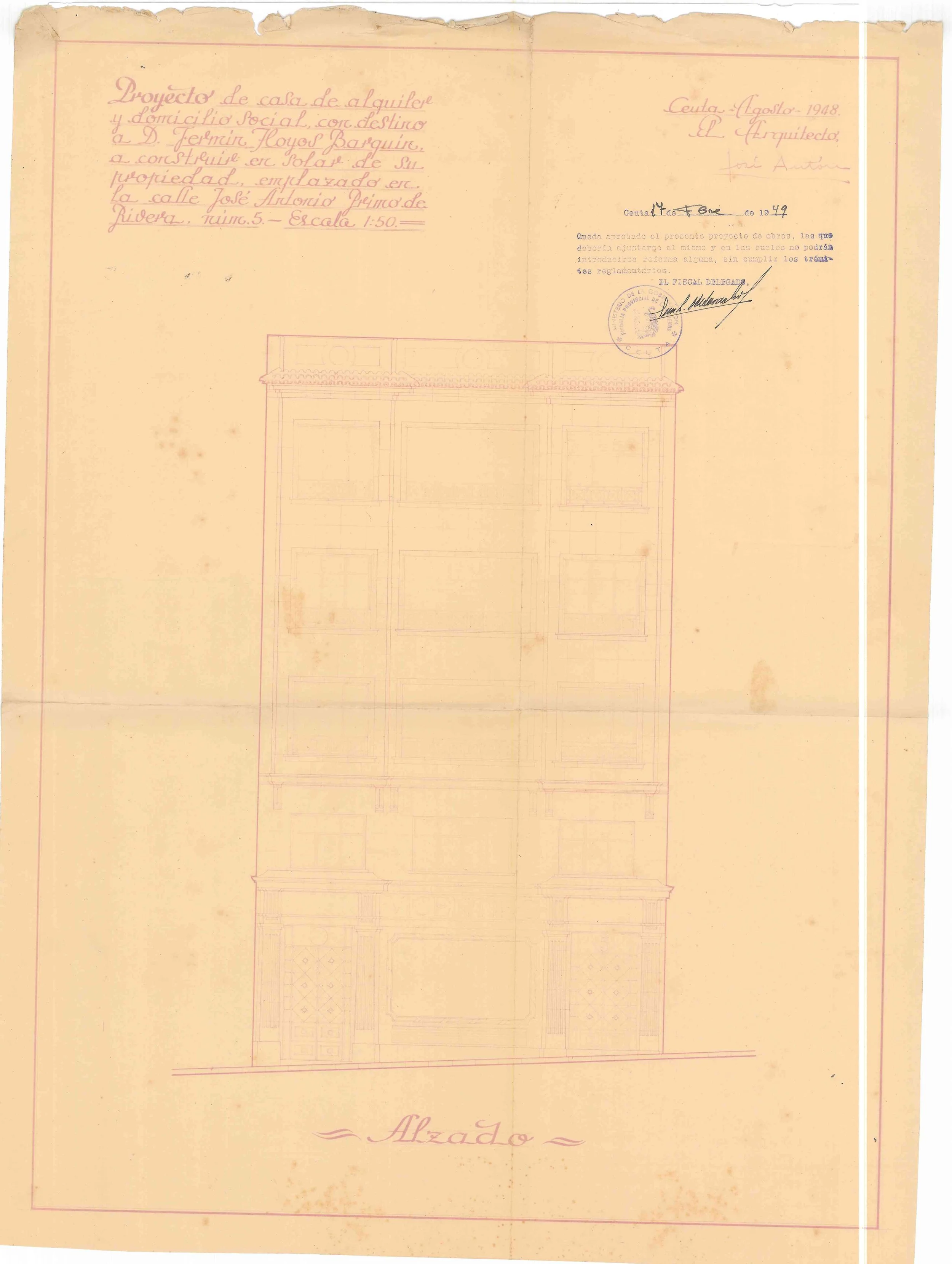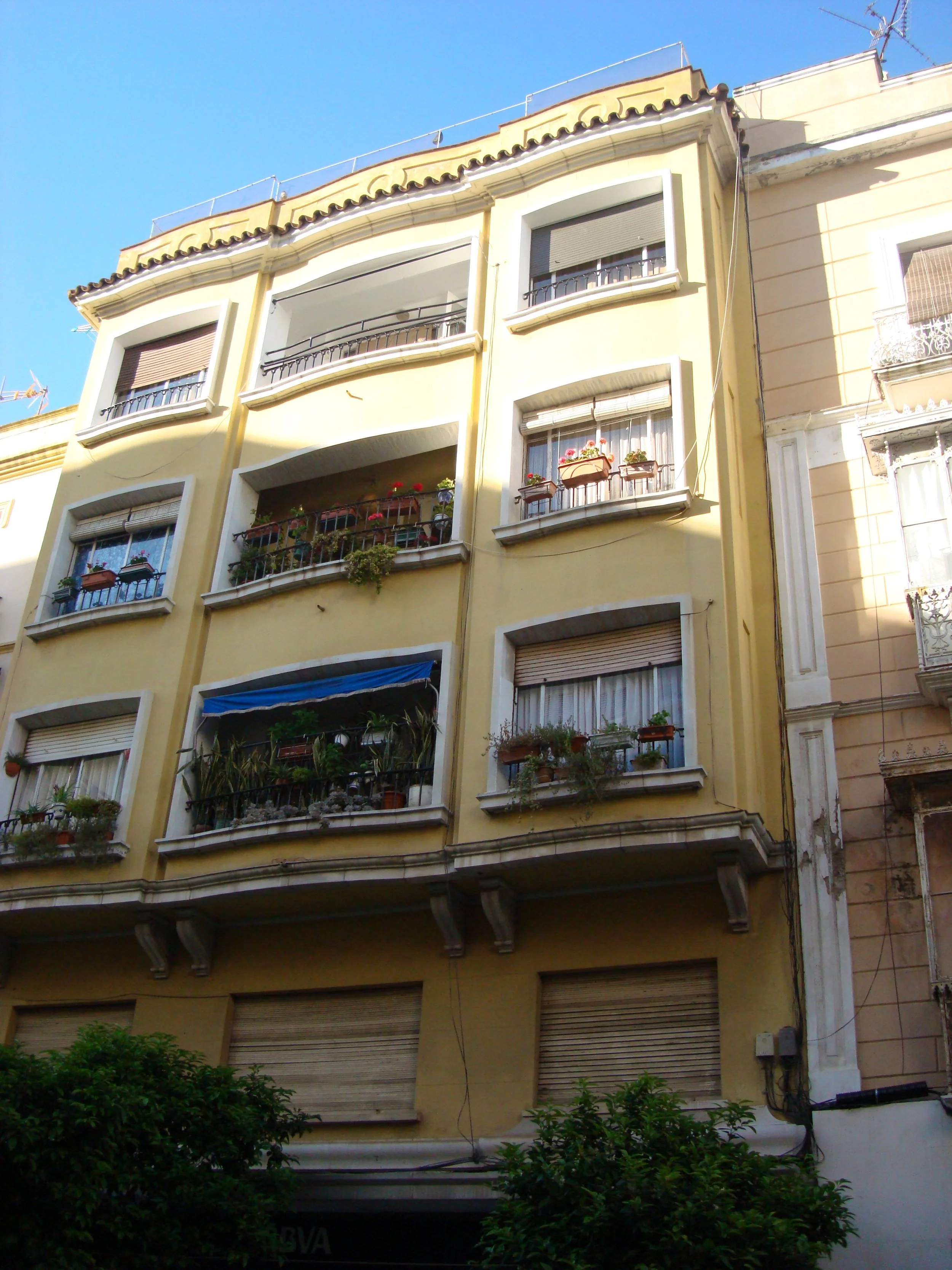 Estructura: Edificio entre medianeras de cinco plantas formando manzana.