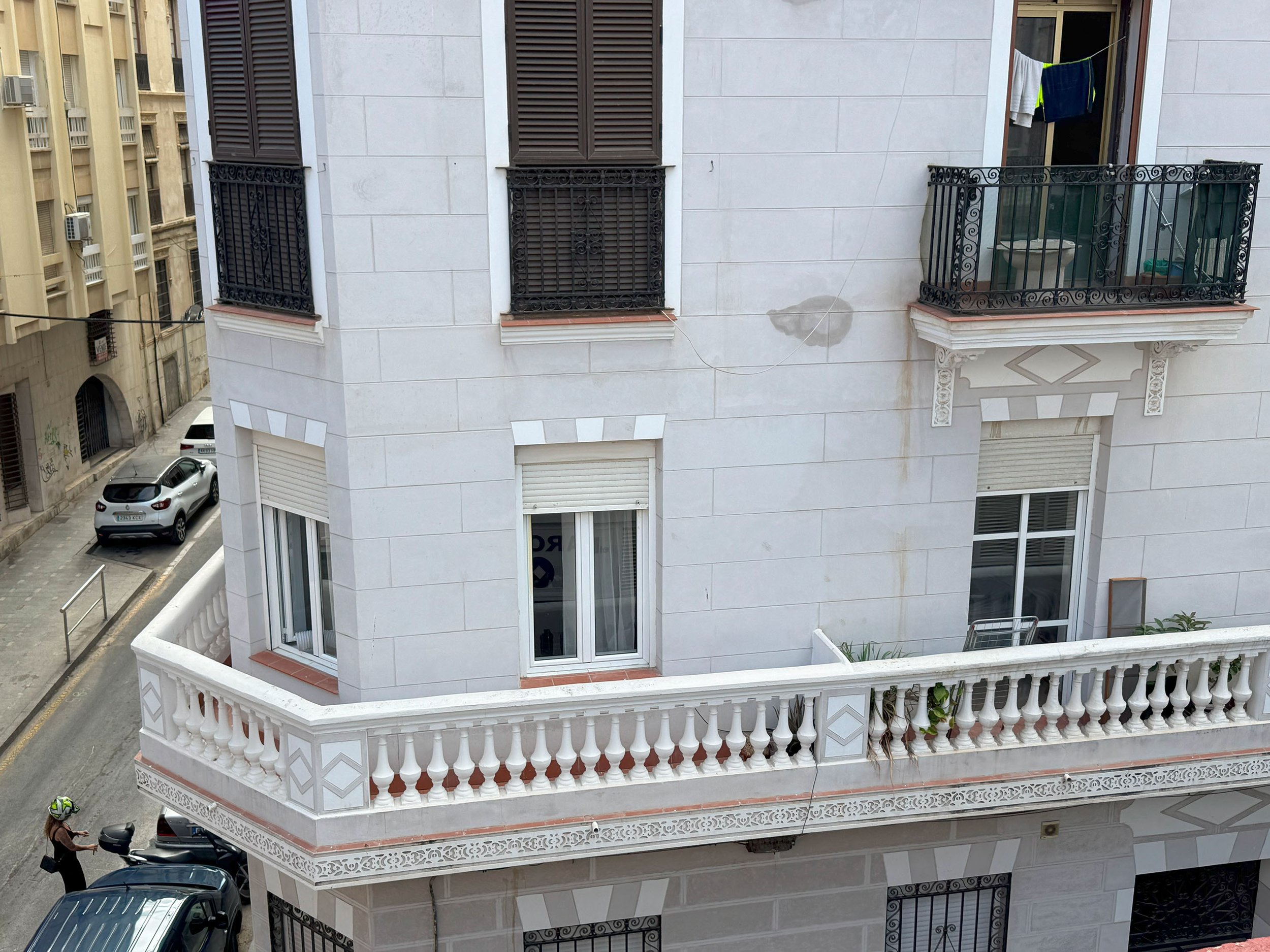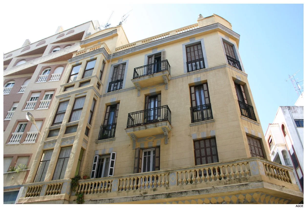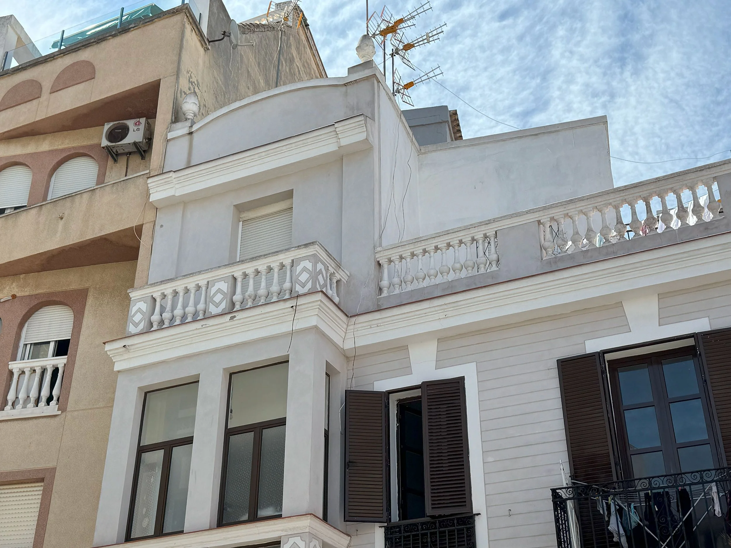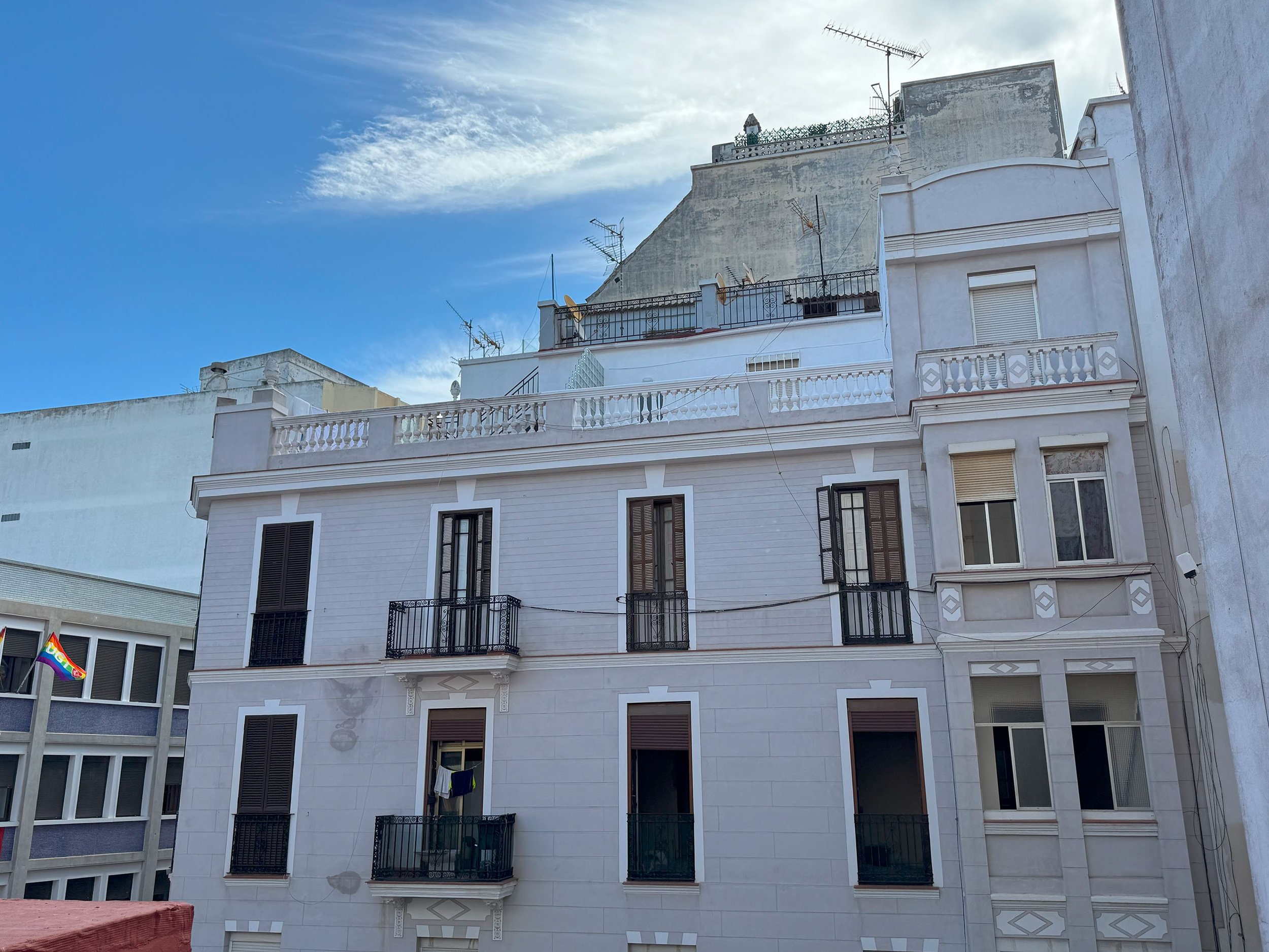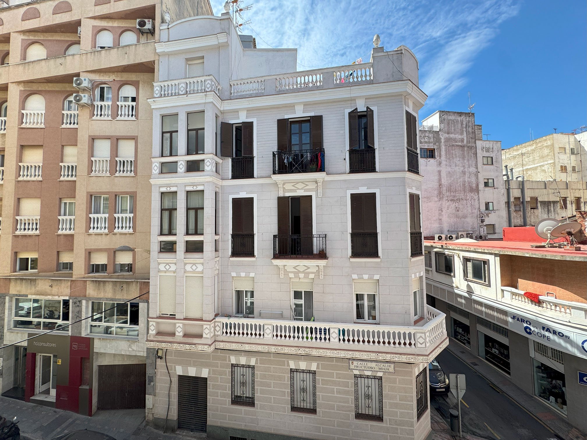 Edificio en esquina entre medianeras de cuatro plantas formando manzana.