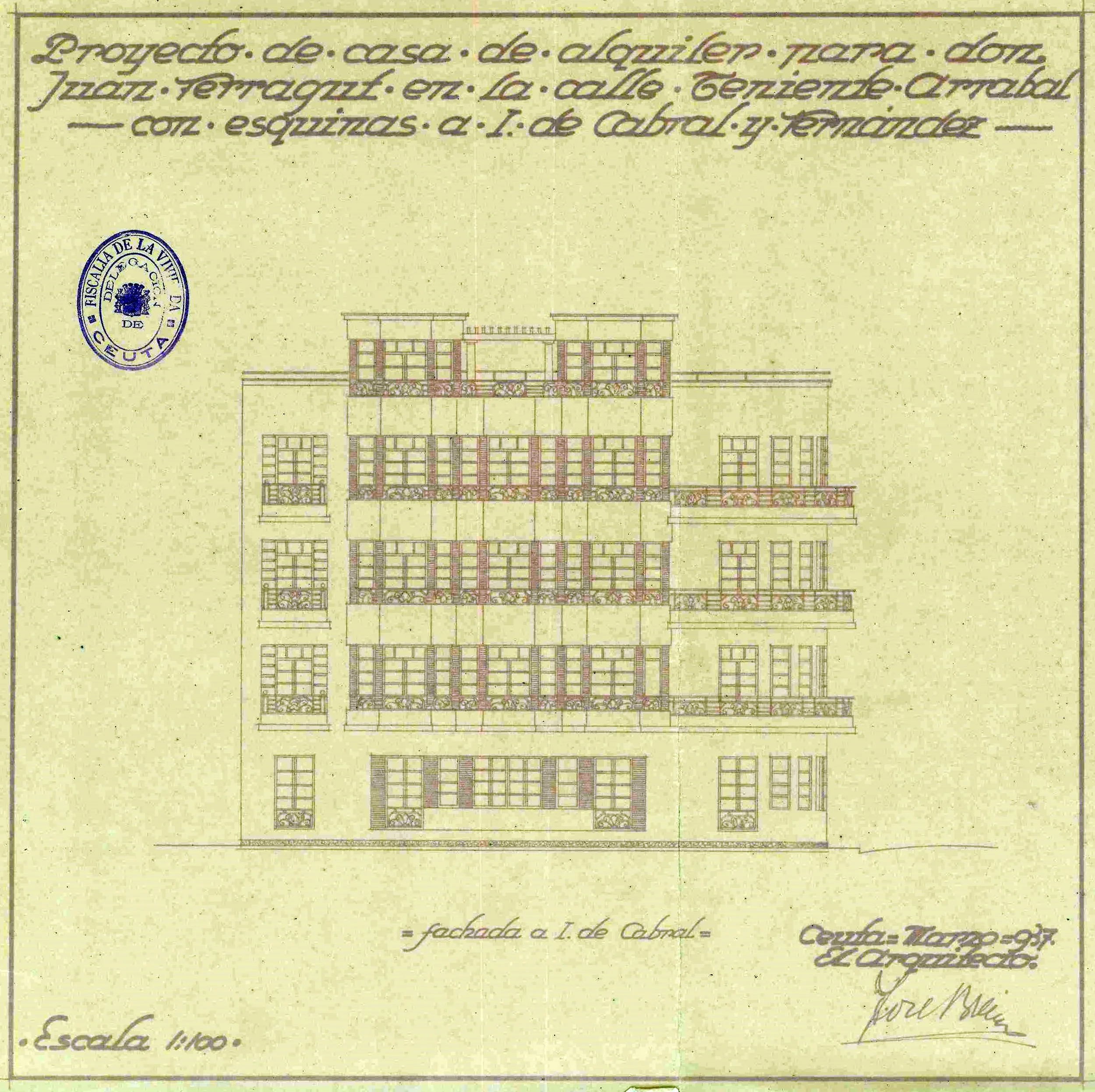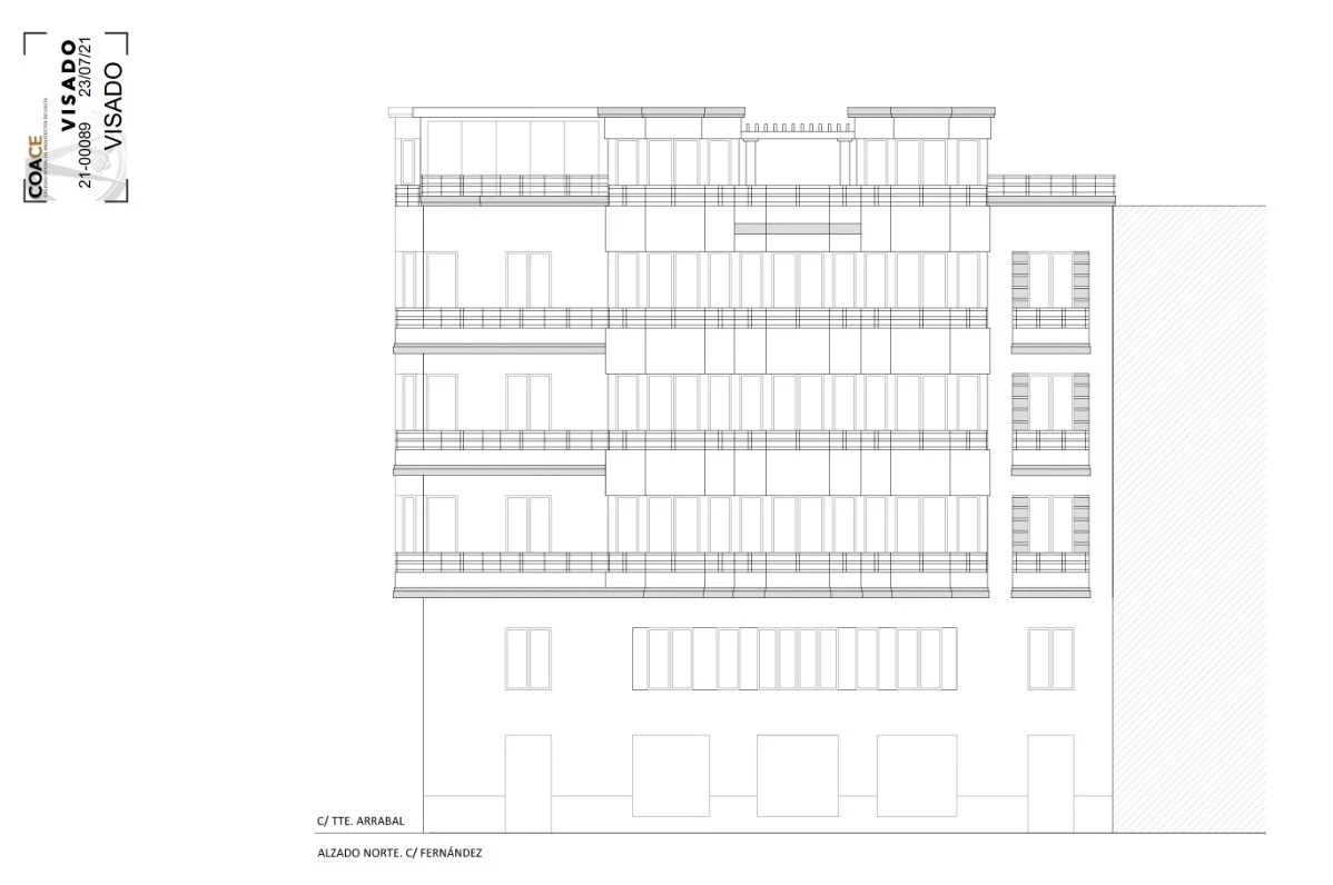 Estructura: Edificio en esquina entre medianeras de cinco plantas formando manzana