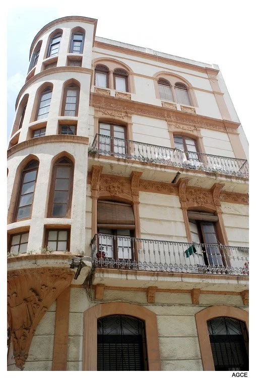 Estructura: Edificio en esquina entre medianeras de cuatro plantas formando manzana