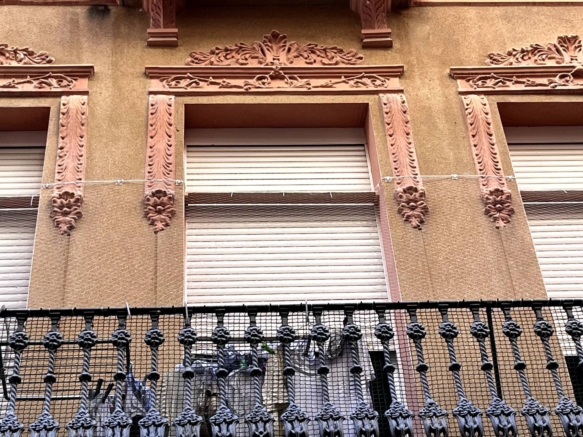Estructura: Edificio entre medianeras de cuatro plantas formando manzana.